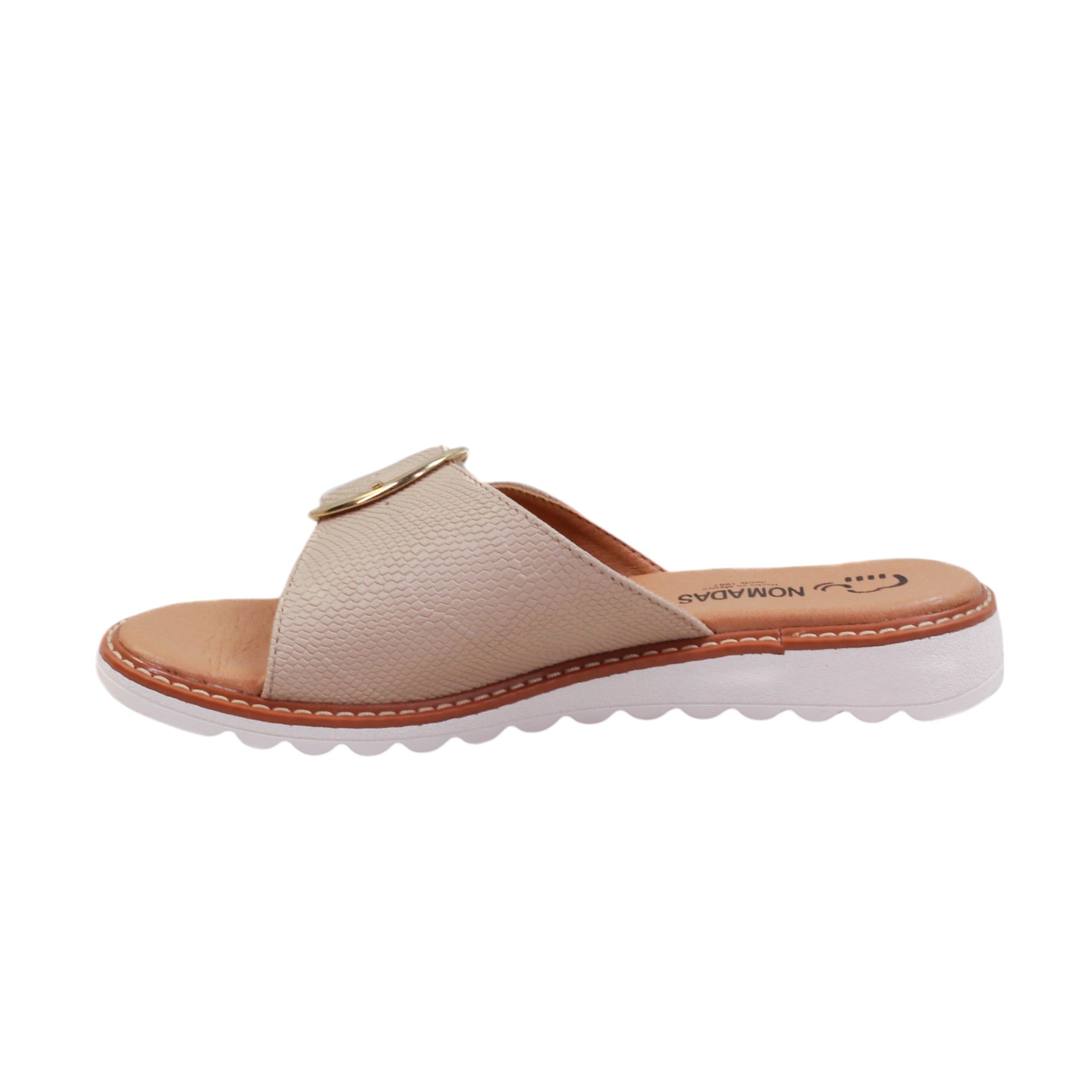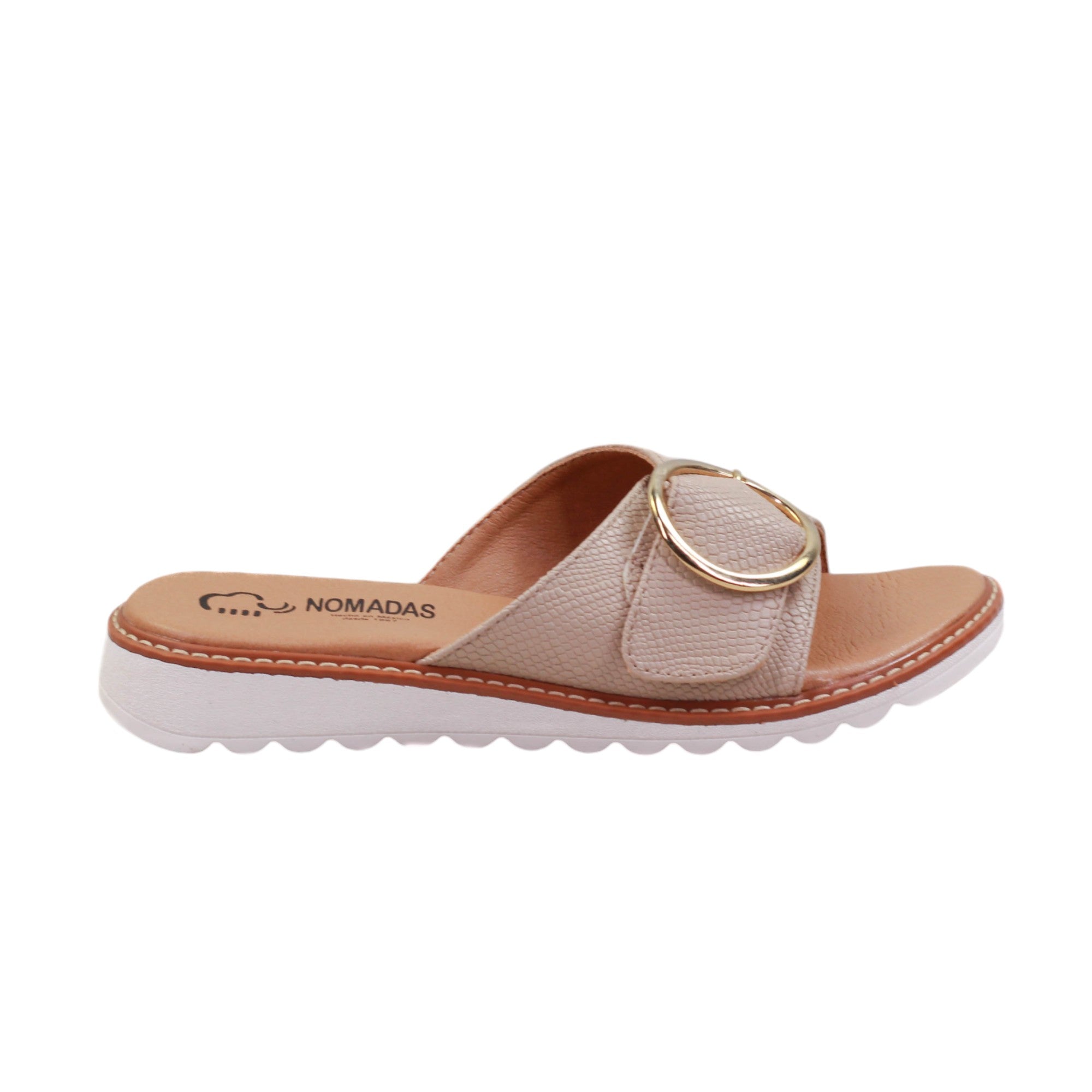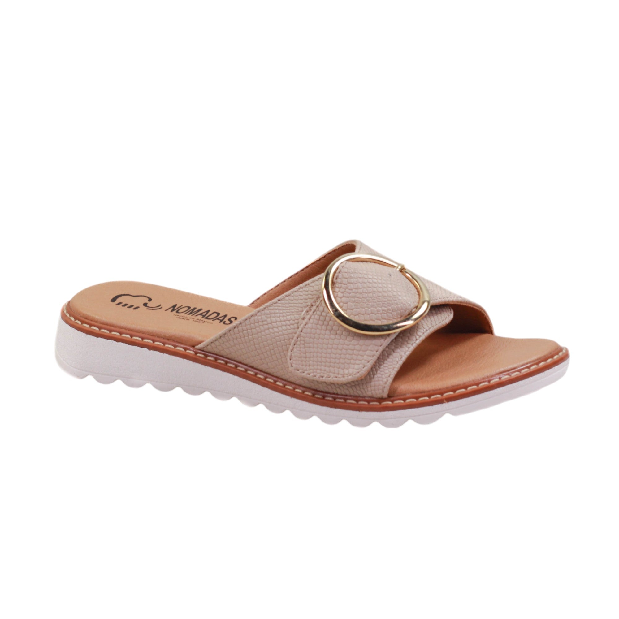 Sandalia para dama marca Nómadas en color miga. Cuenta con plantilla confortable para una comodidad absoluta. Son ligeras y prácticas para el día a día, corte en yute para una atractiva vista.