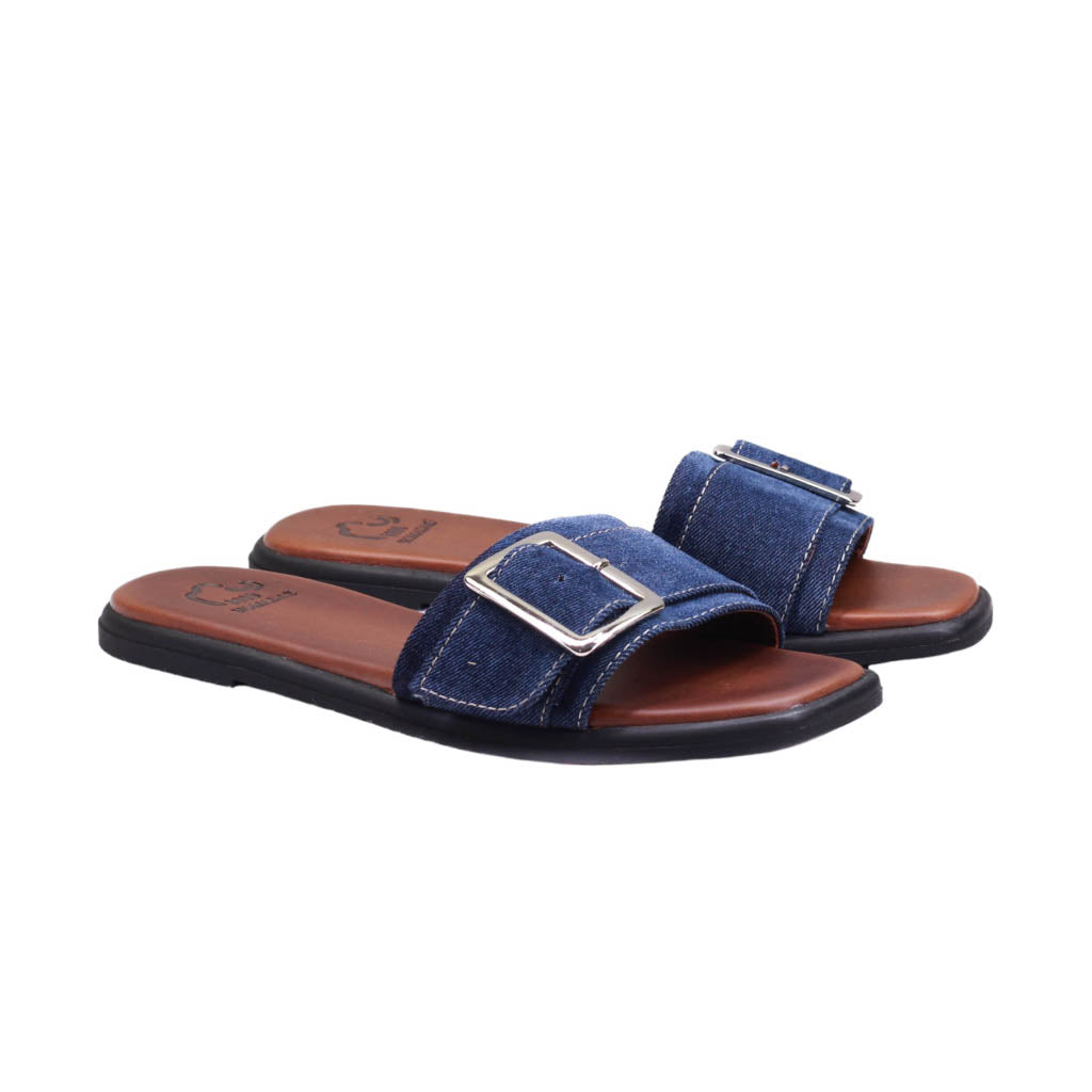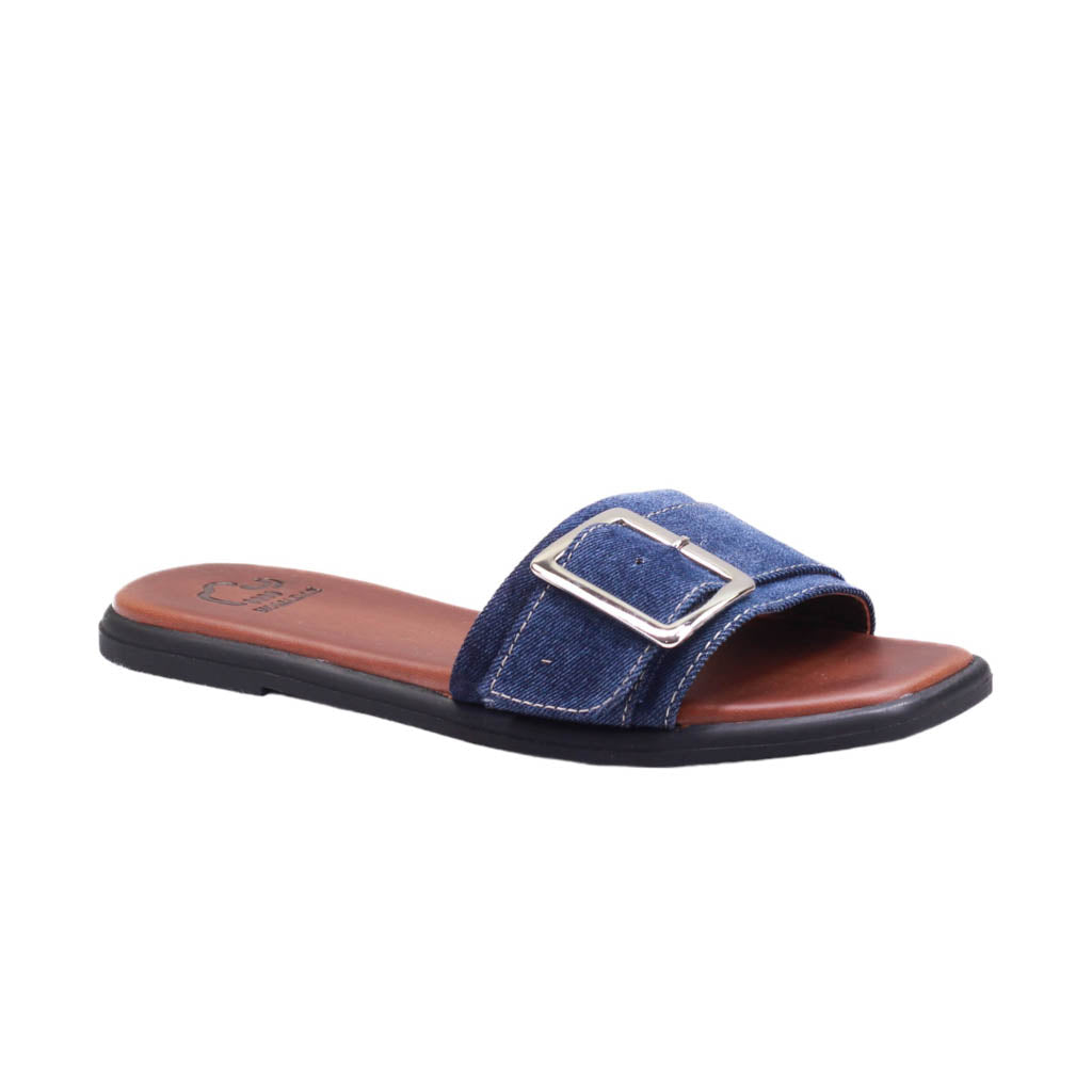 Sandalia para dama marca Nómadas en color Mezclilla. Es un modelo con hebilla grande y plantilla de confort. Este modelo destaca por la suavidad que te dará paso a paso.