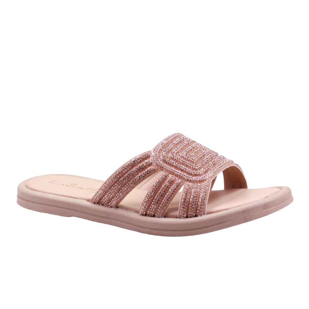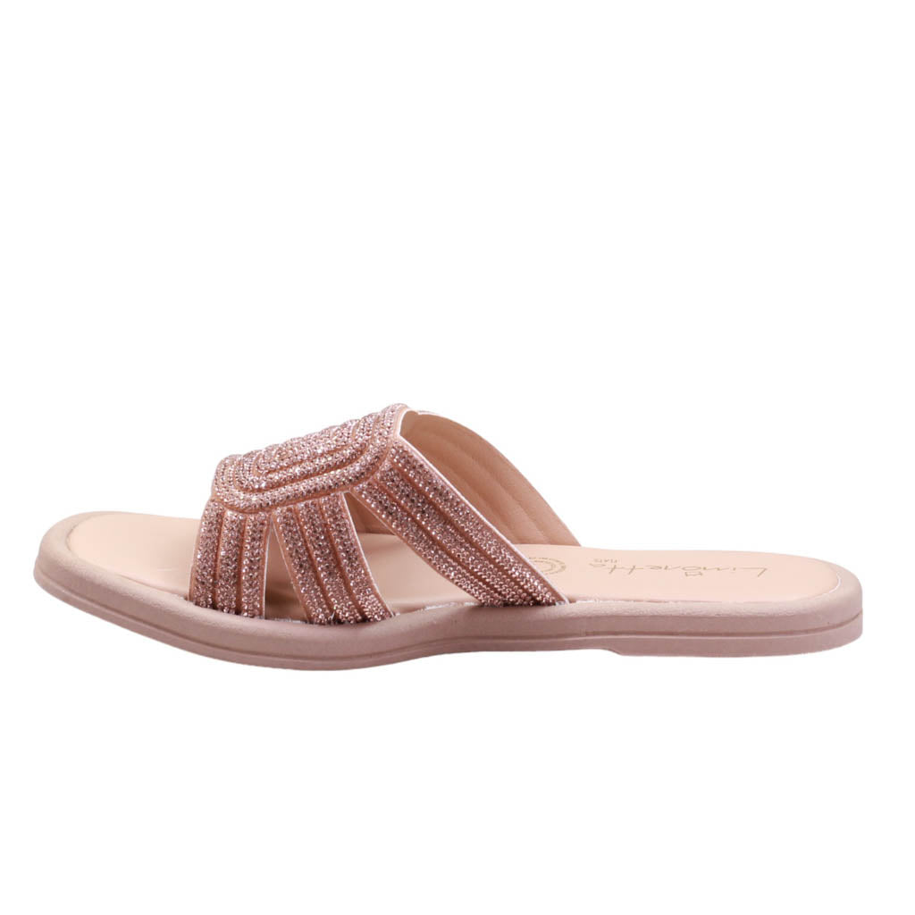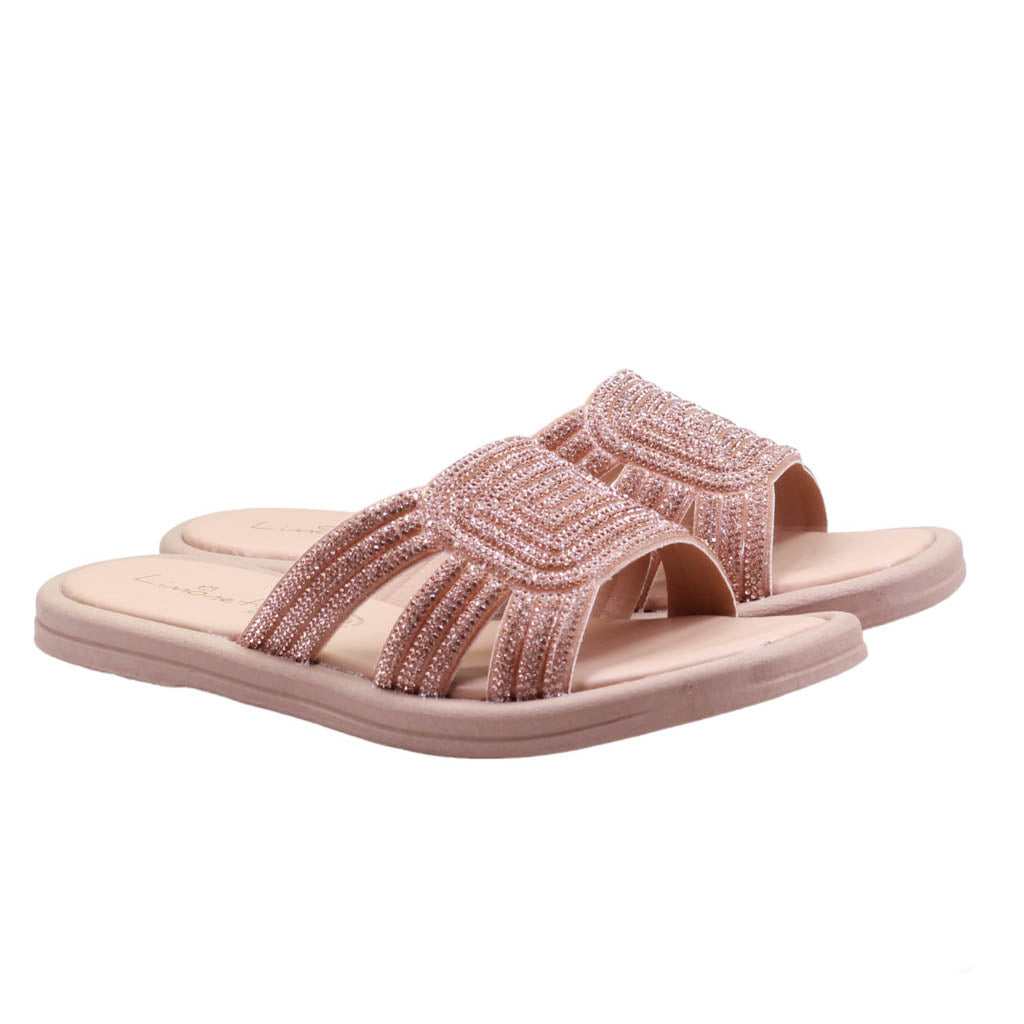 Sandalia para dama de plantilla de confort con corte cubierto en pedrería
