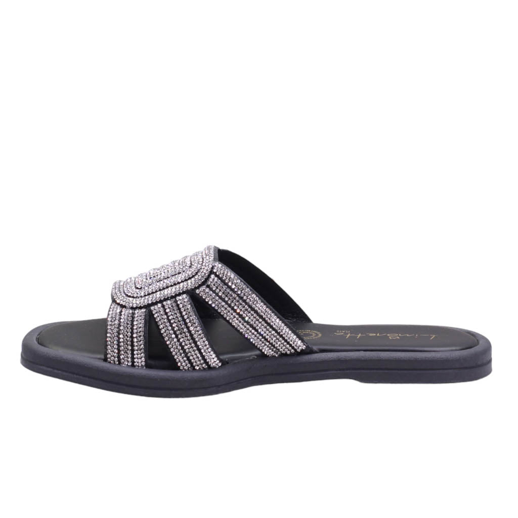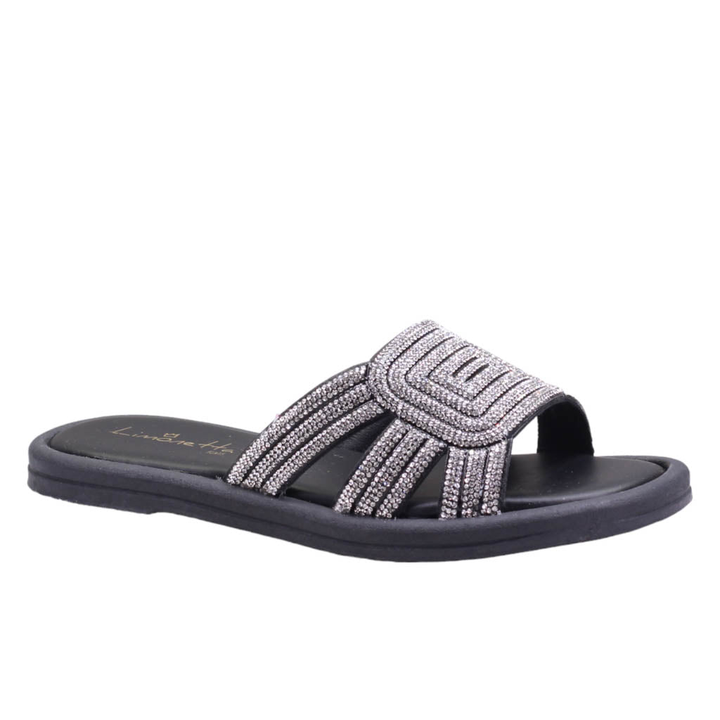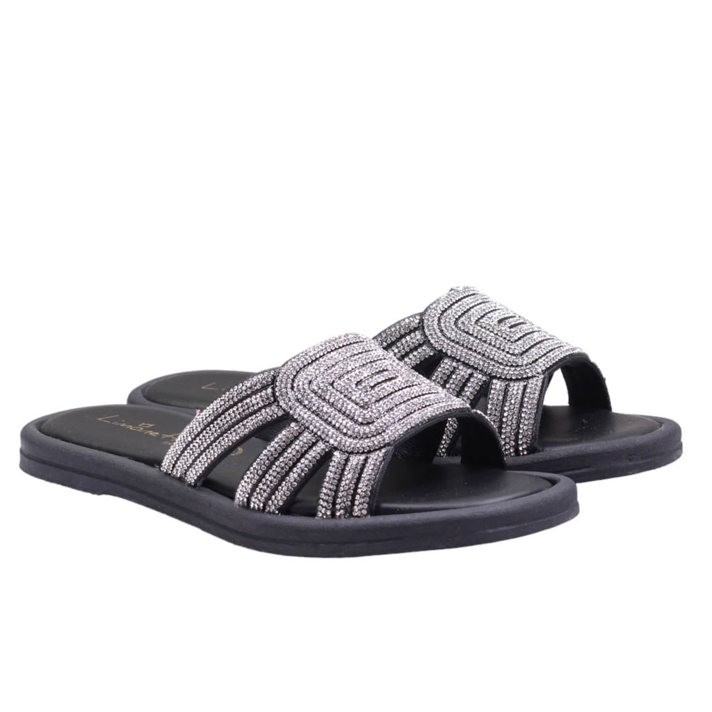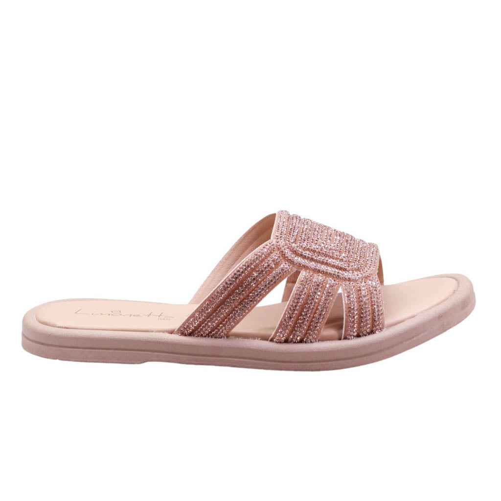 Sandalia para dama de plantilla de confort con corte cubierto en pedrería