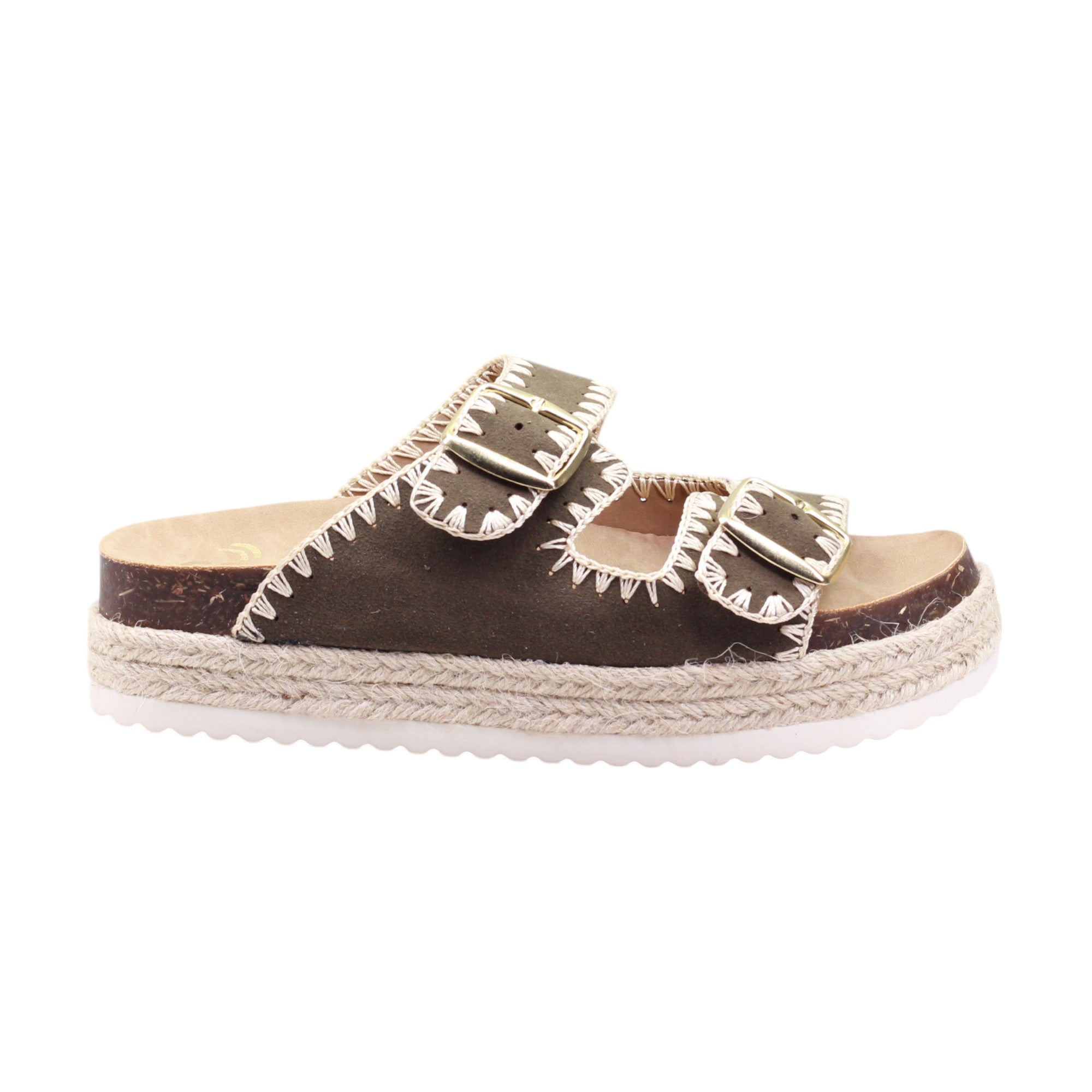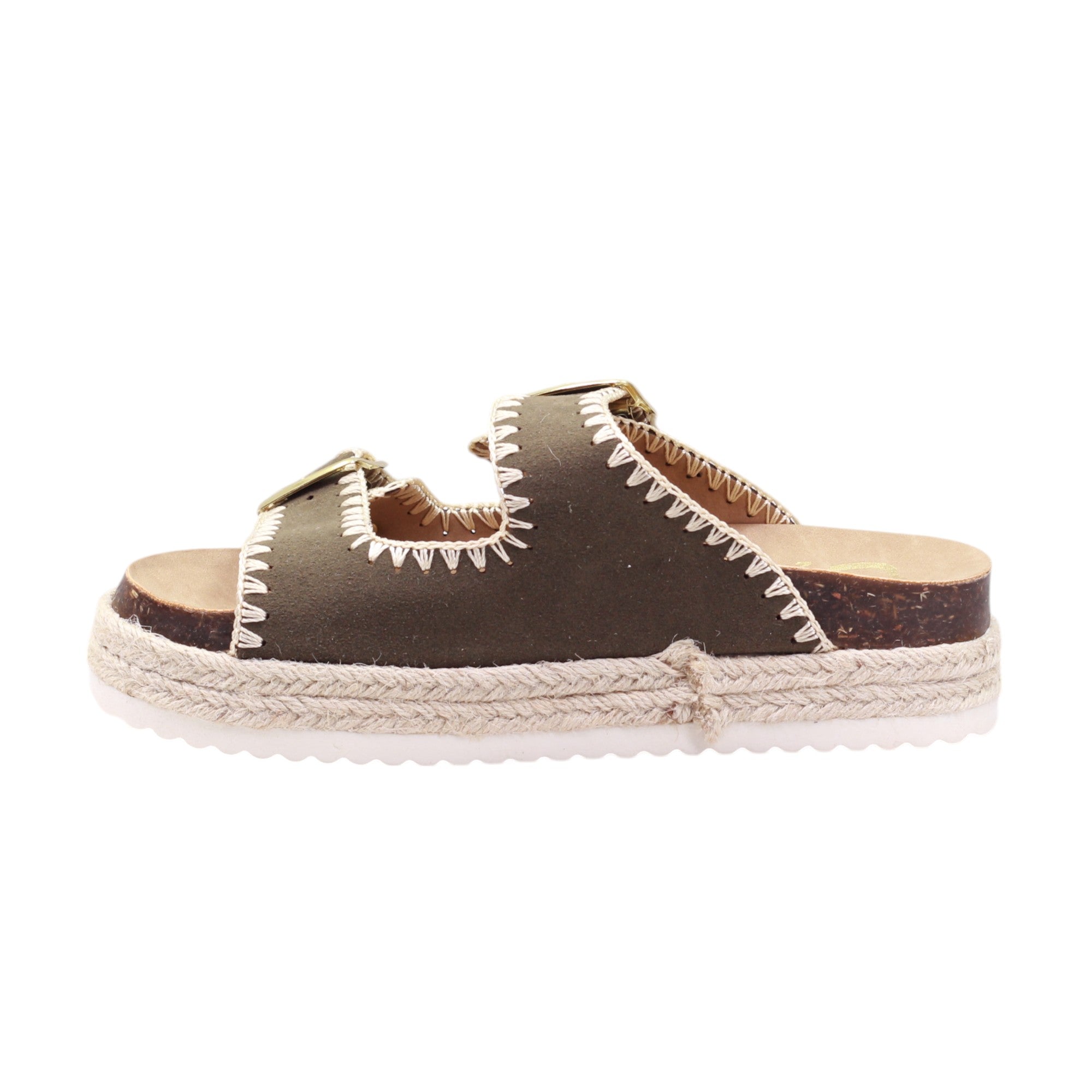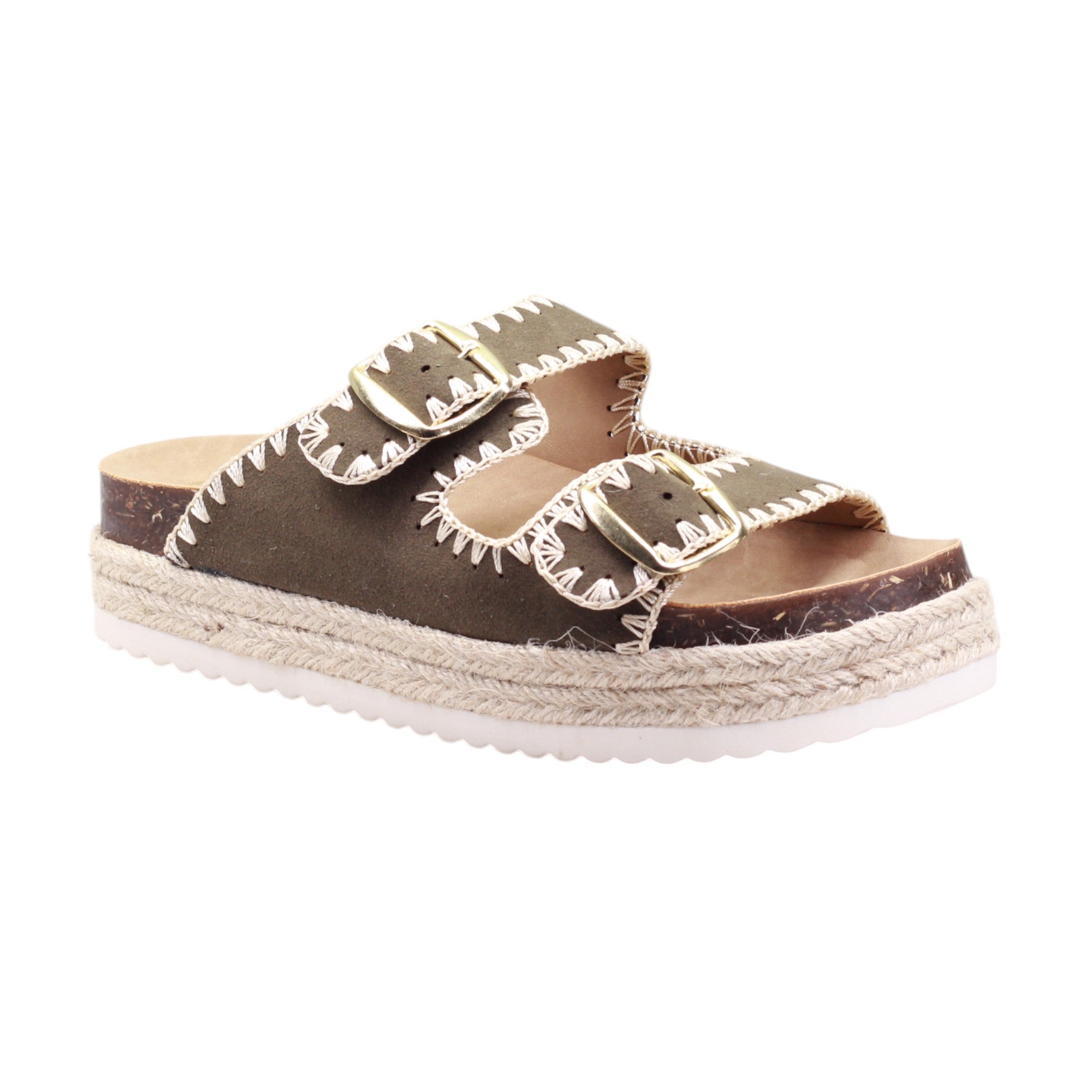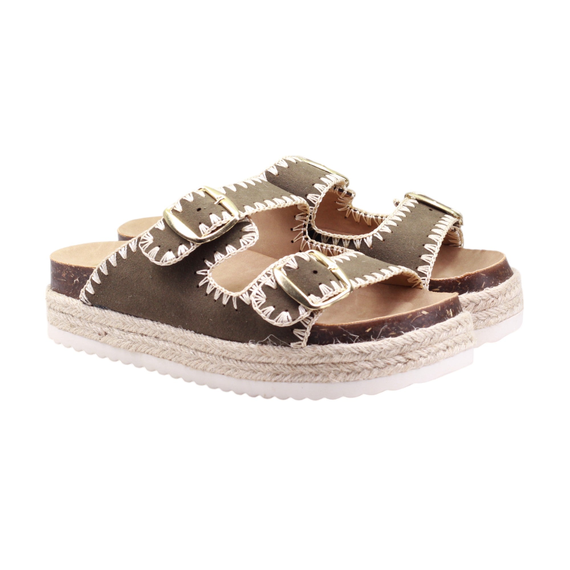 Sandalia para dama marca Nómadas en color verde. Este modelo de plataforma cuenta con una altura de 2.5 cm, lo que brinda mayor comodidad y estilo a tus pasos. Además, su corte de tiras ajustables con hebillas adornadas con costuras, lo hace perfecto para lucir increíble en cualquier ocasión. ¡Hazte notar con este modelo único!