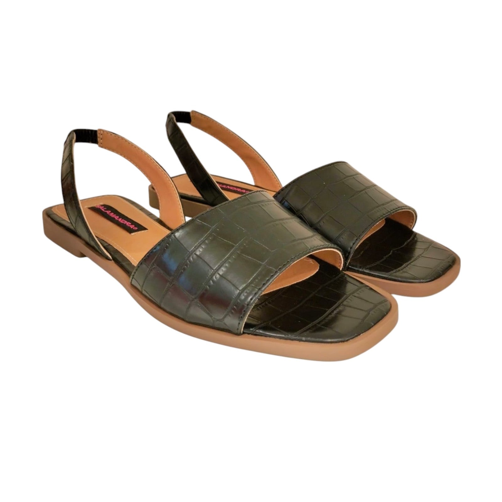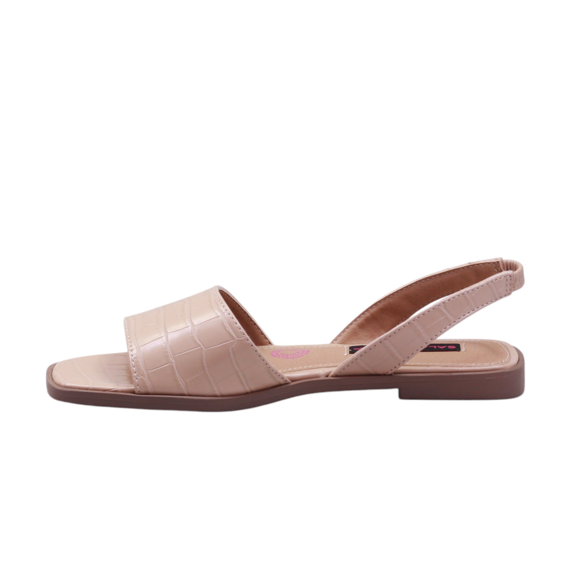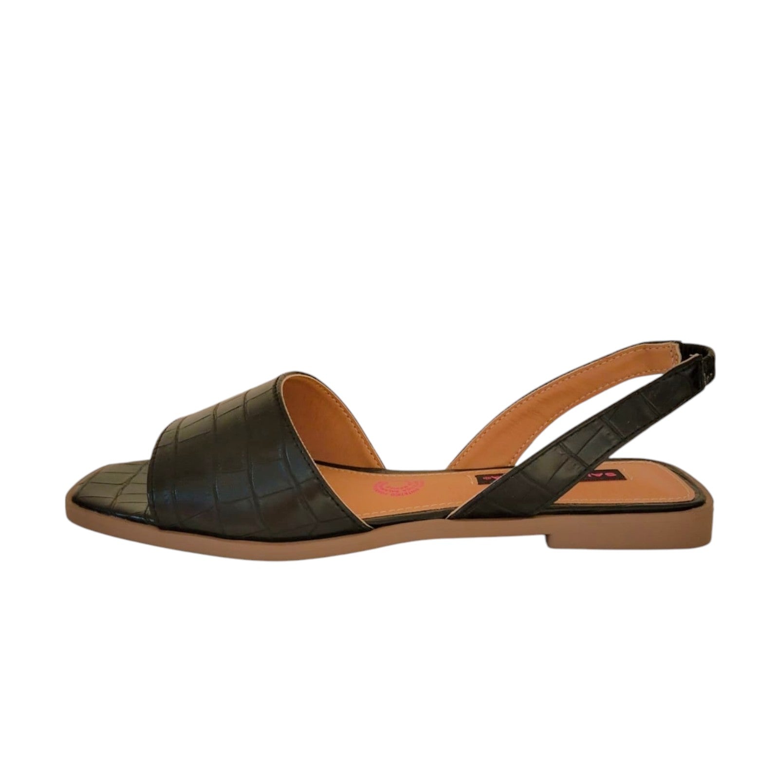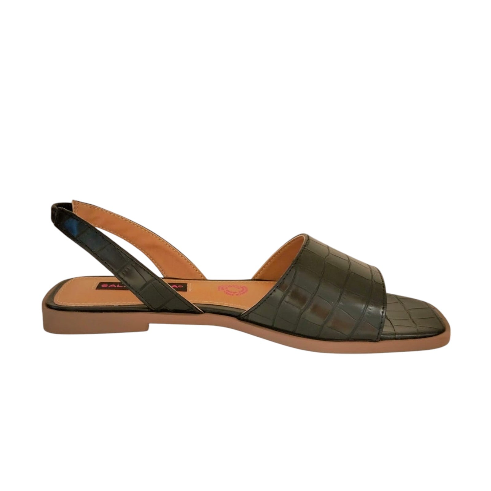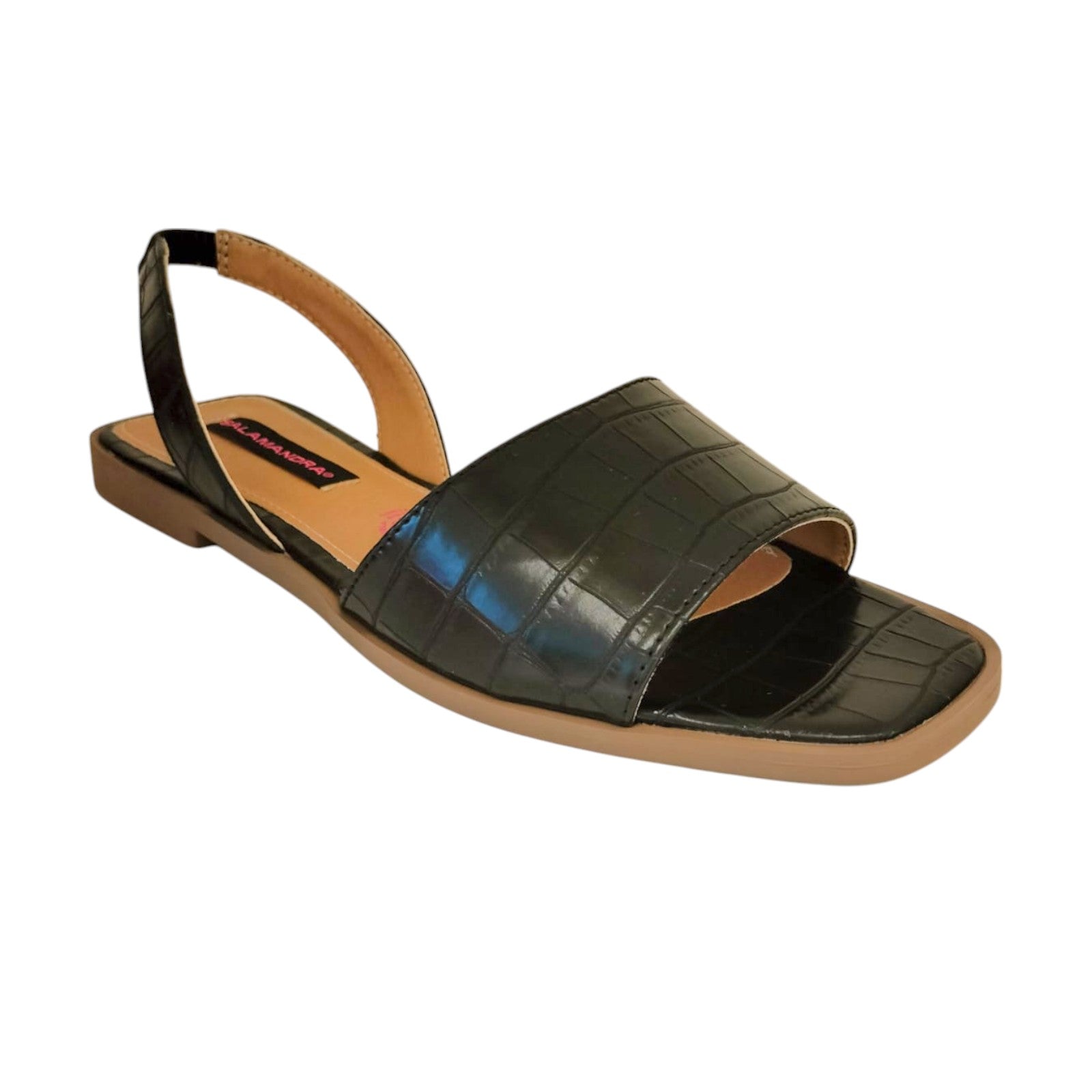 Sandalia para dama marca Salamandra en colores maquillaje y negro. Esta bella sandalia, cuenta con terminado en crocco, es de piso y metedera lo cual brinda una comodidad excepcional, fácil de combinar con casi cualquier tipo de prenda.