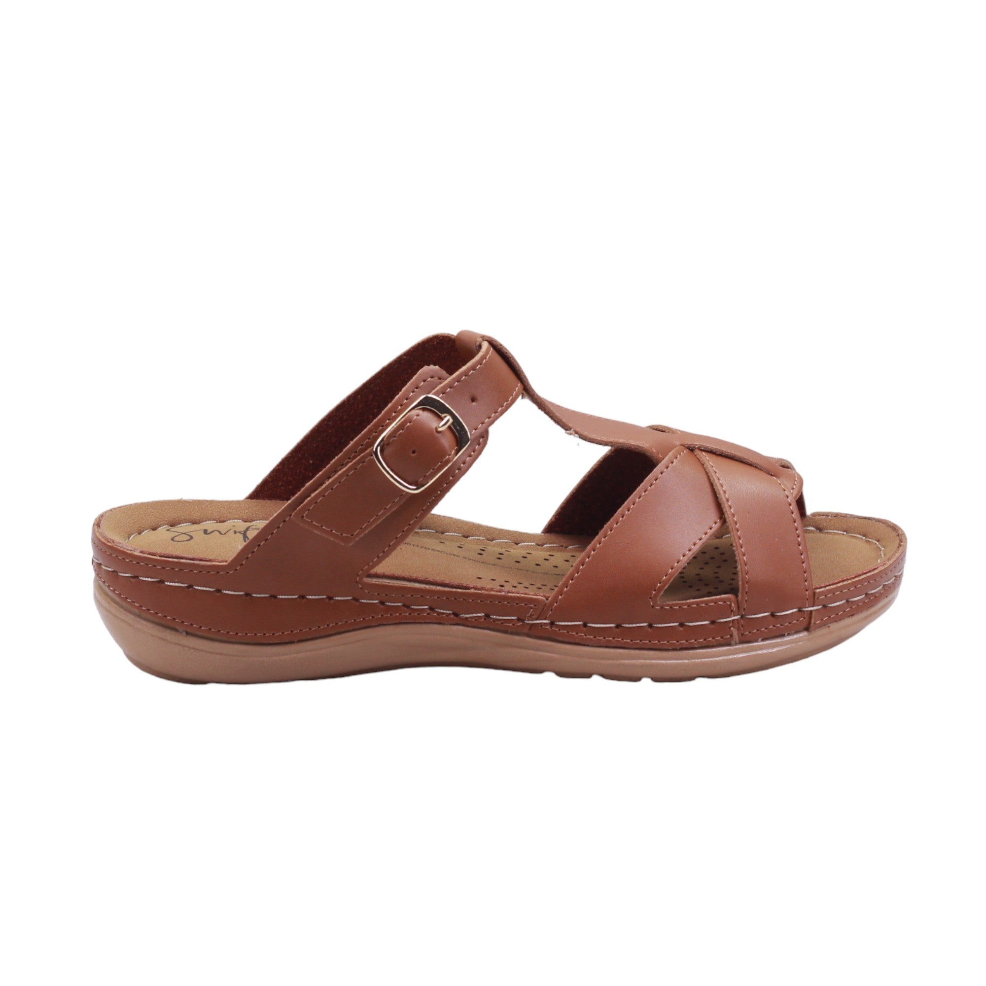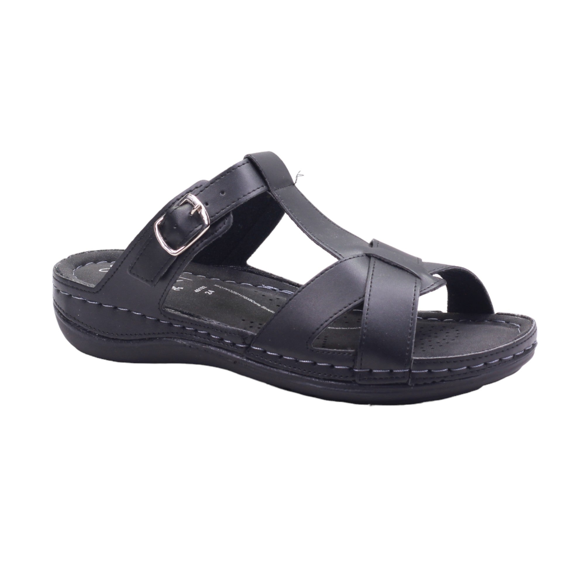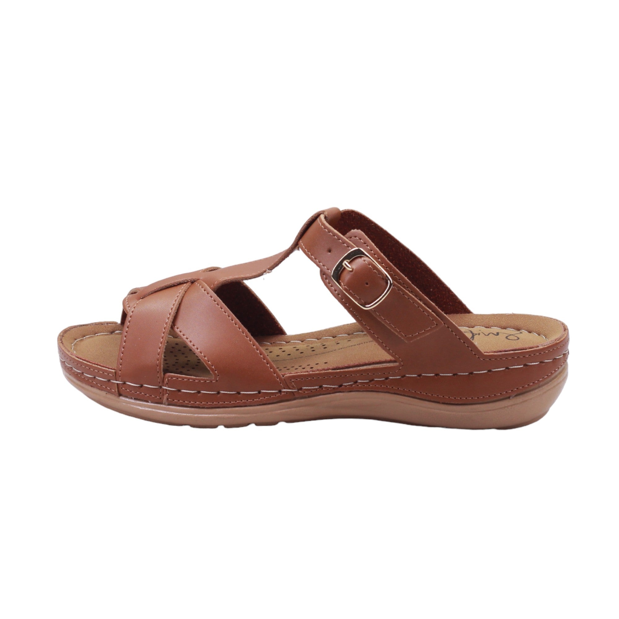 Sandalia para dama de tira ajustable con hebilla y plantilla de confort