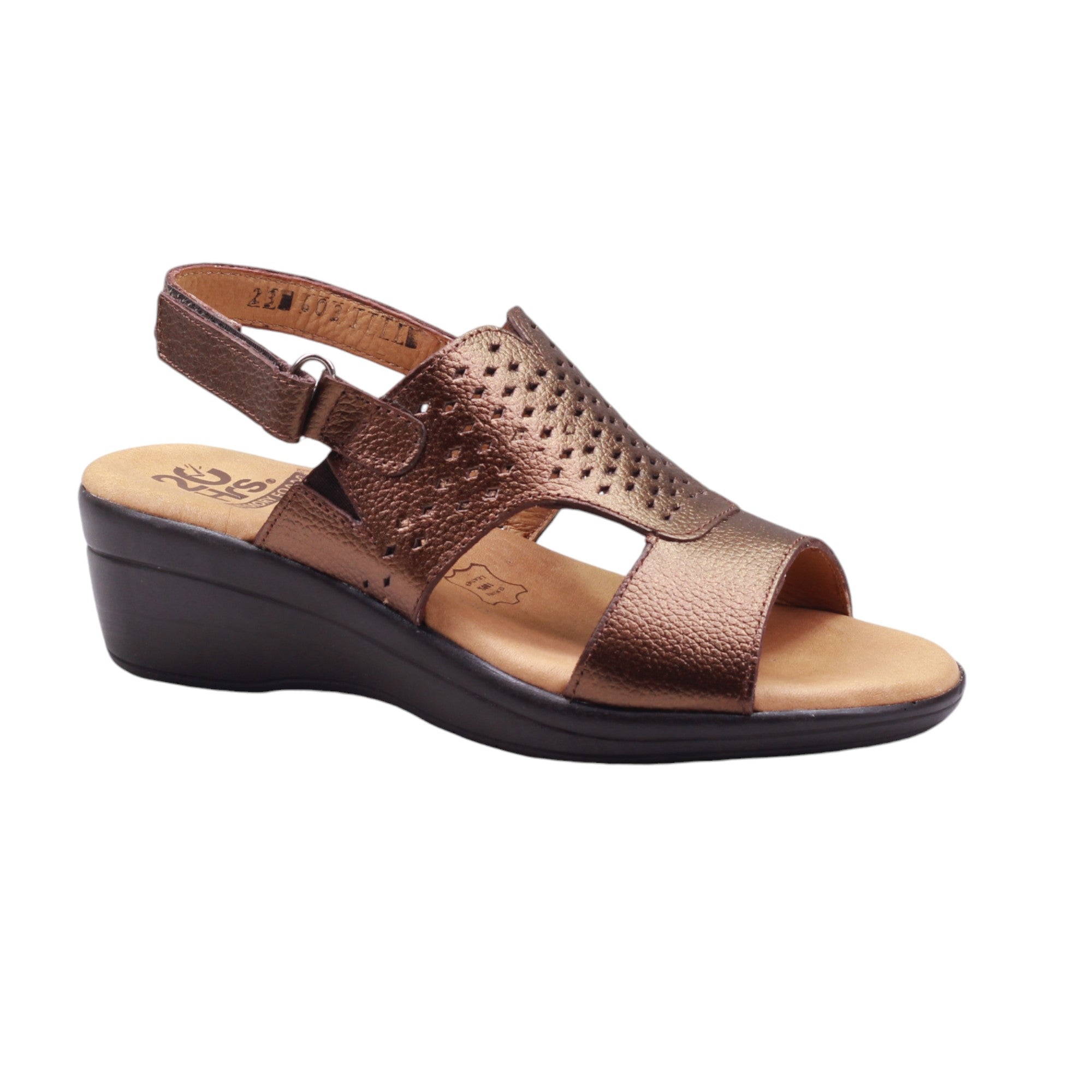 Sandalia para dama de tira trasera ajustable con velcro y corte con perforaciones
