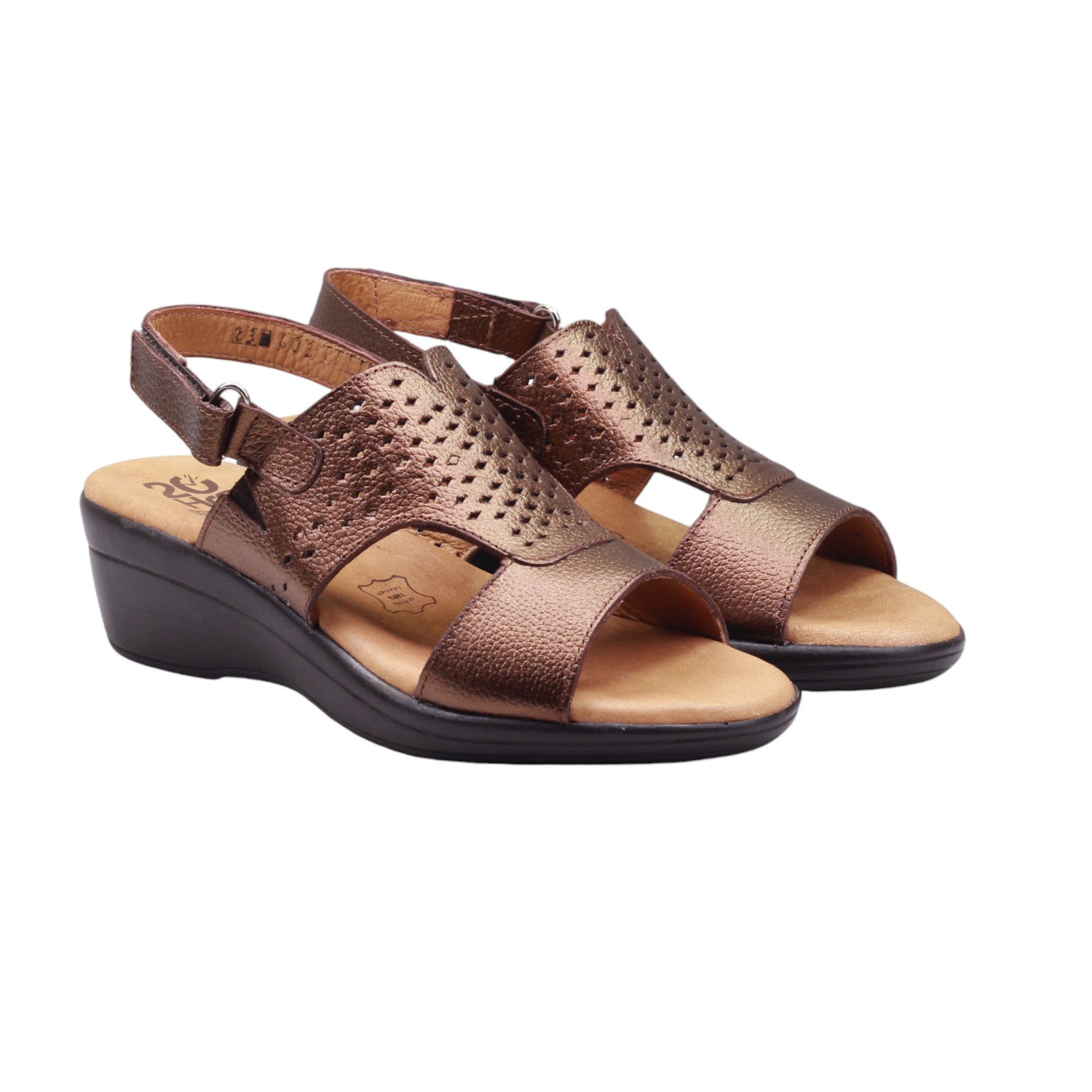 Sandalia para dama marca 20 Horas en colores came, azul y bronce. Obtén comodidad y estilo con nuestro modelo de plantilla acojinada. La tira trasera ajustable con velcro te permite un ajuste perfecto. Con una plataforma de 5.00 cm, obtén un poco de altura sin sacrificar la comodidad. Además, su corte con perforaciones añade un toque de estilo y permite una mejor ventilación para tus pies.