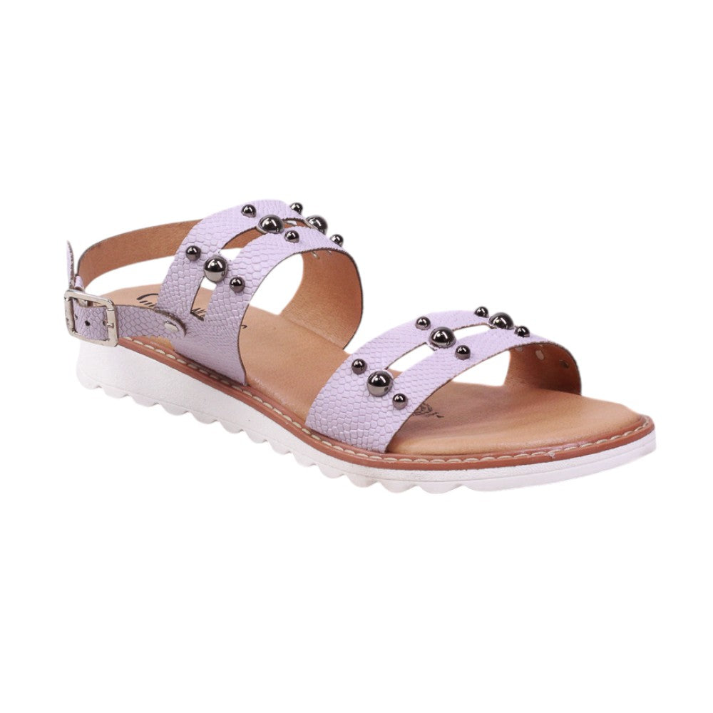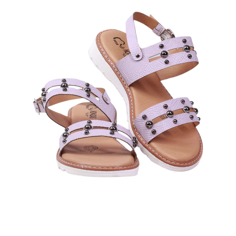 Sandalia para dama marca Nomadas en colores Lila. Es un modelo con tiras adornadas con perlas, cuenta también con suela ergonómica de super confort. Este modelo destaca por la suavidad que te dará paso a paso.