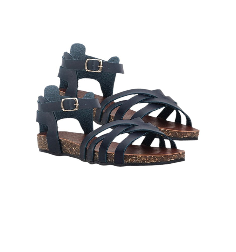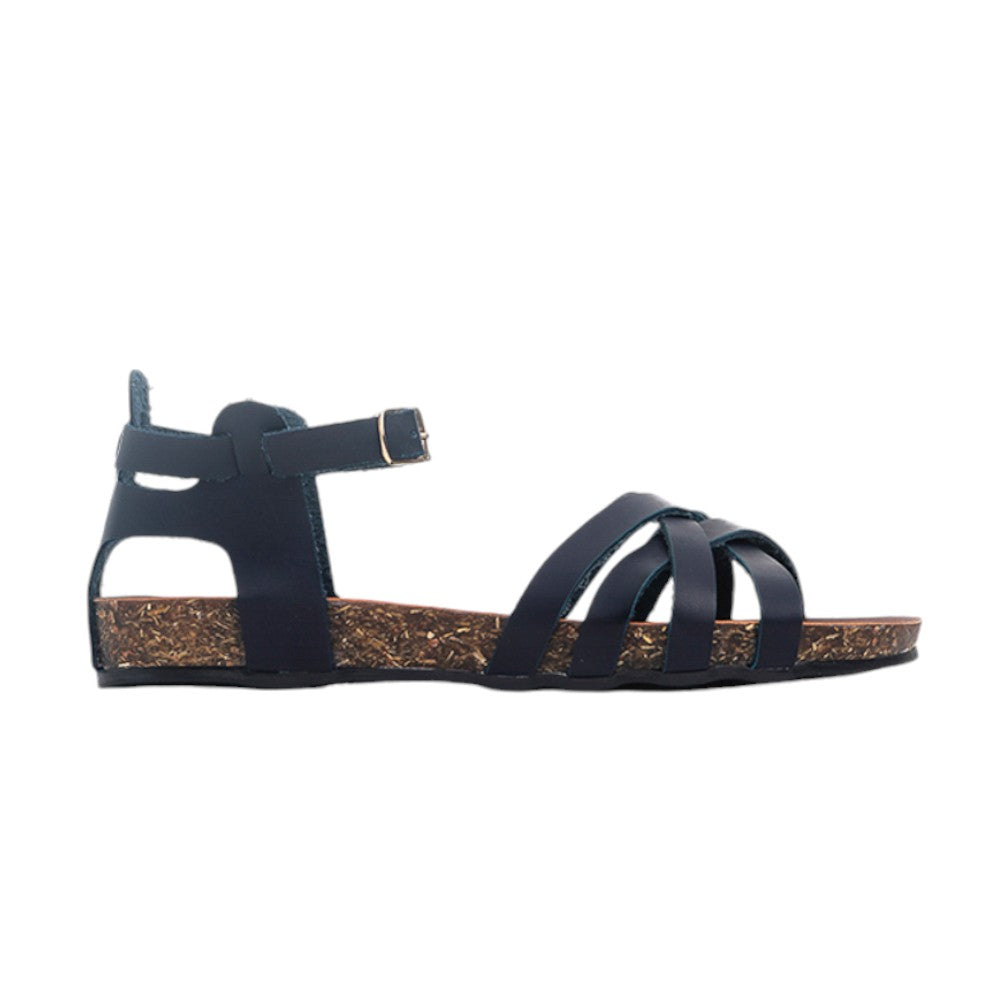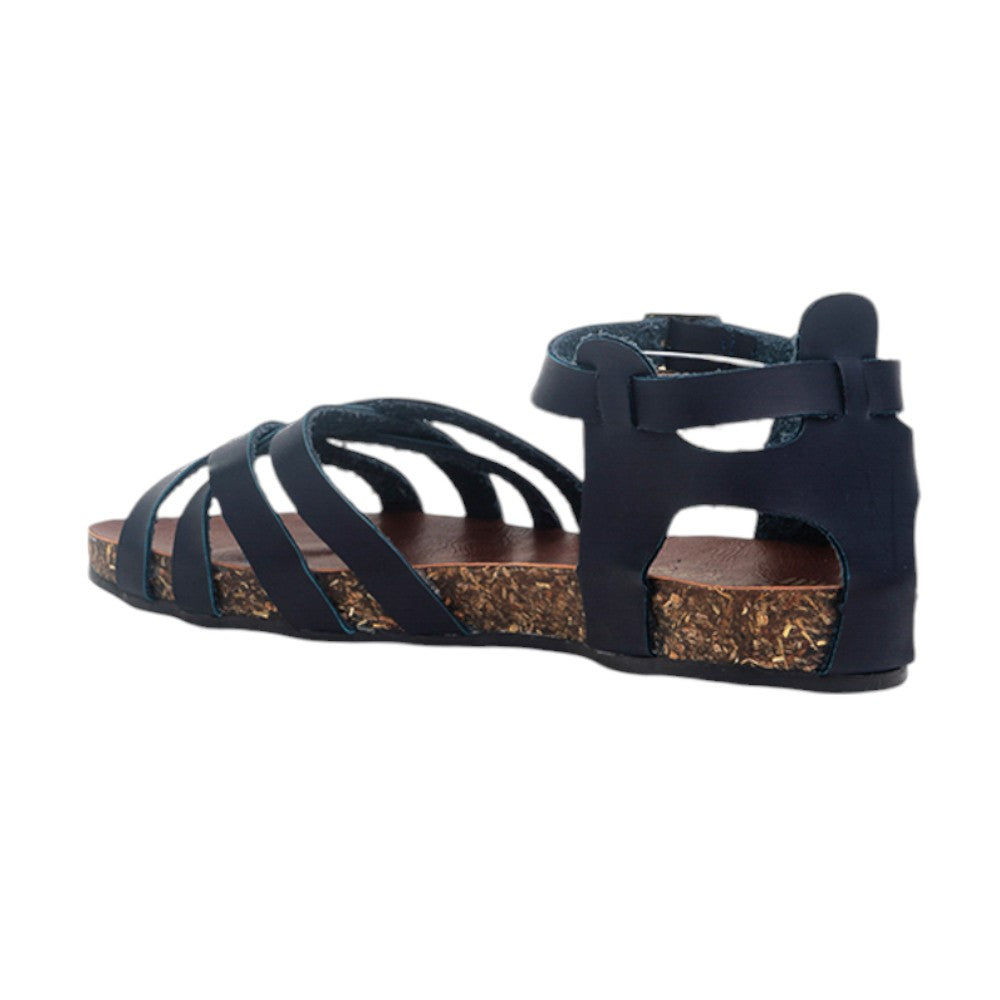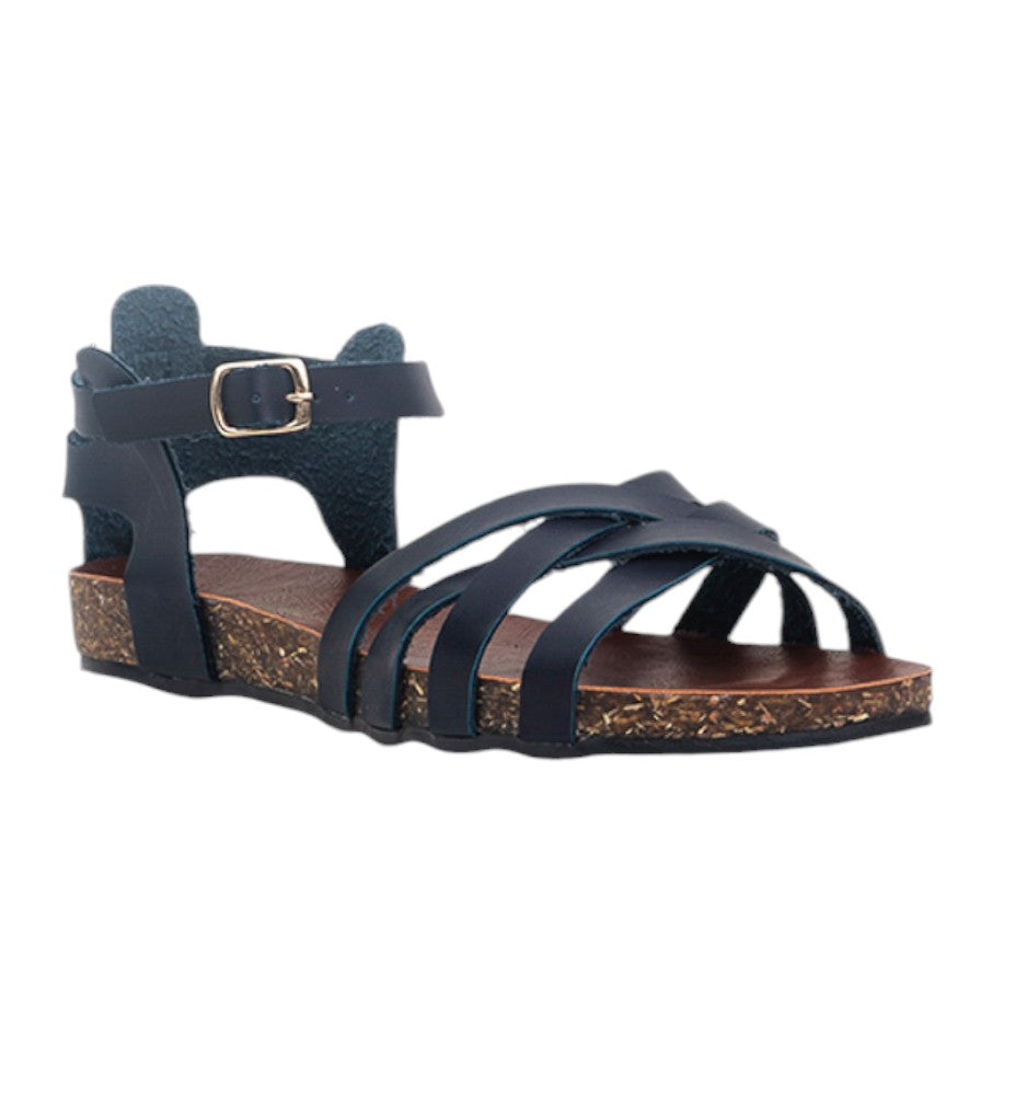 Sandalia para dama marca Nómadas en colores azul y Ferrero. Es un modelo con tiras delgadas y suela ergonómica de tipo corcho. Este modelo destaca por la suavidad que te dará paso a paso.