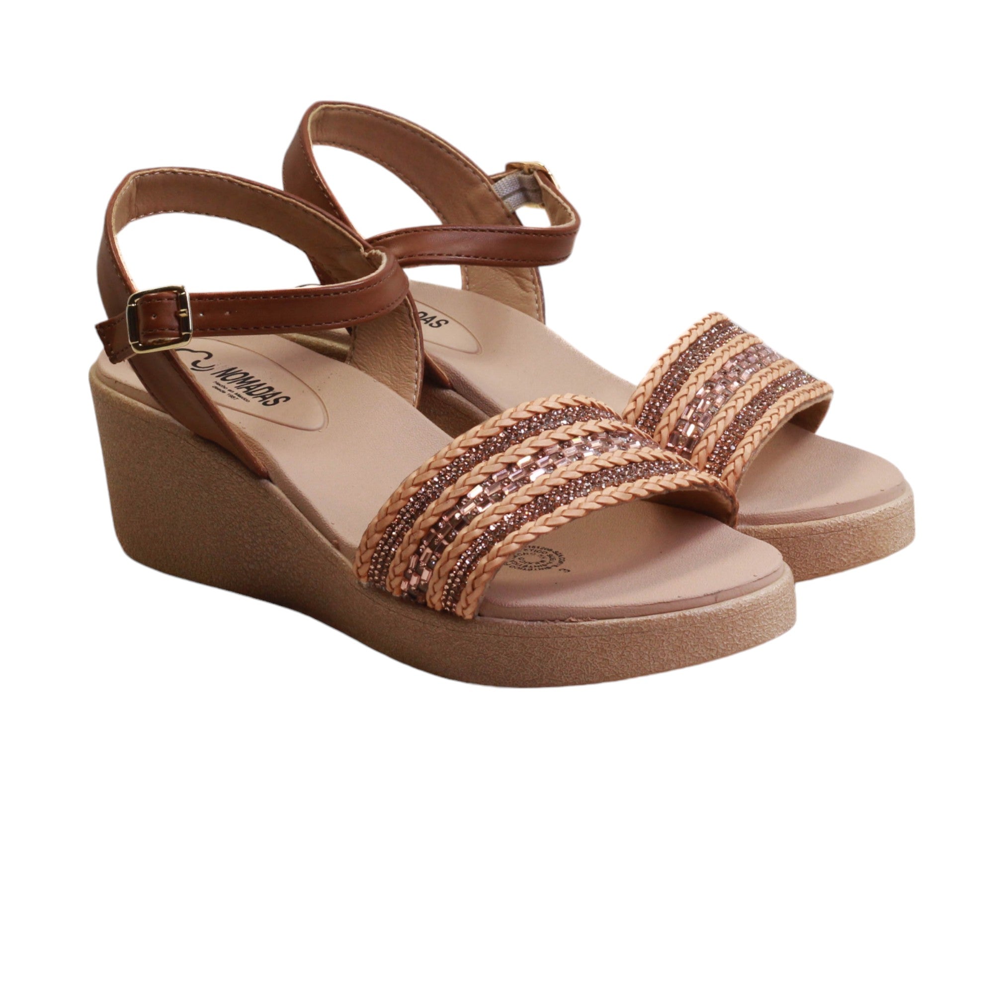 Sandalia para dama marca Nomadas de media plataforma en color adobe. es una sandalia de Confort que te proporciona una altura de 4.5 centímetros con un calce perfecto y te brindará comodidad y estilo en cada paso.