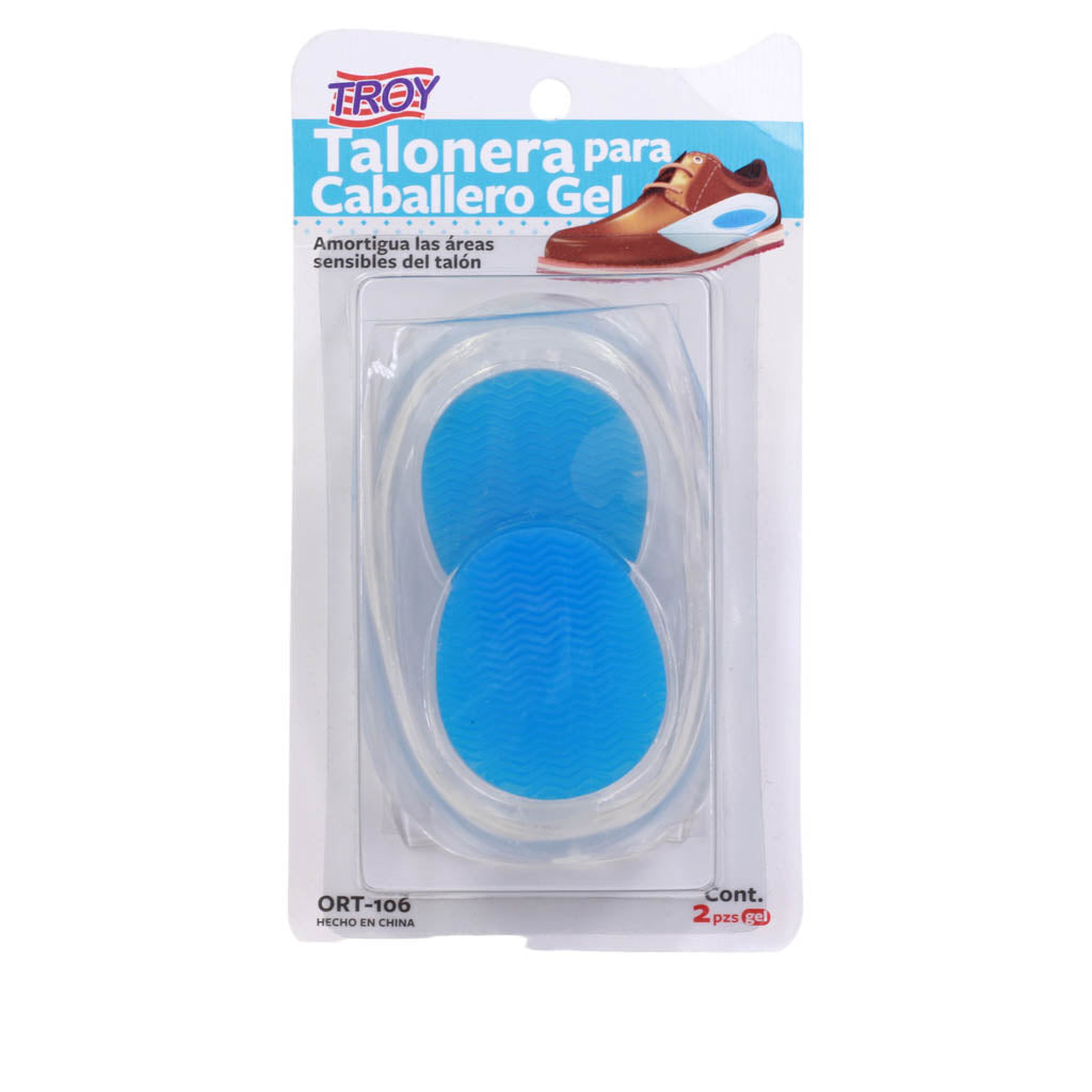 Talonera de gel para caballero marca Troy. Excelente opción para brindar mayor confort al caminar. Están diseñadas para amortiguar las áreas sensibles del talón.