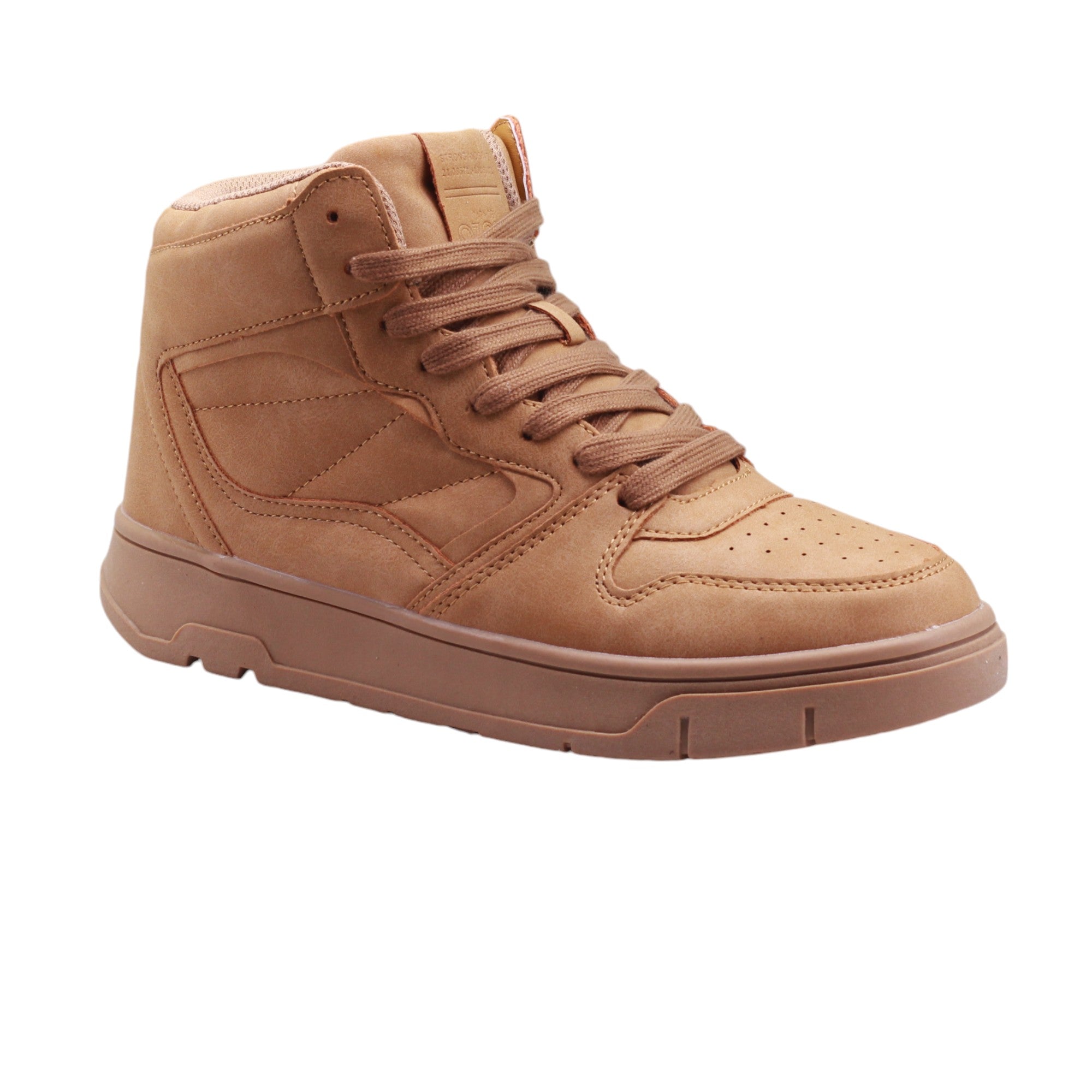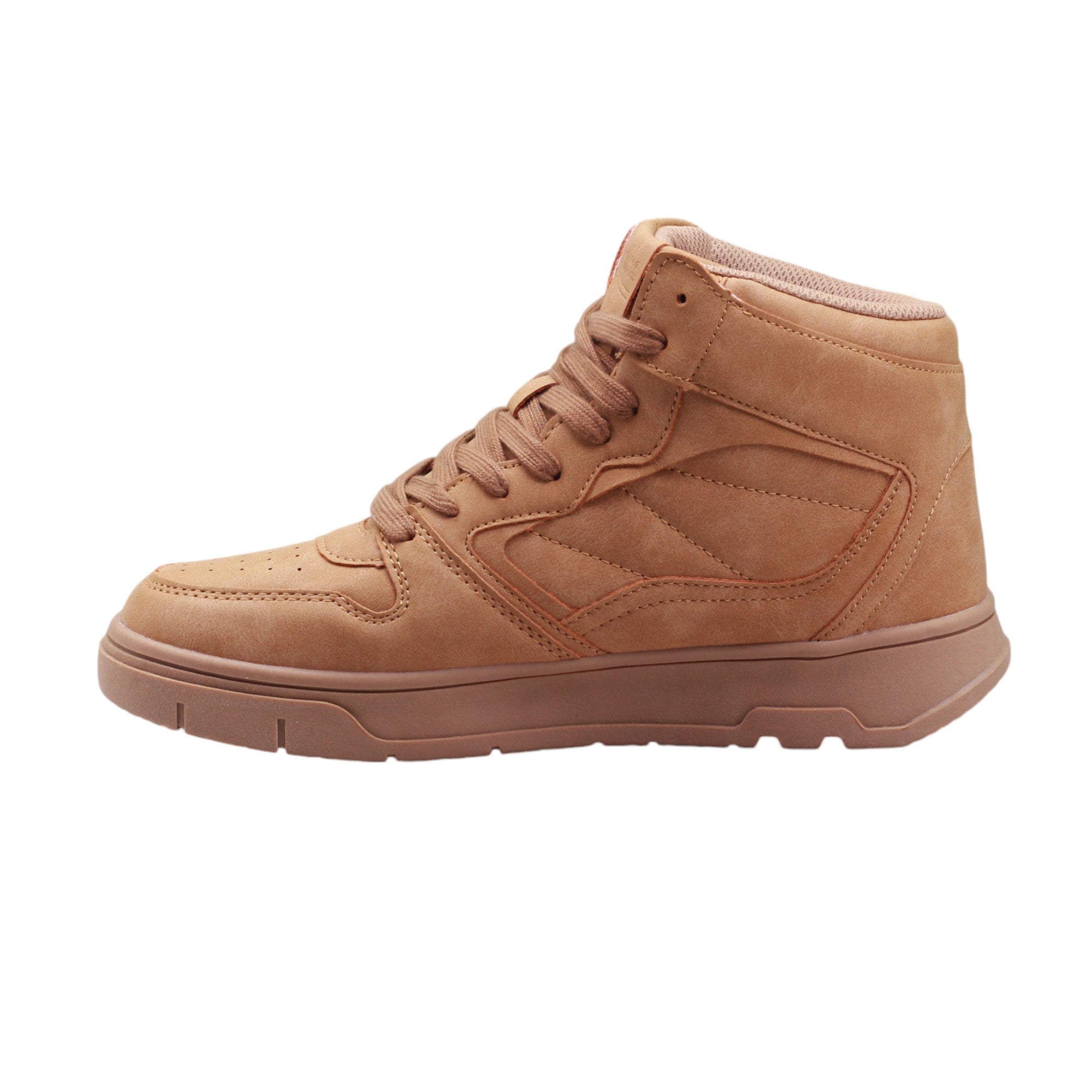 Tenis tipo botín para caballero marca Ozono en color ocre. Este calzado presenta un diseño con suela corrida de 3.5 cm de altura que brinda estabilidad y comodidad al caminar. Las agujetas ajustables permiten un calce perfecto, mientras que el interior cómodo garantiza una experiencia de uso agradable. Ideal para un look elegante y cómodo a la vez.
