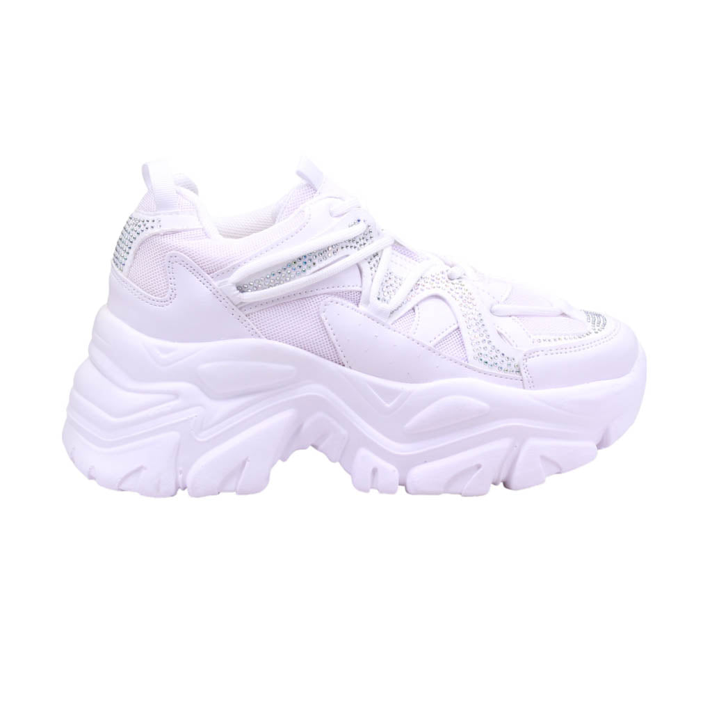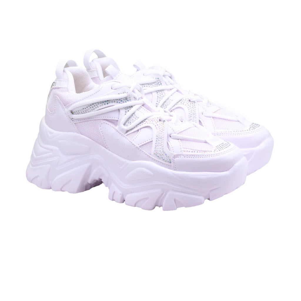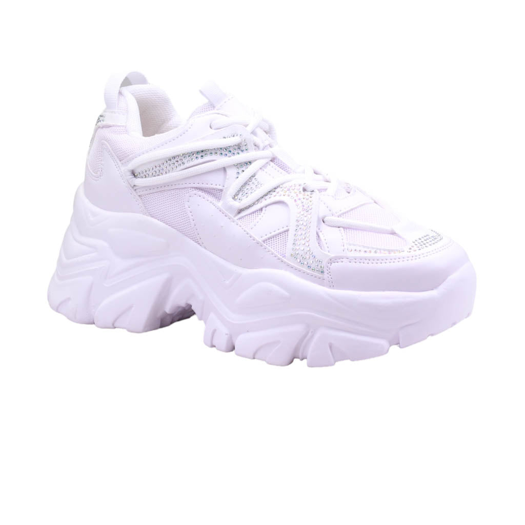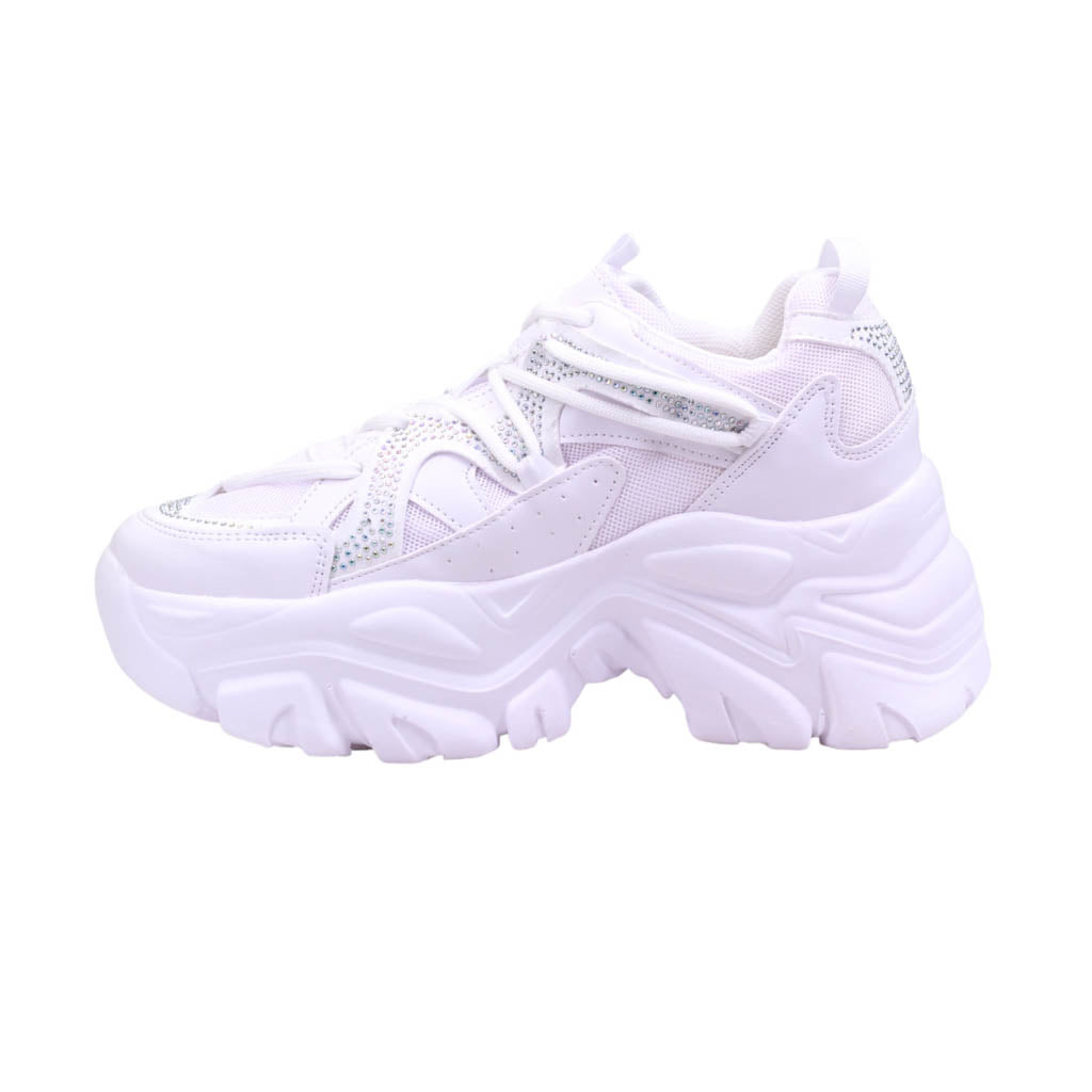 Tenis de plataforma ancha con pedrería en el corte