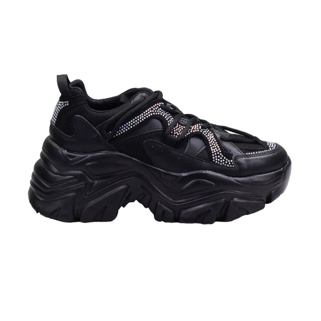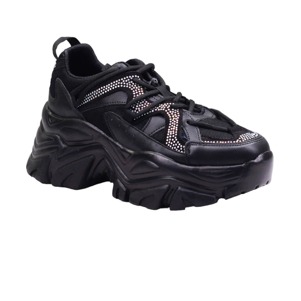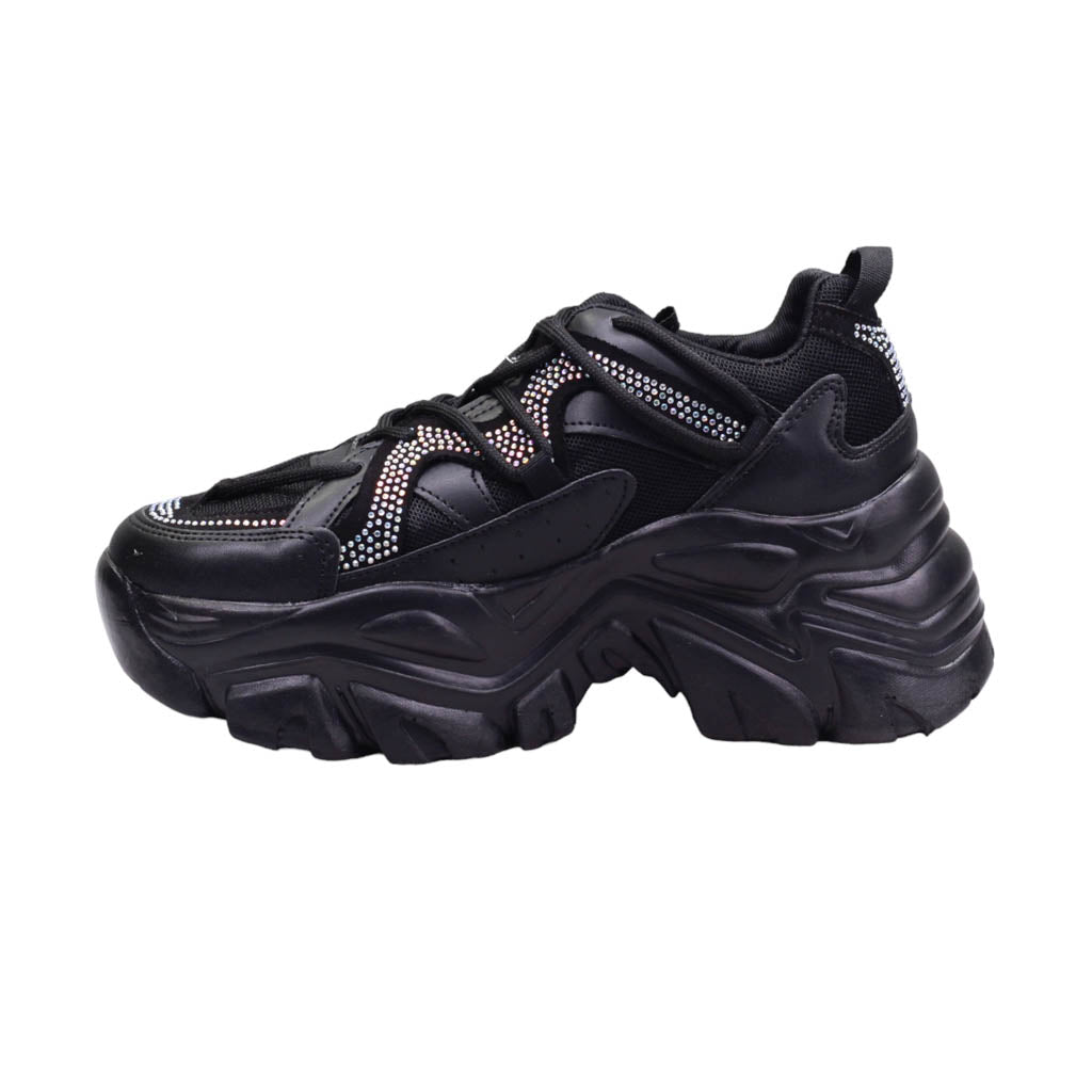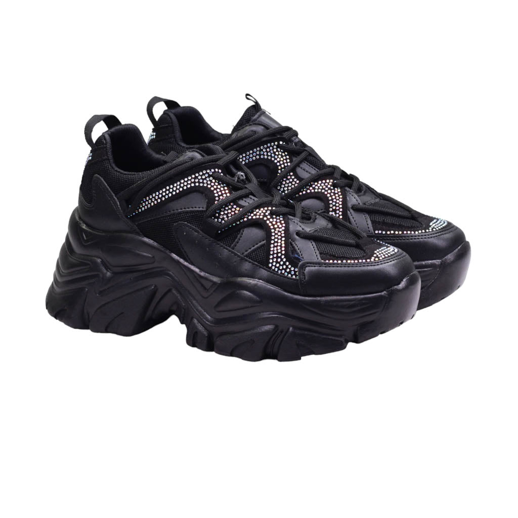 Tenis de plataforma ancha con pedrería en el corte