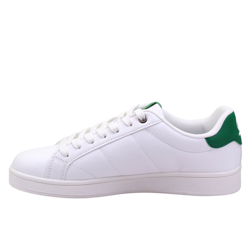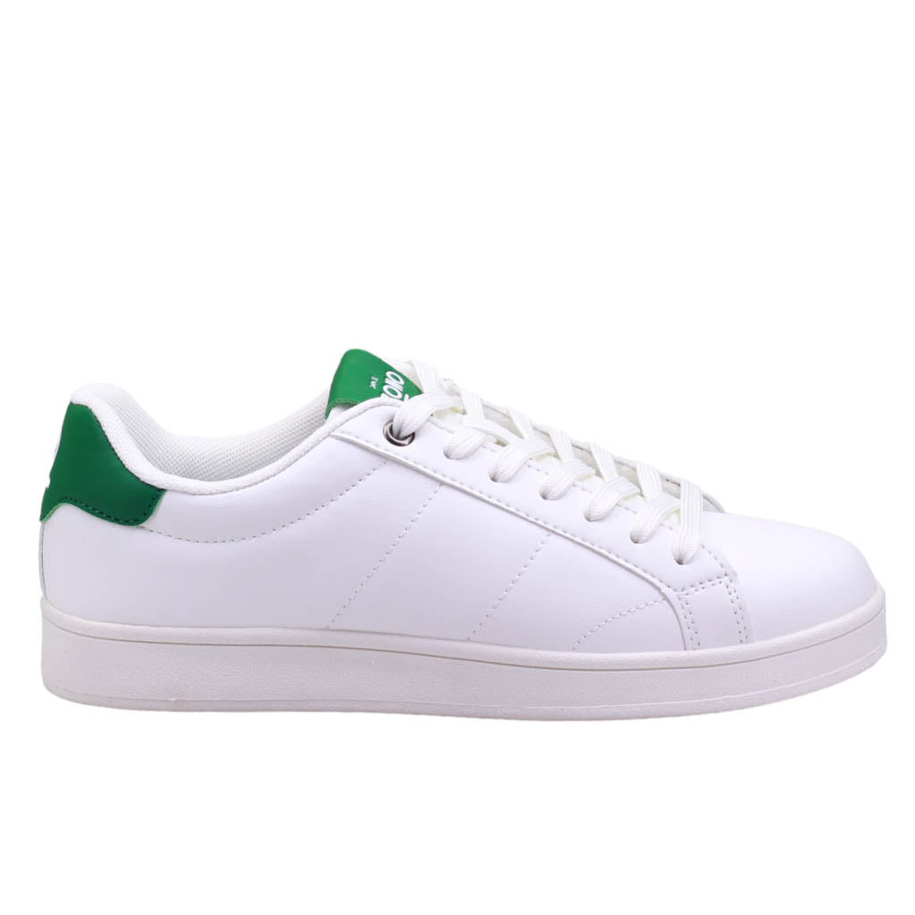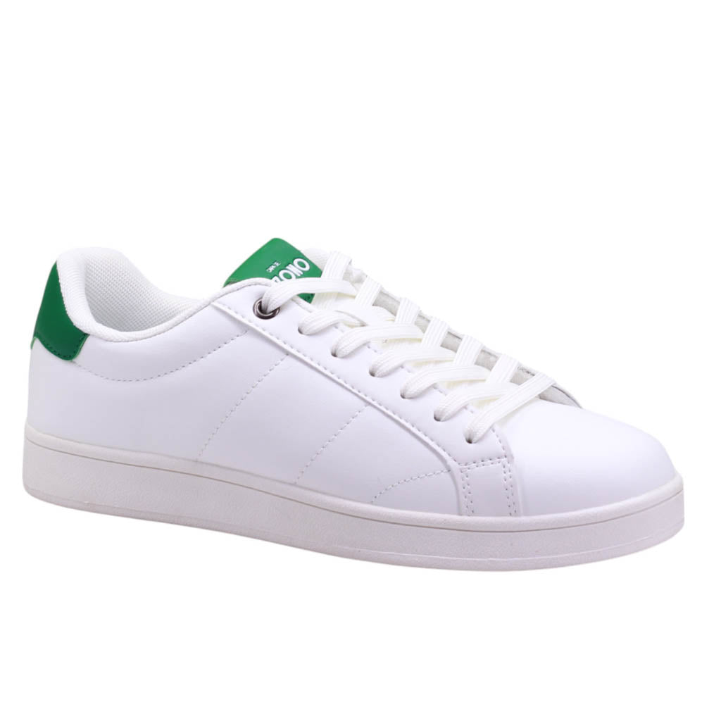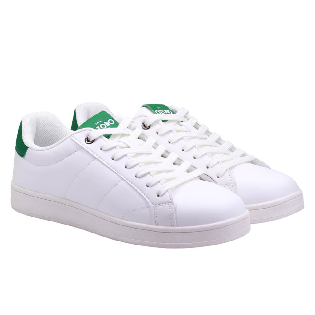 Tenis para caballero marca Ozono en color blanco. Experimente la comodidad y la ligereza con nuestro modelo de suela ligera. Su interior acolchado y la lengüeta verde proporcionan un diseño moderno y cómodo. ¡Disfrute de un estilo único y cómodo al caminar!