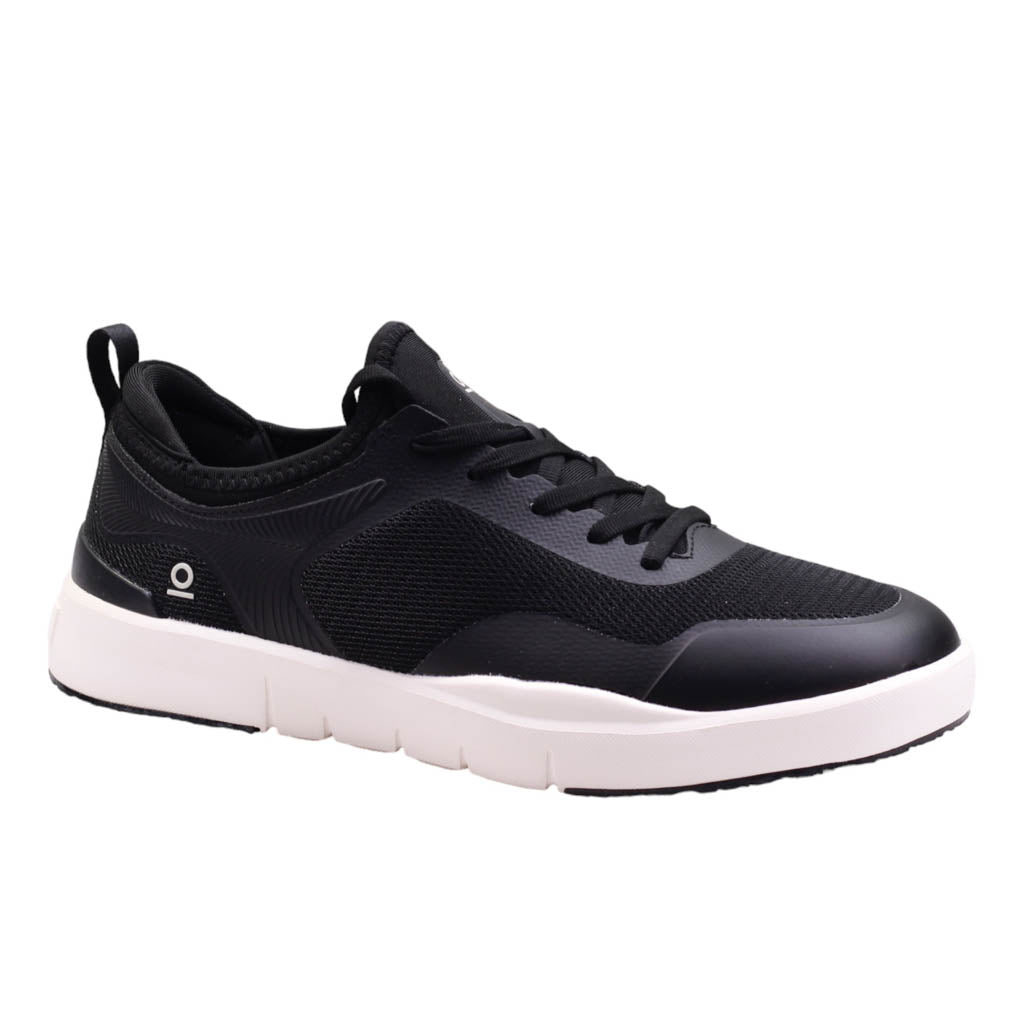 Tenis para caballero marca Ozono en color negro. Modelo ligero y acolchado, este producto ofrece un acabado transpirable, lo que garantiza comodidad. Ideal para aquellos que buscan una sujeción cómoda.