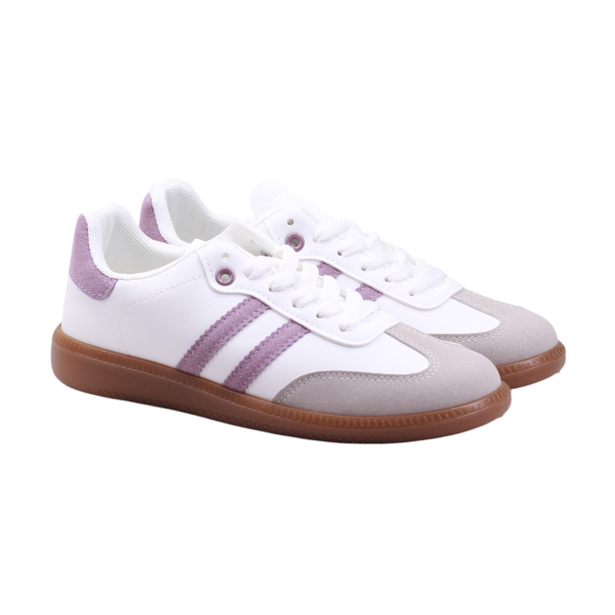 Tenis para dama marca Berlin en color purple. Escoge comodidad y estilo con nuestro modelo de suela corrida. Ajuste tus agujetas para mayor seguridad mientras mueves tus pies con libertad. Adornado con doble linea lateral y frente en nubuck, es ideal para cualquier ocasión casual. Disfruta de su diseño sin renunciar a la funcionalidad.