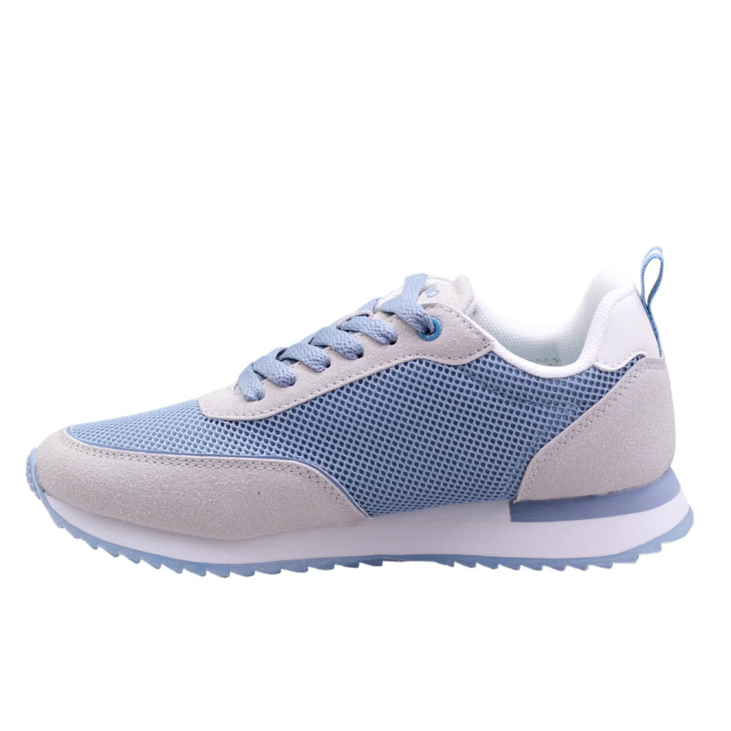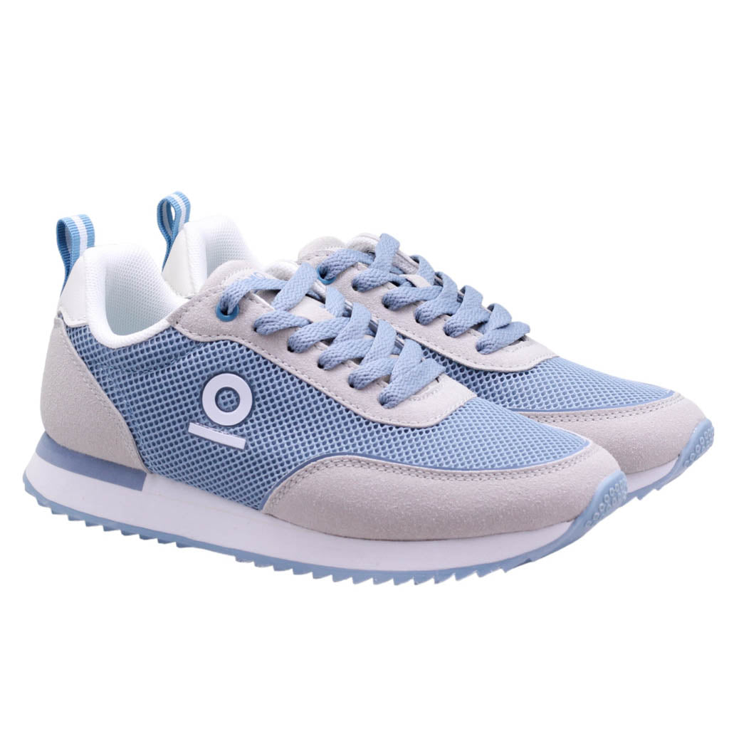Tenis urbano para dama marca Ozono en colores azul y late. Es un bonito diseño de confort, ligero y cómodo para usar día a día. Es un calzado ergonómico de tipo casual que gracias a sus materiales te permitirá la mayor entrada de aire posible.