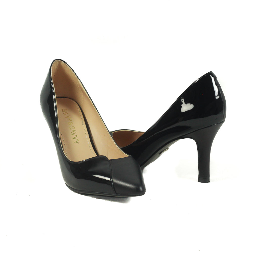 Zapatilla para dama marca Savy en color negro. Es una zapatilla formal y vestir con un tacón delgado y lucidor. Este tipo de calzado es especial y refleja mucha originalidad, su diseño tiende a ser el más sofisticado de todos los zapatos de tacón. Usar un par de D'orsay heels es estar siempre a la moda, ya que sigue en tendencia año tras año sin llamar mucho la atención.