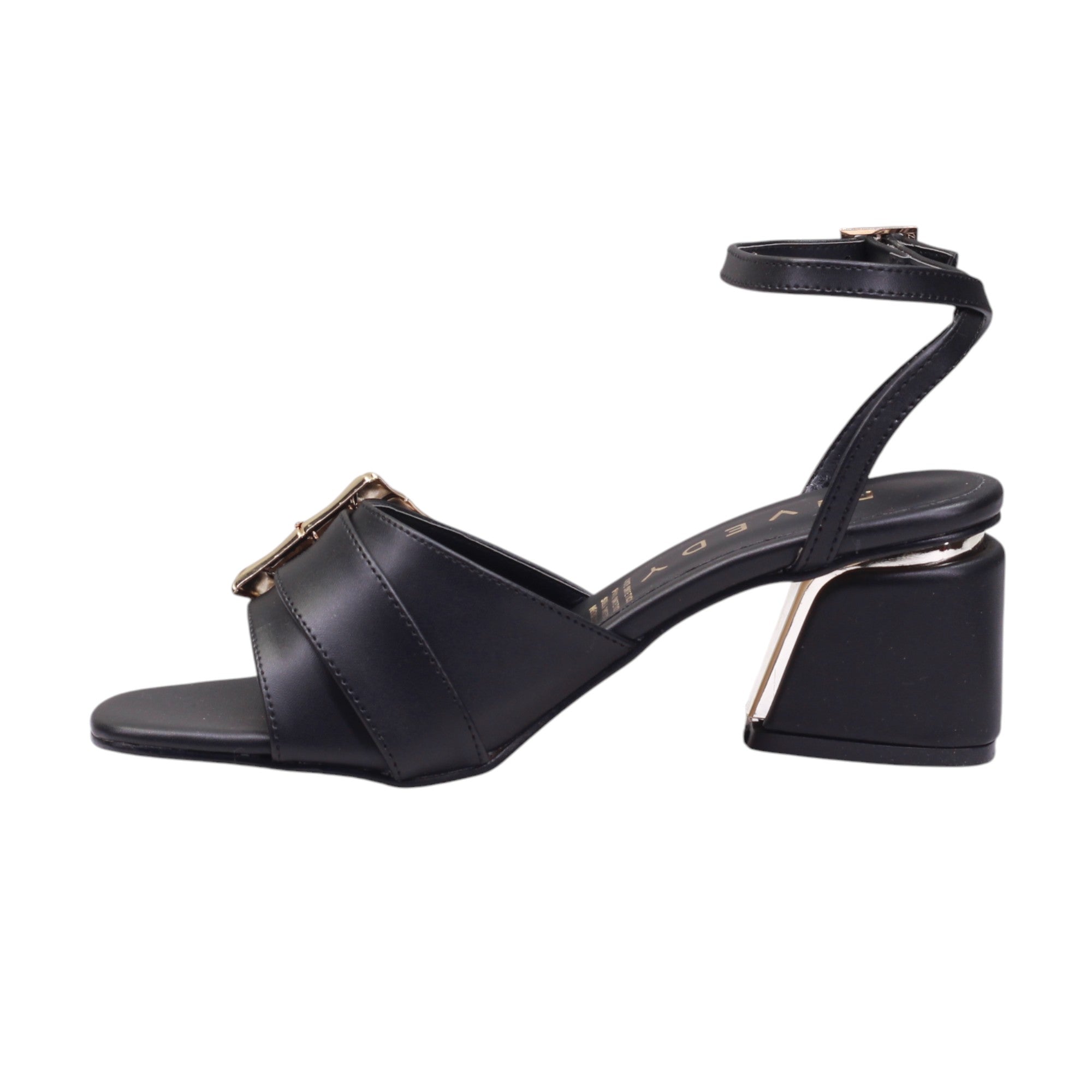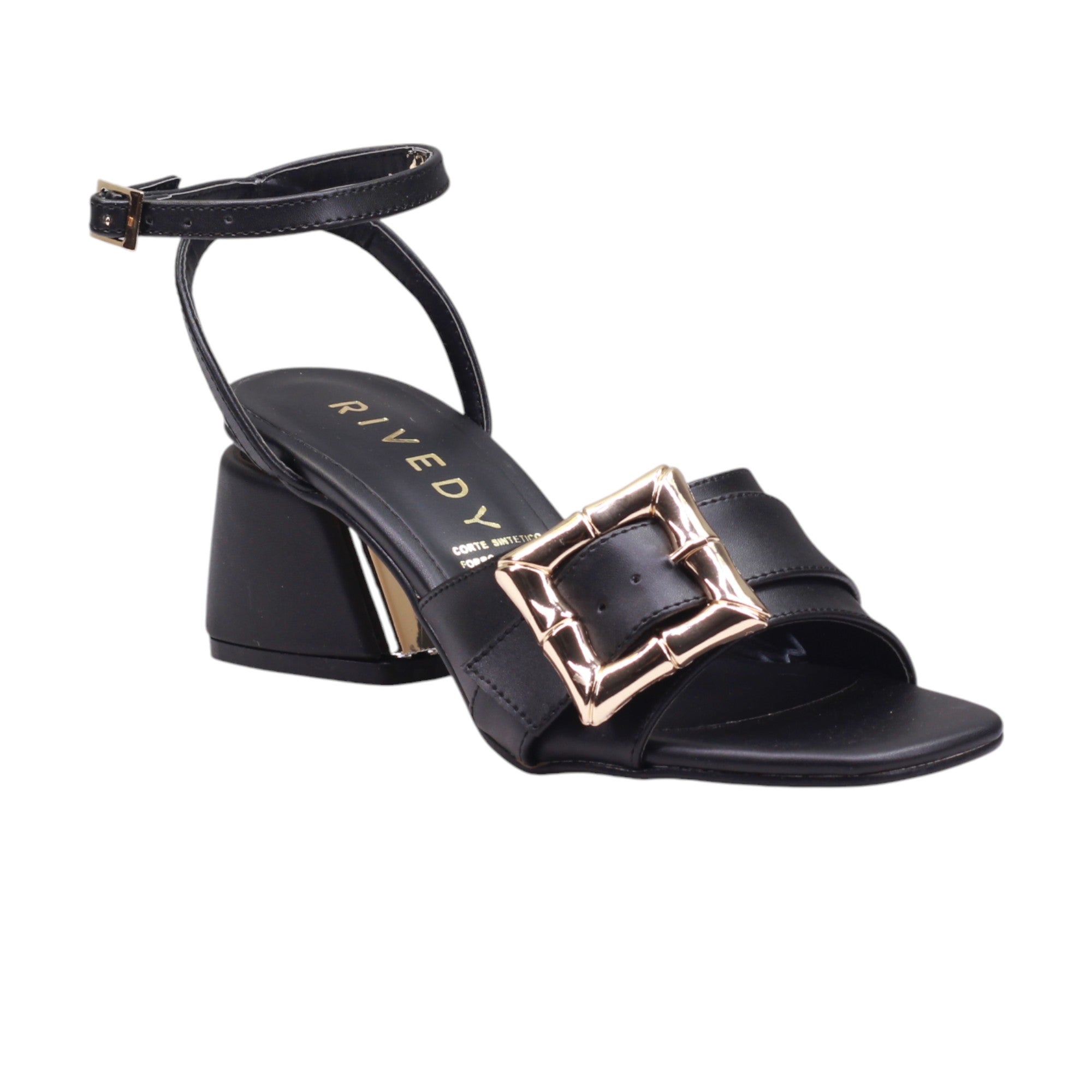 Zapatilla para dama marca Rivedy en colores blanco y negro. Este modelo de tacón ancho cuenta con una altura de 6.5 cm y una tira delgada ajustable al tobillo con hebilla, brindando comodidad y seguridad al caminar. Además, su corte cuenta con una hebilla grande de adorno para darle un toque elegante y sofisticado a tu estilo.