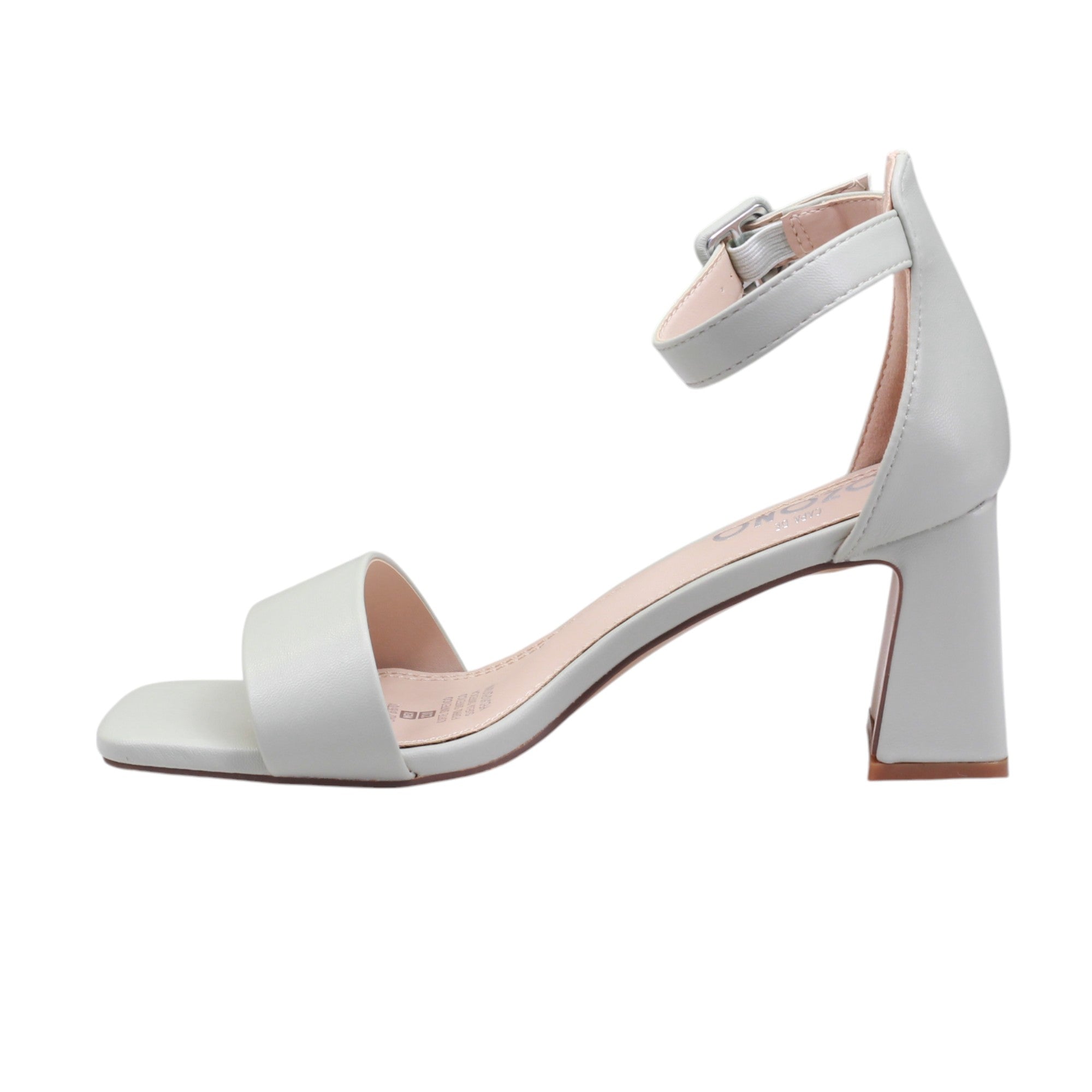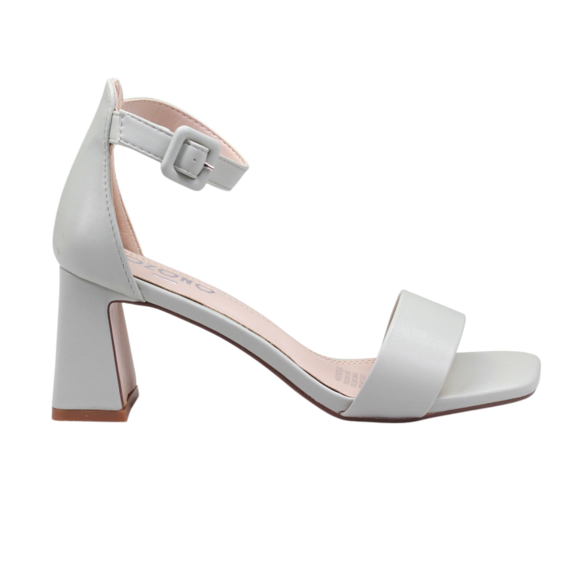 Zapatilla de tacón ancho rectangular y tira delgada con hebilla