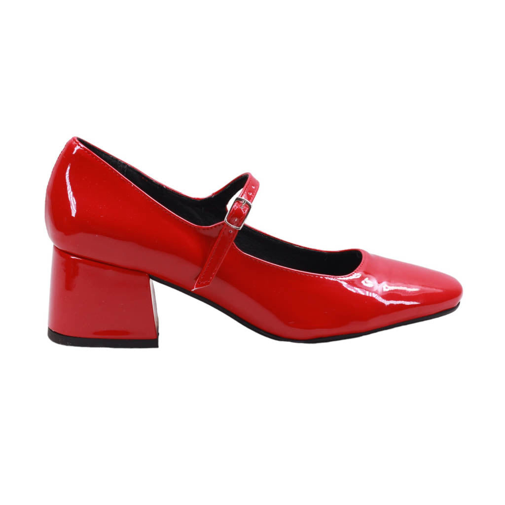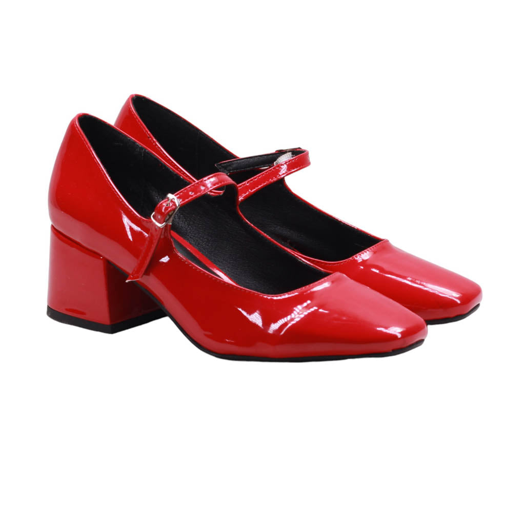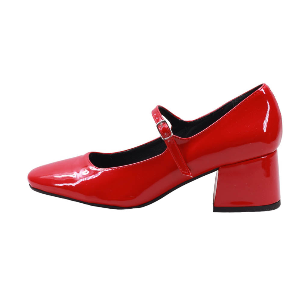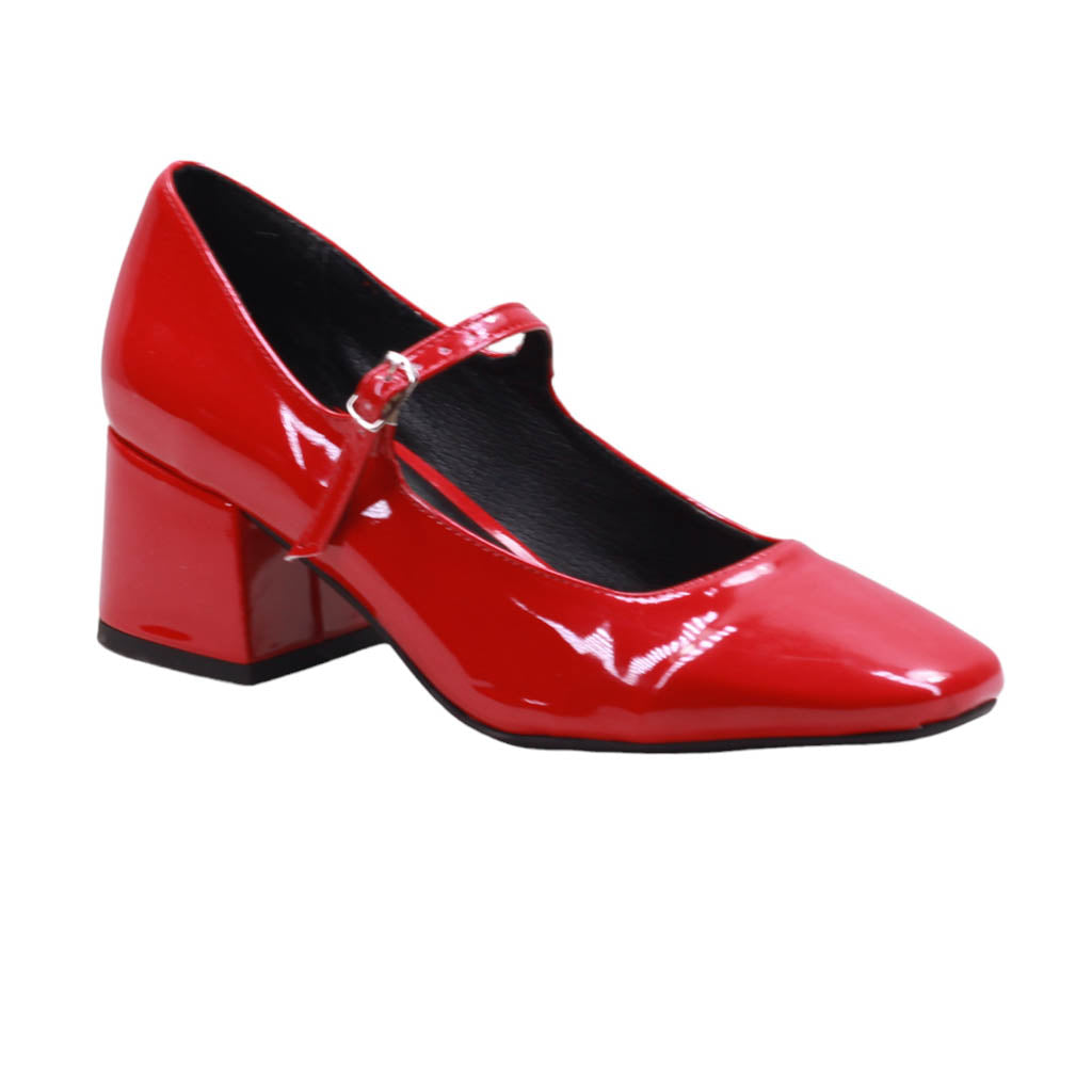 Zapatilla para dama marca Nómadas en colores rojo, negro y maquillaje. Este atractivo modelo formal y clásico, ideal para complementar cualquier atuendo elegante. Su acabado en charol le da un toque de sofisticación. Además, su plantilla de confort garantiza comodidad al caminar. Cuenta con una tira de ajuste con hebilla para brindar un ajuste perfecto, y un tacón ancho de 5.00 cm de altura para mayor estabilidad.