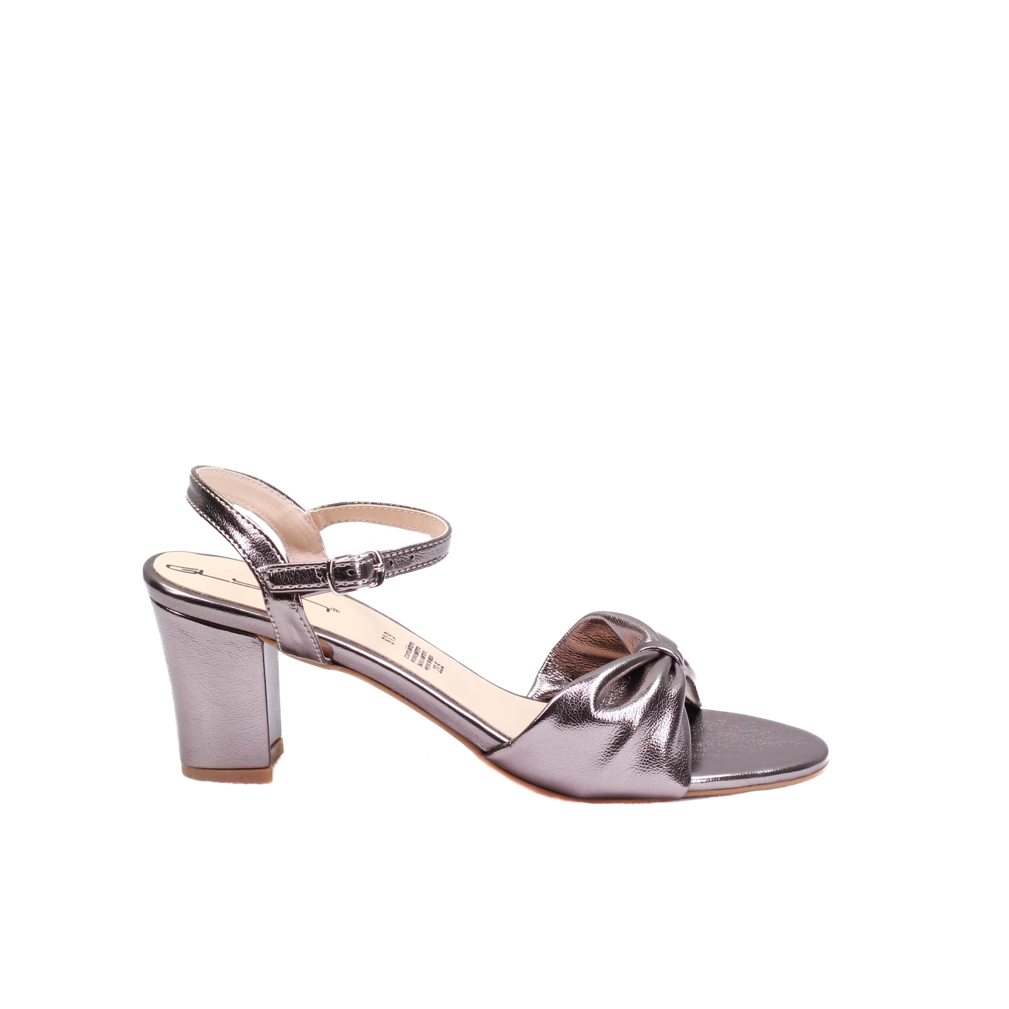 Zapatilla para dama marca Glynn en colores inox. Bonito diseño con moño de corte, tacón cuadrado de 6 centímetros para mejor equilibrio y comodidad. Cuenta con un terminado en charol y tonos metalizados