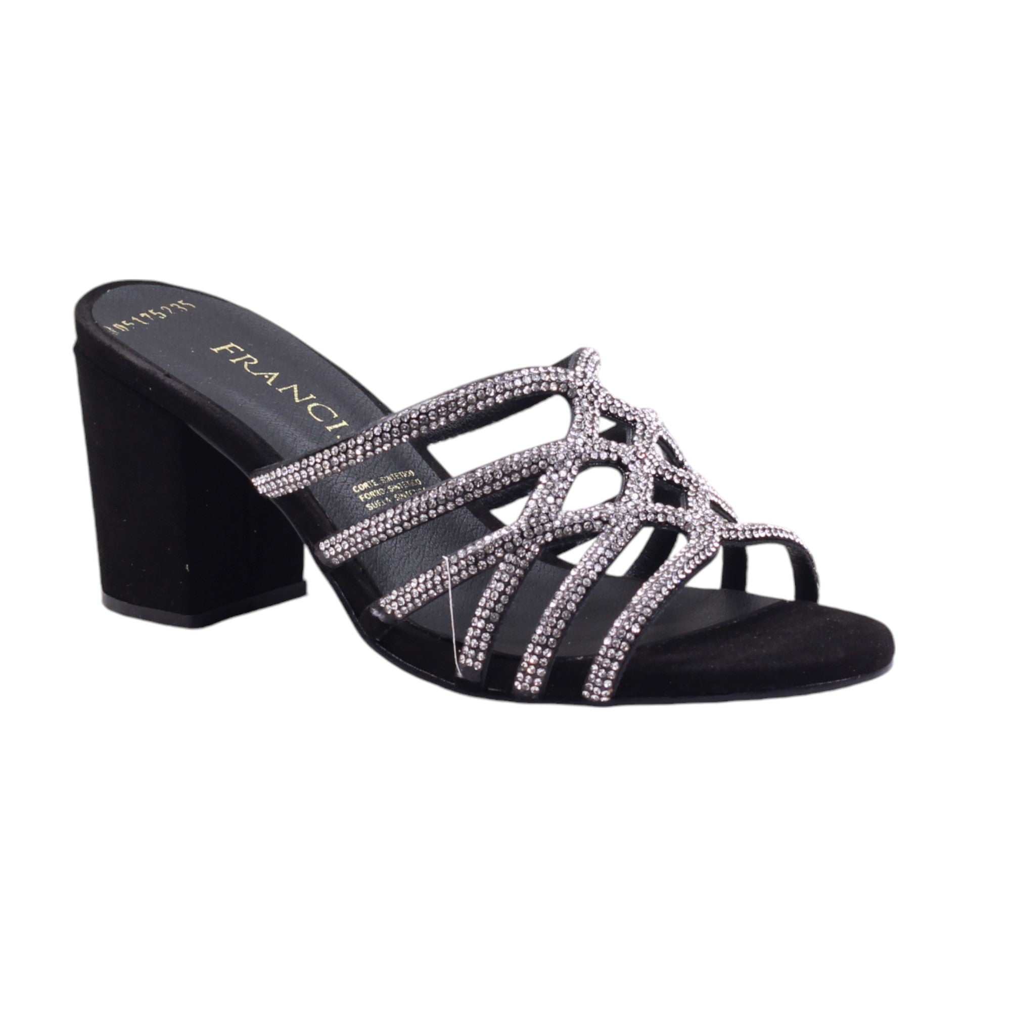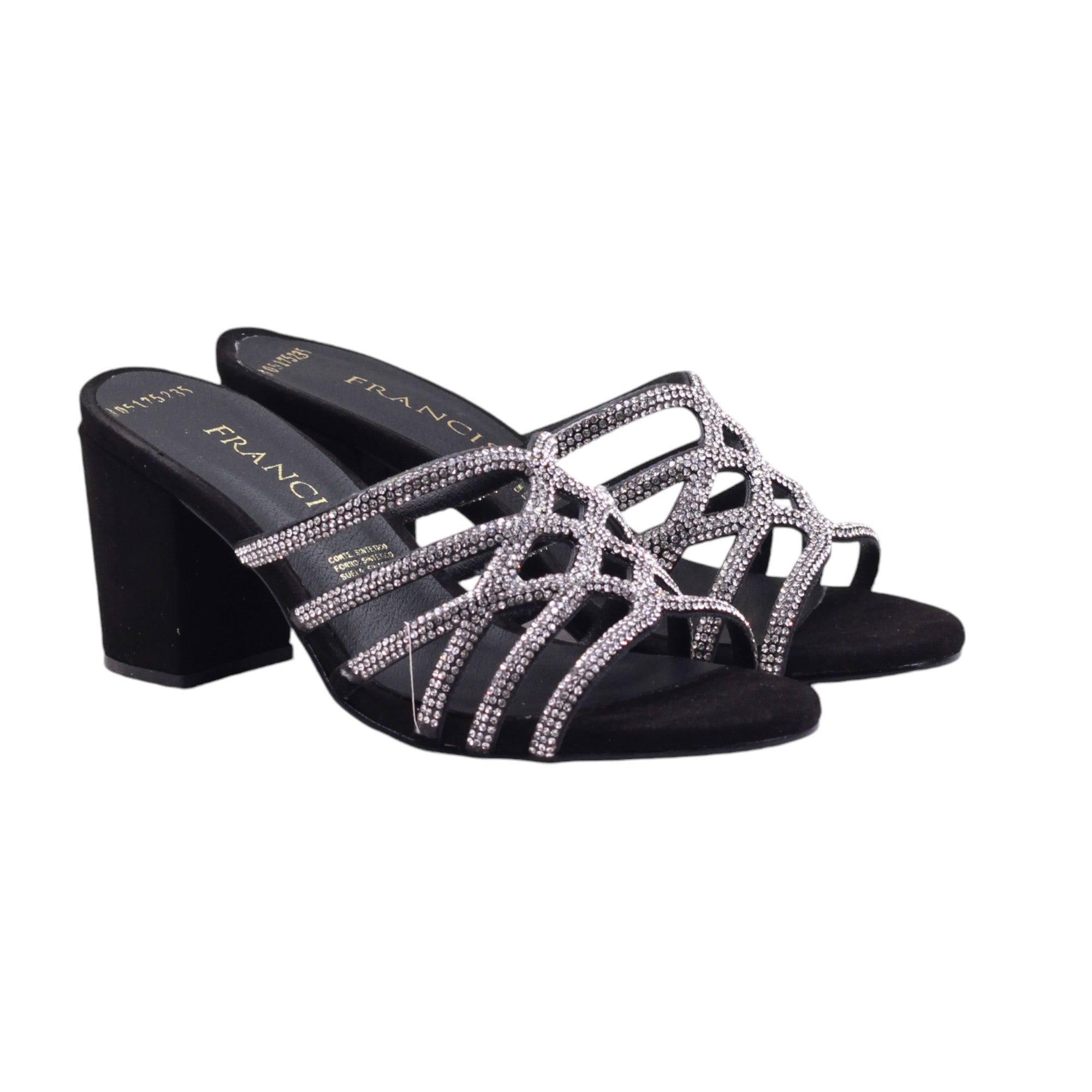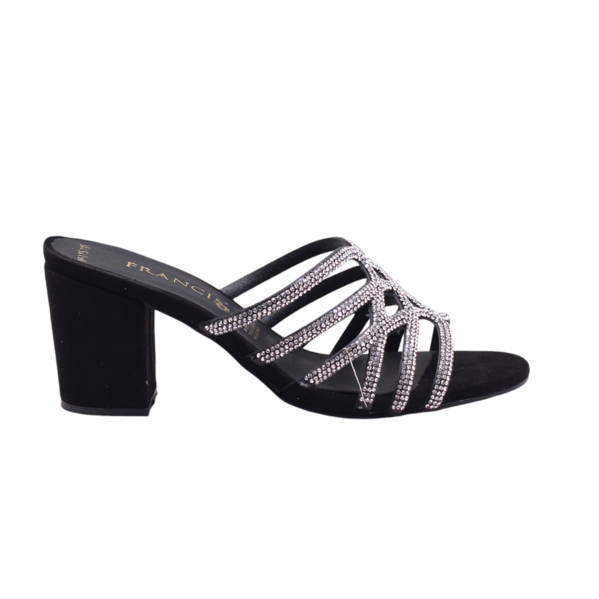 Zapatilla para dama marca Francis en color negro. Este elegante modelo cuenta con un tacón ancho de 6.00 cm de altura, lo que brinda comodidad y estabilidad al caminar. Además, su corte está adornado con pedrería artificial, añadiendo un toque de glamour y estilo a cualquier atuendo. ¡No te pierdas la oportunidad de lucir sofisticada y a la moda con este modelo de tacón ancho!