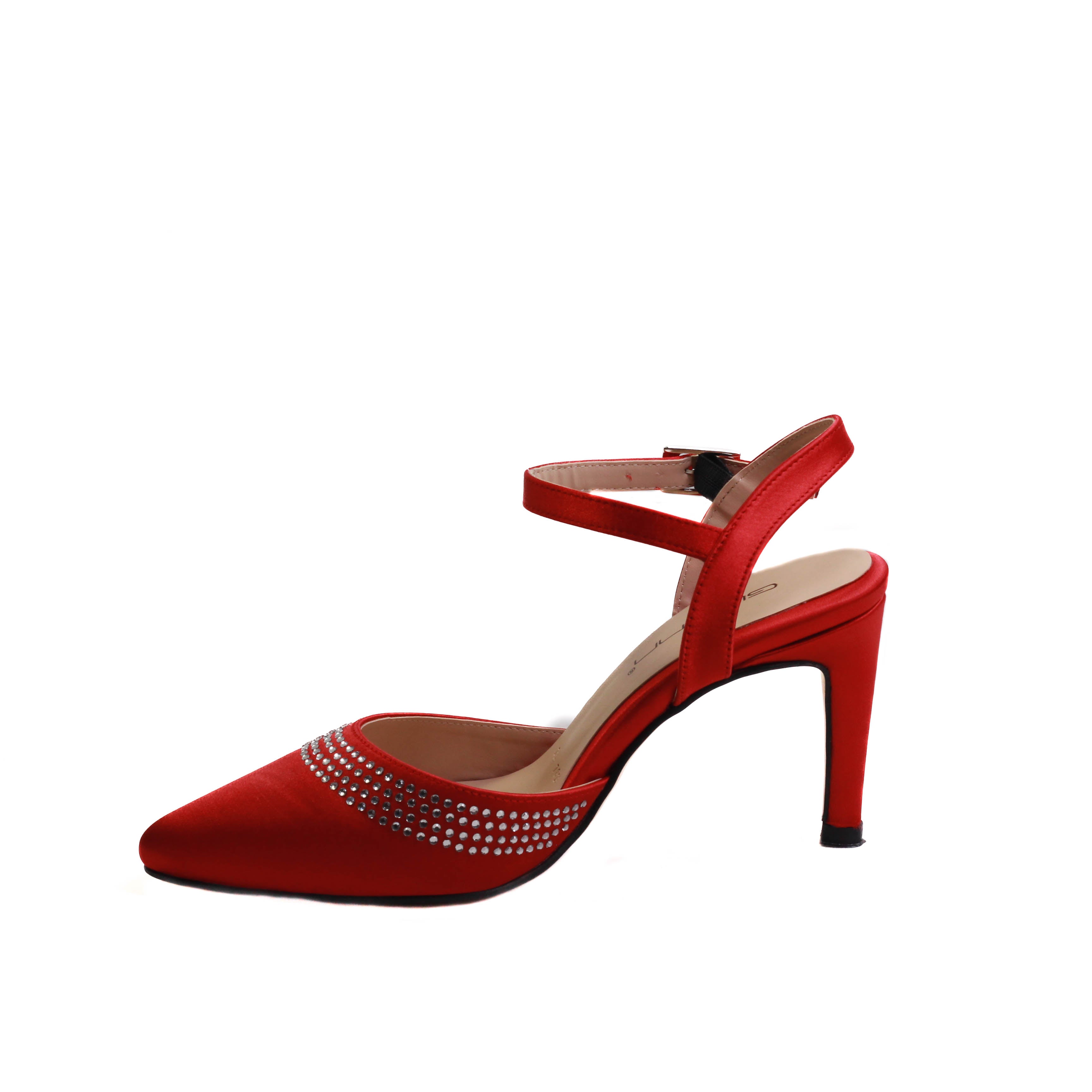 Zapatilla para dama con piedras de adorno y tacón delgado medio