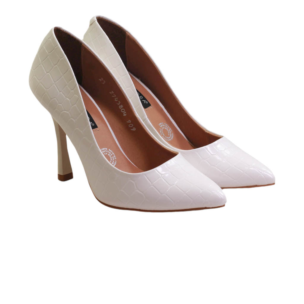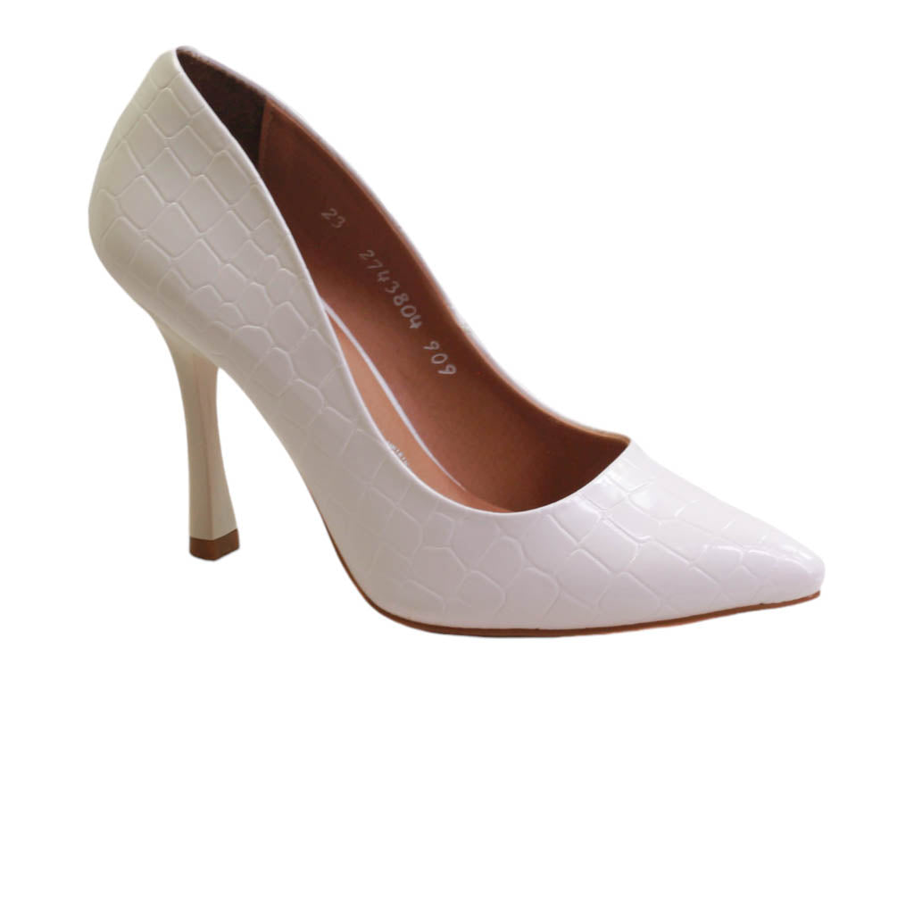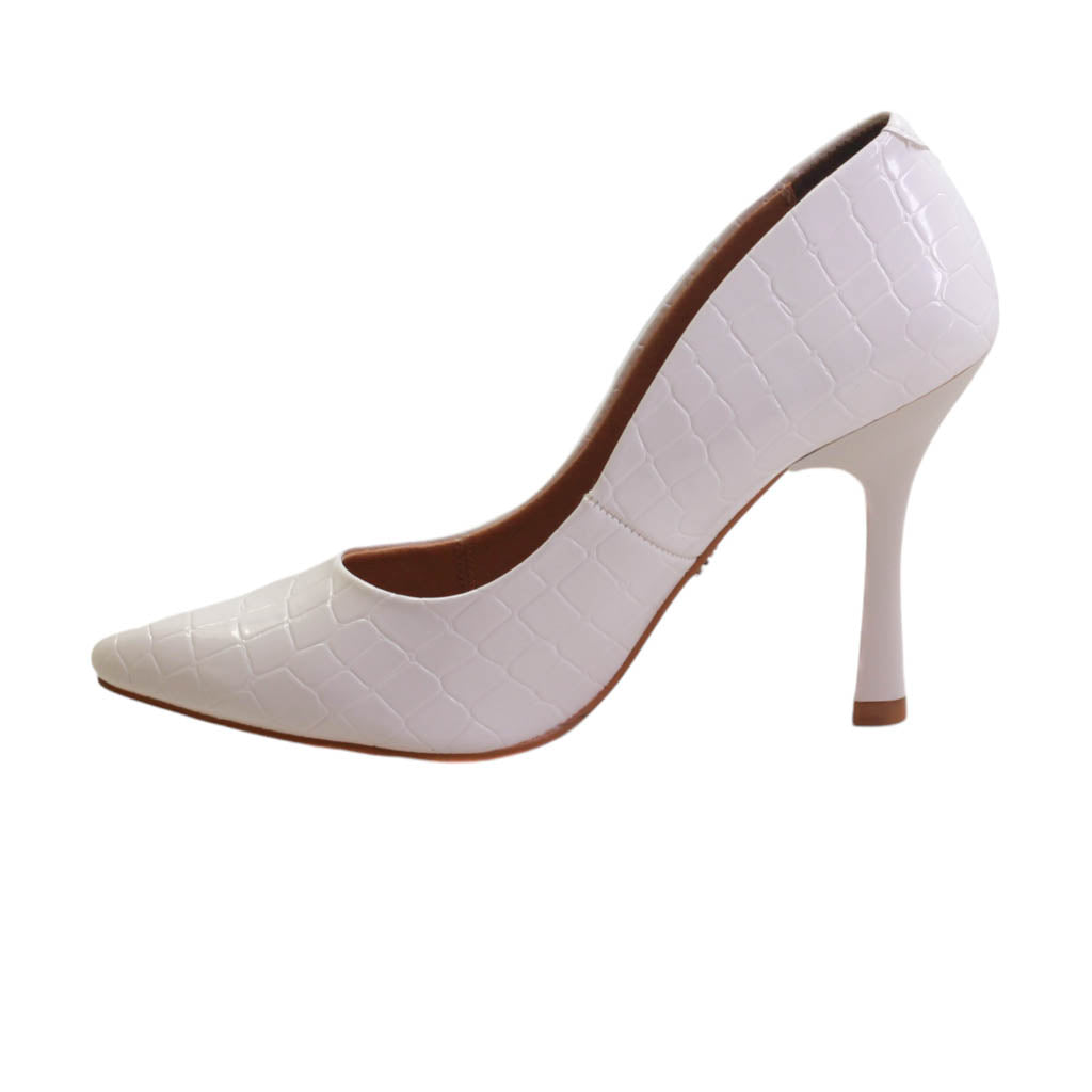 Zapatilla para dama marca Salamandra en color blanco. Es una zapatilla formal y vestir con un tacón delgado y lucidor. Este tipo de calzado es especial y refleja mucha originalidad, su diseño tiende a ser el más sofisticado de todos los zapatos de tacón. Usar un par de D'orsay heels es estar siempre a la moda, ya que sigue en tendencia año tras año sin llamar mucho la atención.