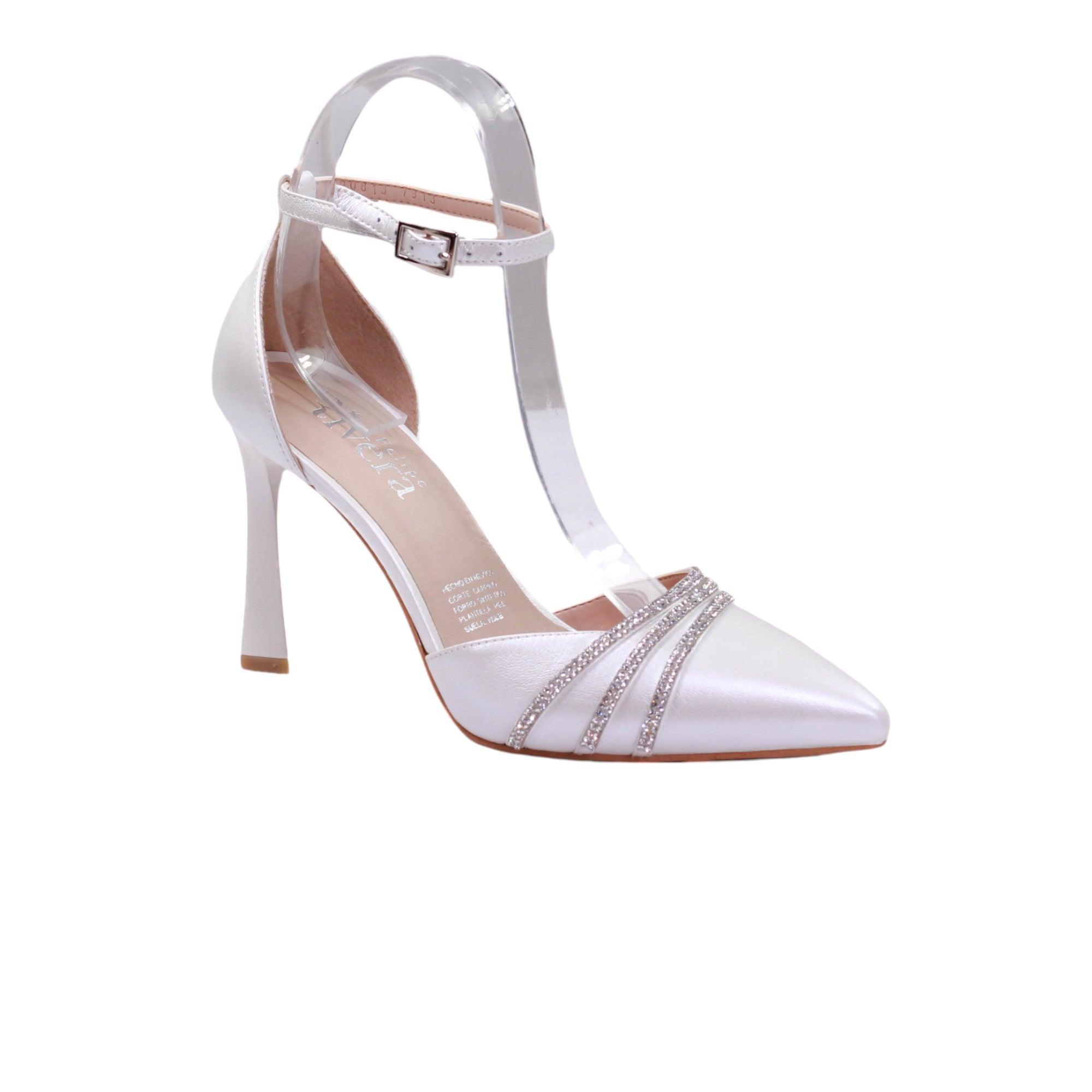 Zapatilla para dama marca Felipe Rivera en color niebla. Es una zapatilla formal y vestir con un tacón delgado y lucidor. Este tipo de zapatillas es especial y refleja mucha originalidad, su diseño tiende a ser el más sofisticado de todos los zapatos de tacón. Usar un par de esta marca es estar siempre a la moda, ya que siguen en tendencia año tras año.