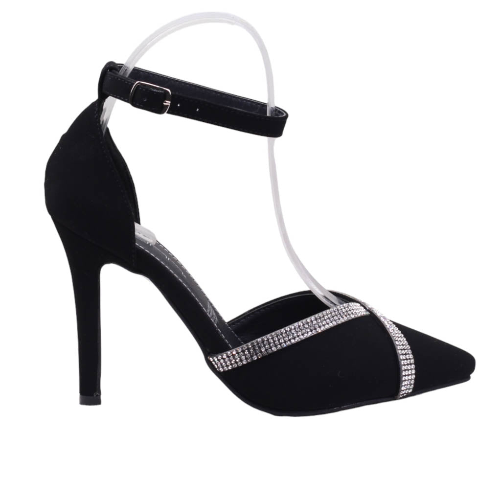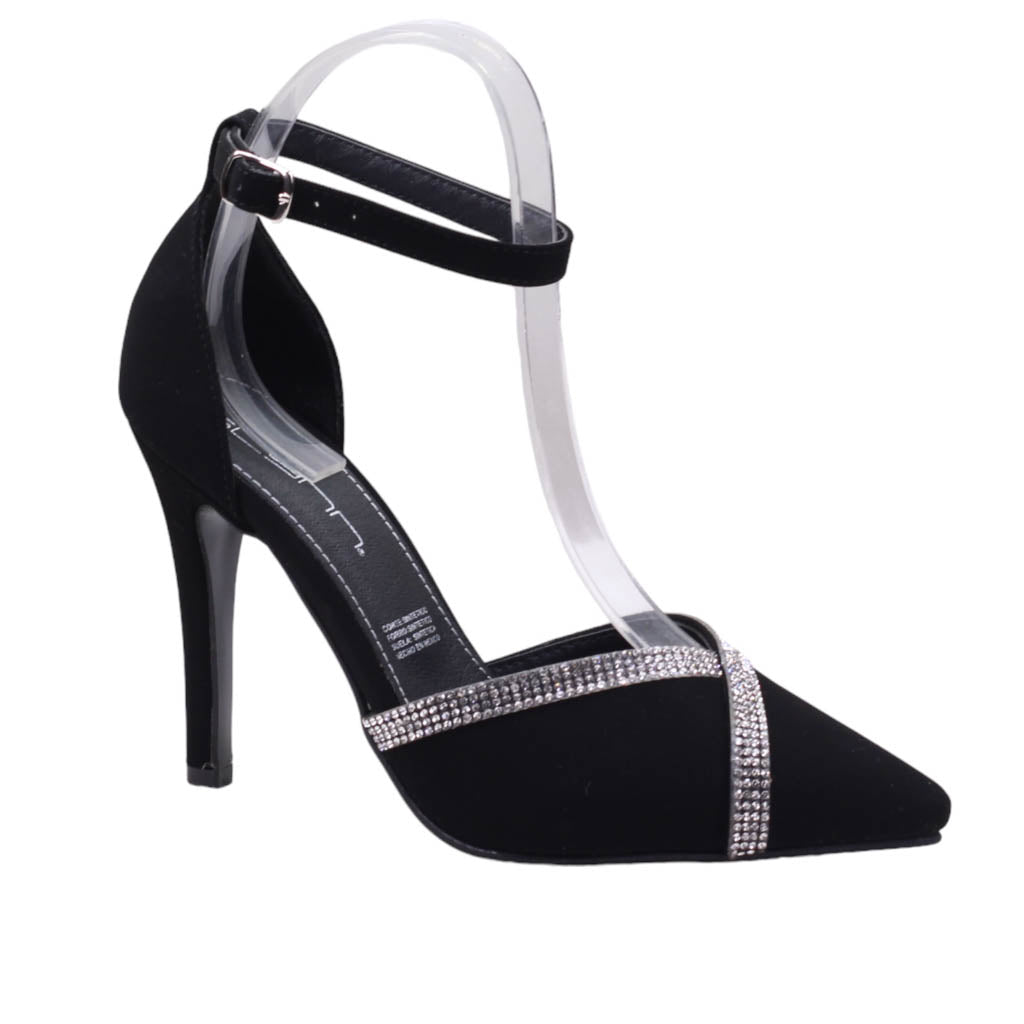 Zapatilla para dama marca Glynn en colores perla y negro. Este modelo presenta un elegante diseño con una altura de tacón de 10.00 centímetros, ideal para estilizar tu figura. El detalle de pedrería y el ajuste al tobillo añade un toque sofisticado y único a tu look. Perfecto para cualquier ocasión y siempre luciendo elegante.