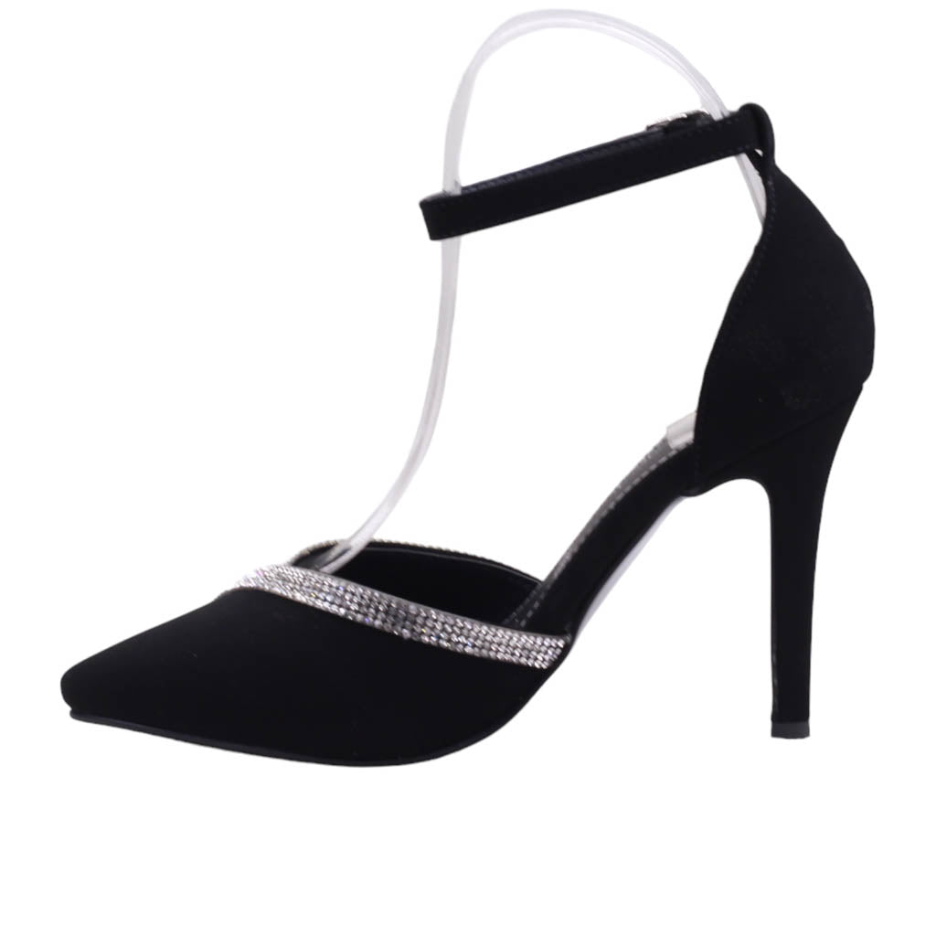 Zapatilla para dama de ajuste al tobillo y pedrería de adorno
