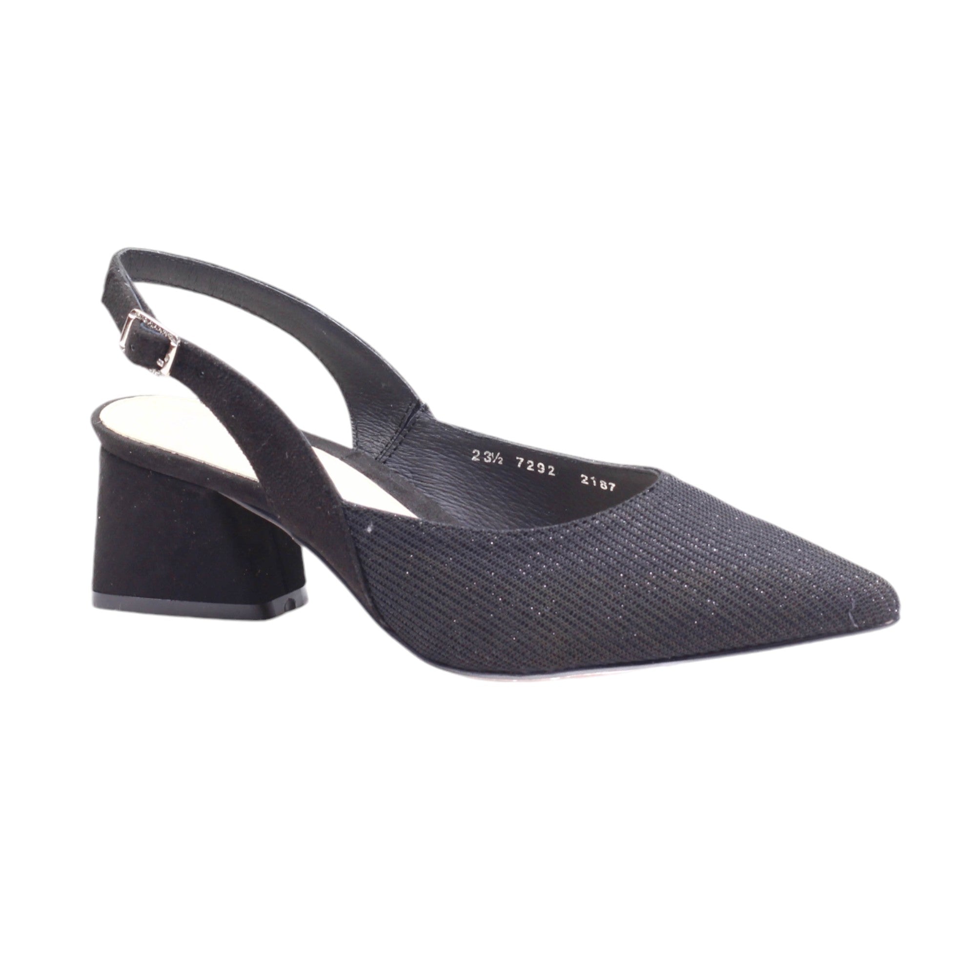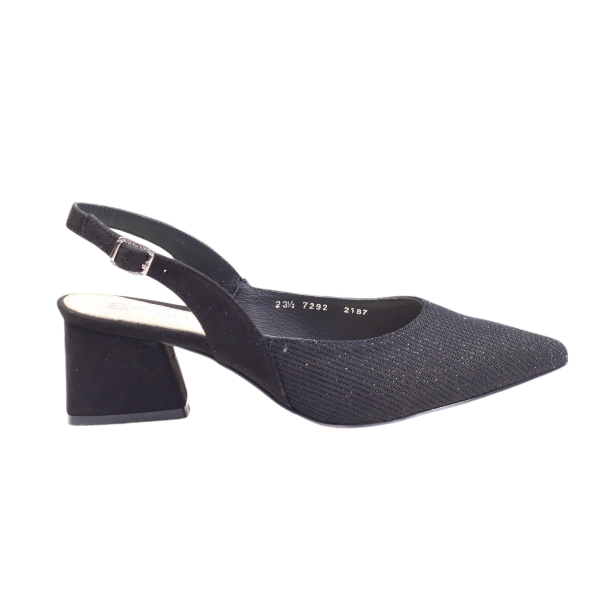 Zapatilla para dama marca Fioranno en color negro. Modelo de tacón grueso cuadrado para dar una mayor comodidad y confiabilidad a cada paso. Es un calzado de término clásico que jamás pasa de moda. Calzado 100% mexicano de alta calidad.