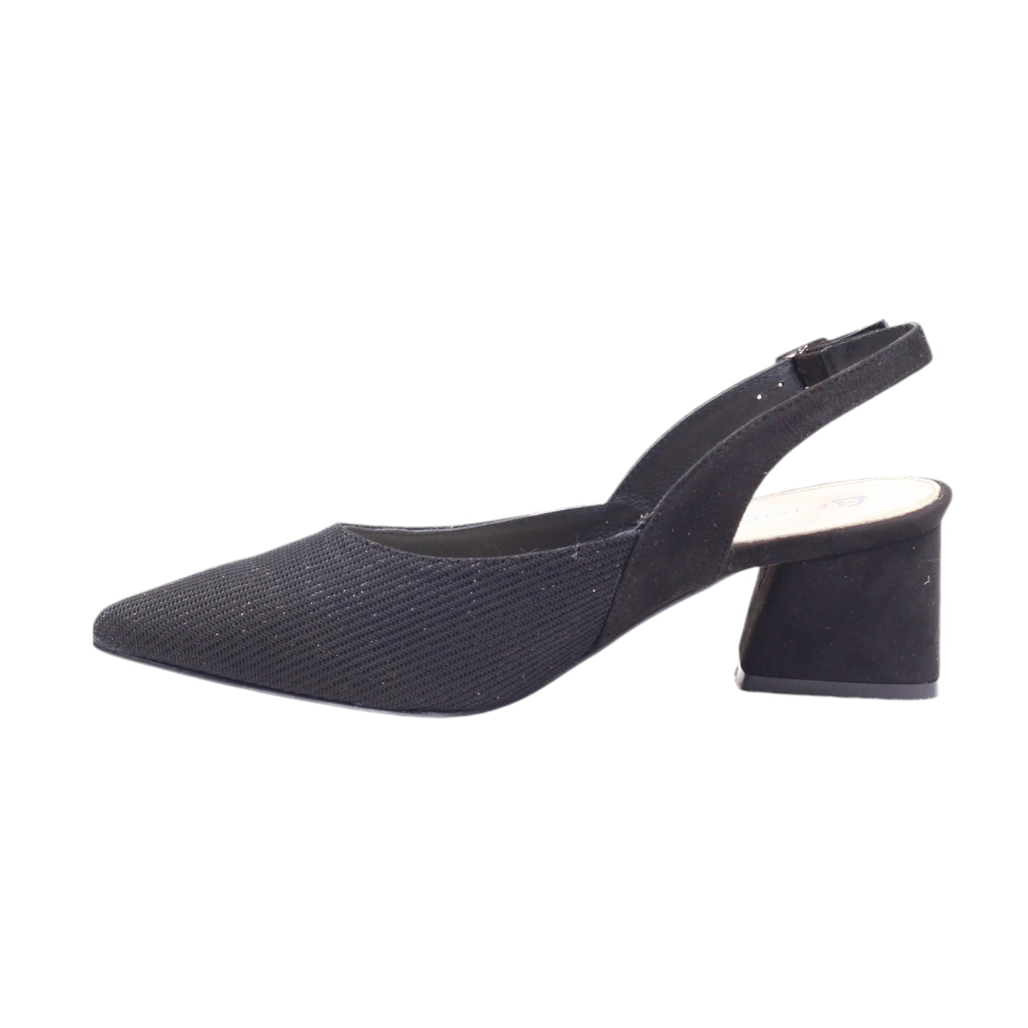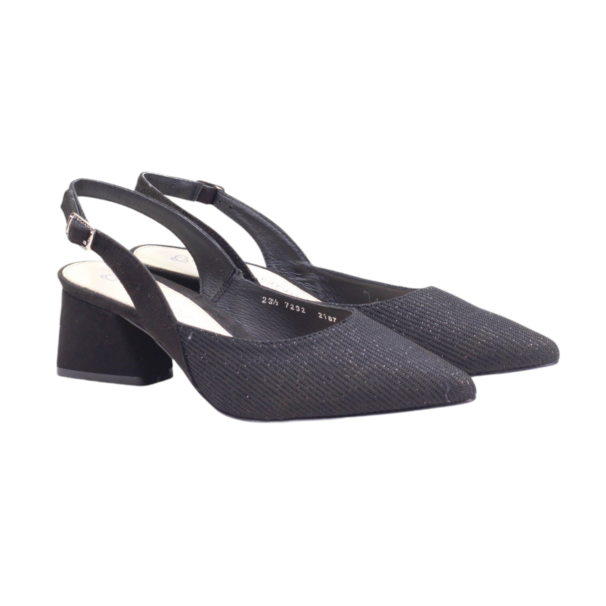 Zapatilla para dama de malla brillosa con tacón cuadrado