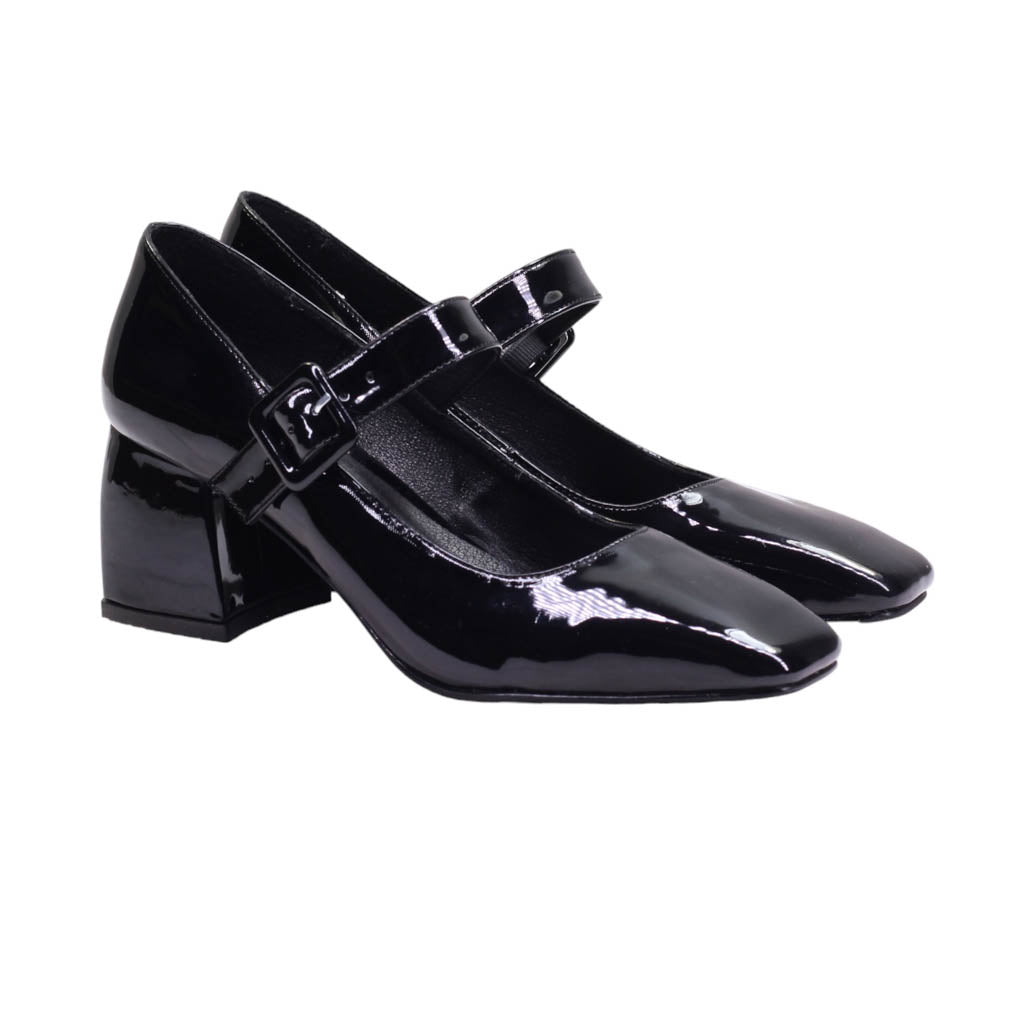 Zapatilla para dama de tacón ancho con ajuste en hebilla