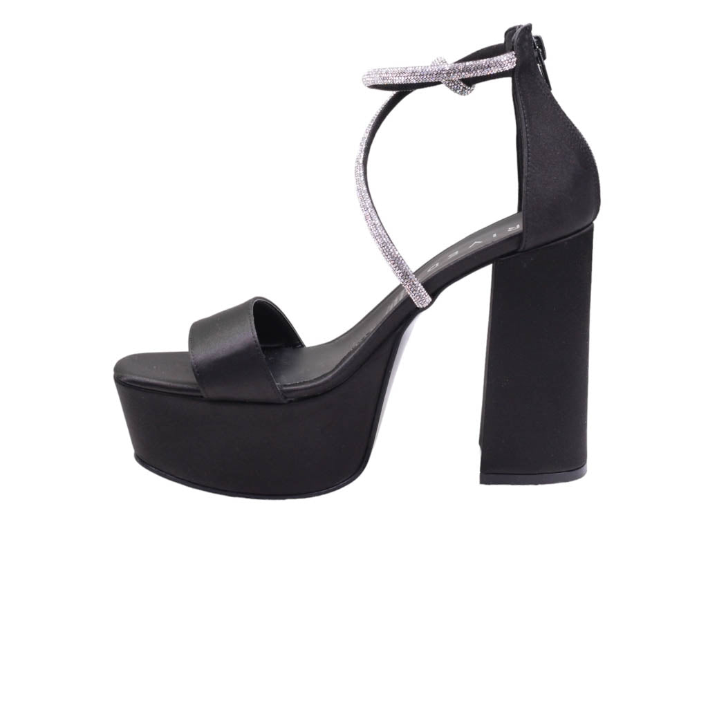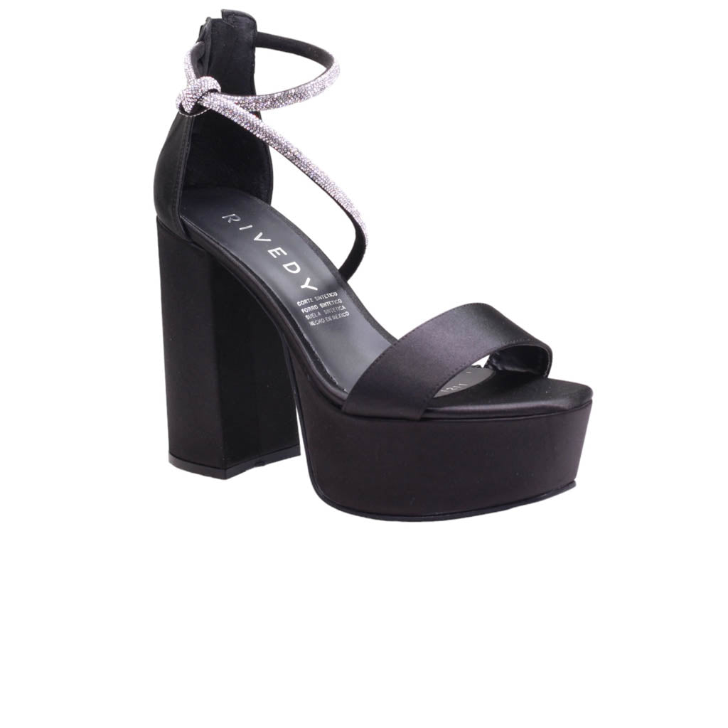 Zapatilla para dama marca Rivedy en colores negro. Este modelo cuenta con una plantilla de confort. Sus tiras están cubiertas en pedrería, lo que añade un toque de elegancia a tu look. Además, su tacón ancho de 12.00 cm y plataforma de 4.00 cm te brindarán una mayor estabilidad al caminar. ¡Completa tu estilo con este modelo único y sofisticado!