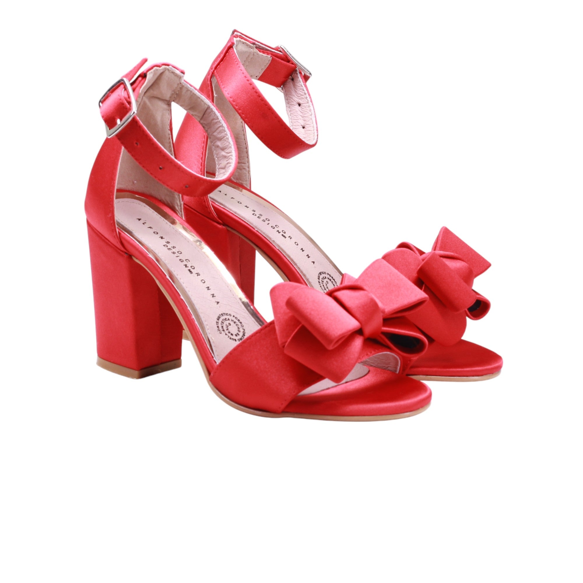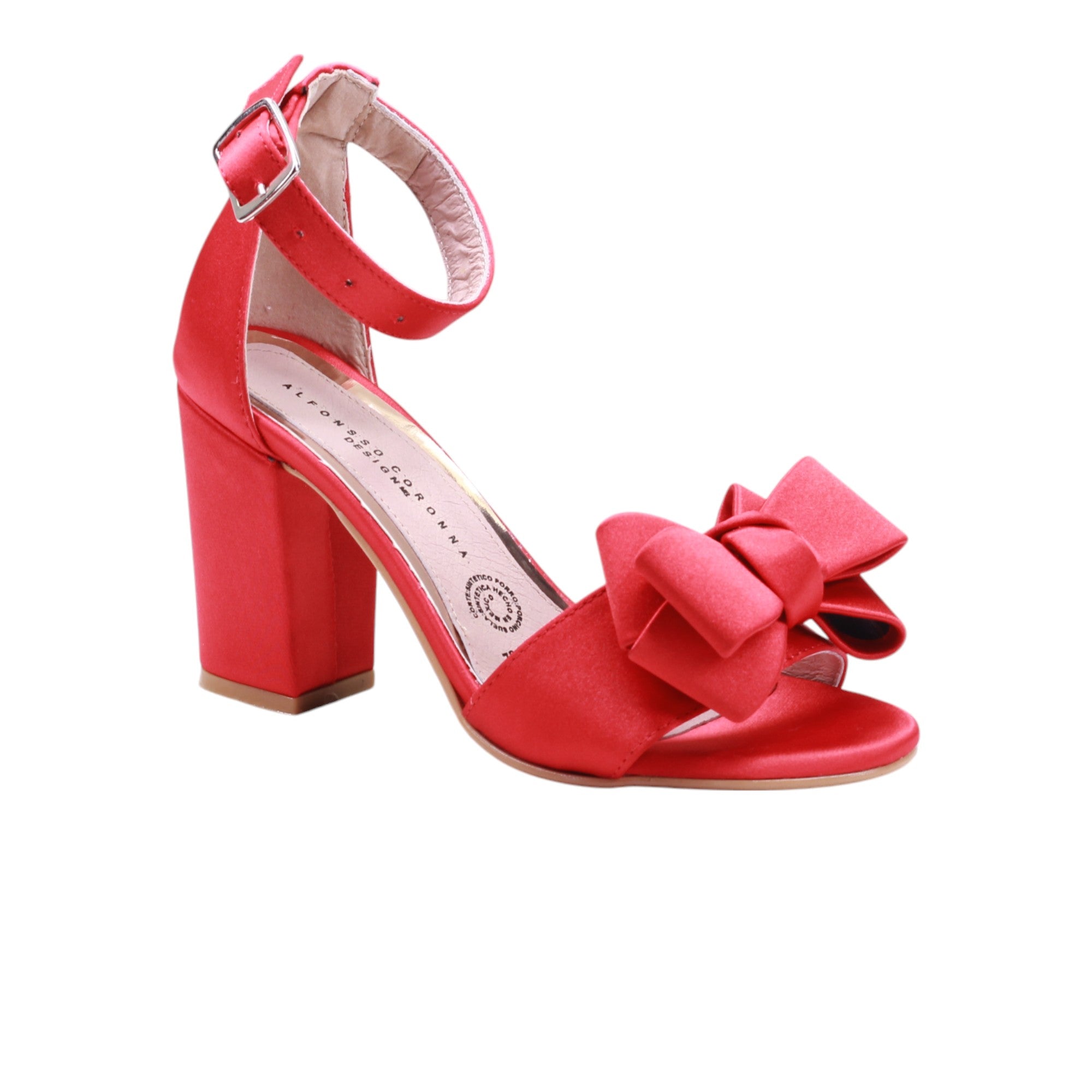 Zapatilla para dama marca Alfonso Coronna en color rojo. Este modelo presenta un elegante tacón de 8.00 cm que proporciona altura y comodidad. El moño grande en el corte añade un toque femenino y sofisticado. Además, el ajuste con hebilla permite un ajuste personalizado para brindar un calce perfecto. Moderno y cómodo, perfecto para cualquier ocasión.
