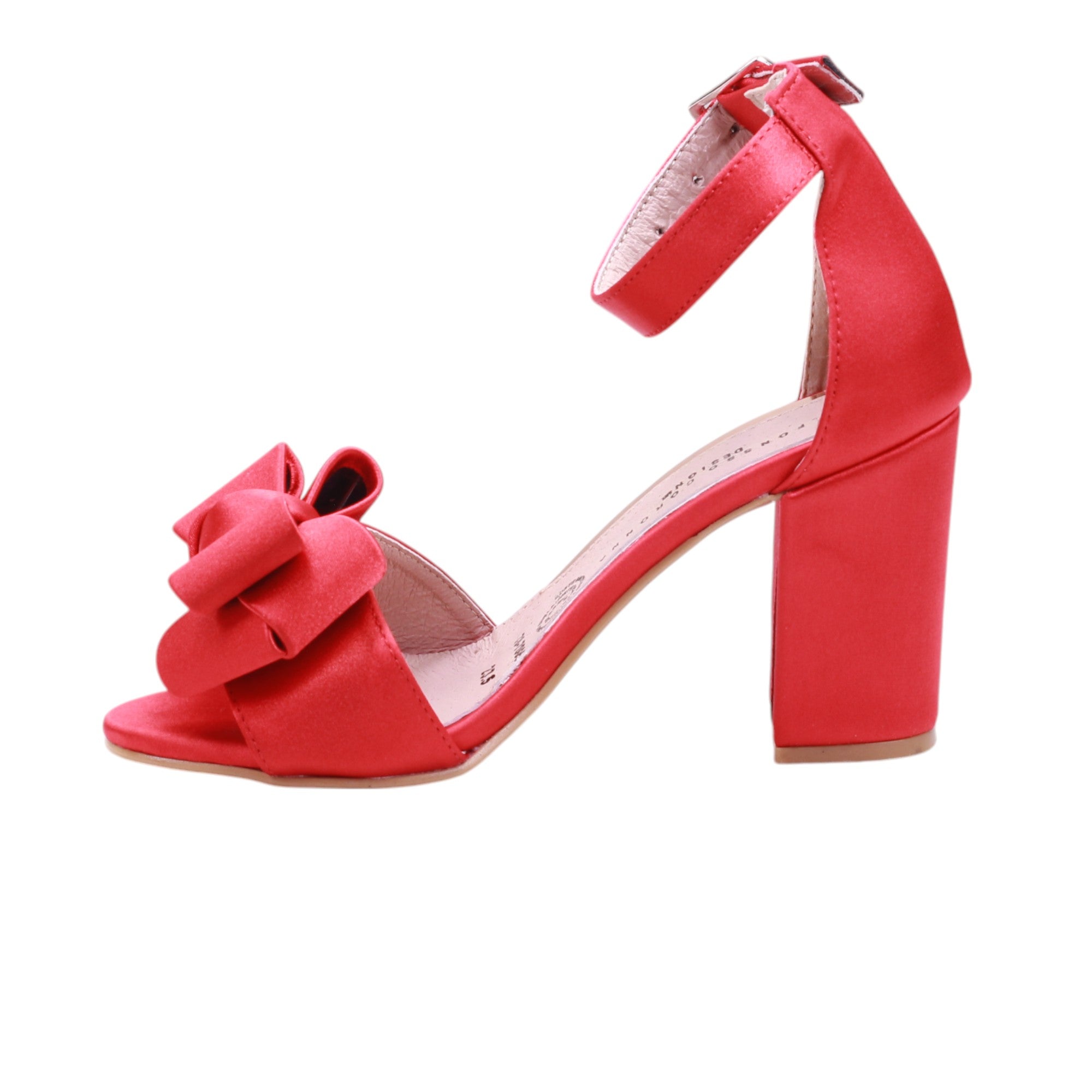 Zapatilla para dama de tacón ancho y moño grande de adorno
