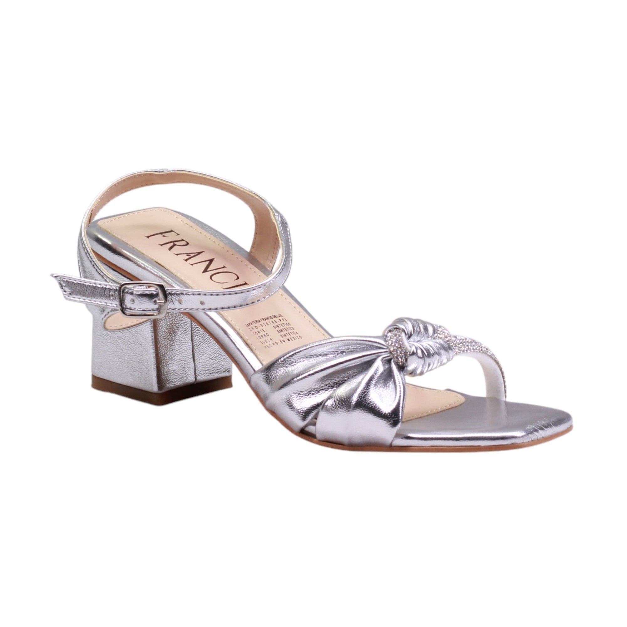 Zapatilla para dama marca Francis en colores Inox y plata. Estilo moderno que cuenta con ajuste en hebilla. Altura de tacón de 5.5 cm, tira delantera adornando con nudo y pedrería artificial, este modelo te brinda comodidad a cada paso. Además, su ajuste al tobillo asegura una pisada firme y segura.