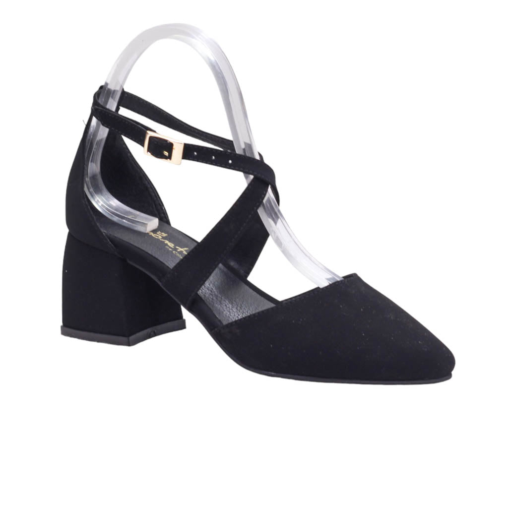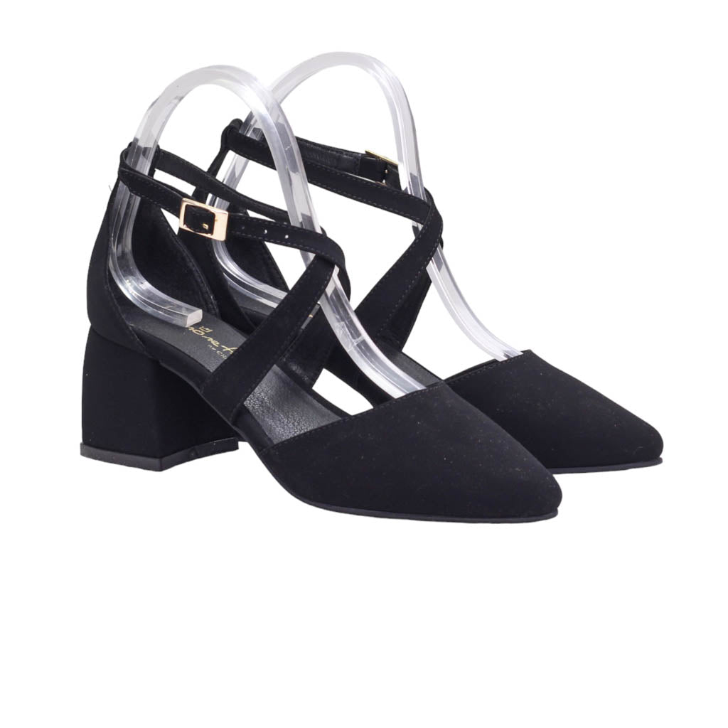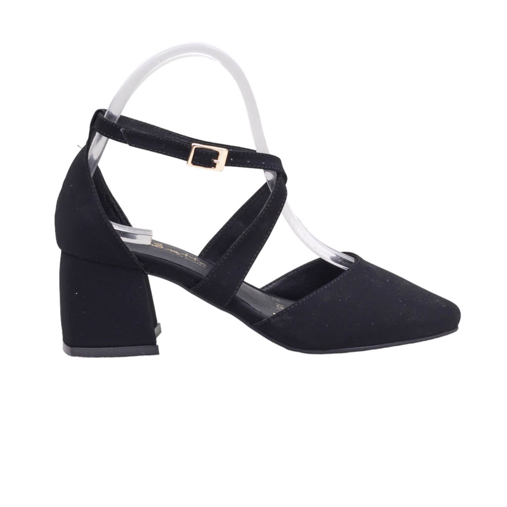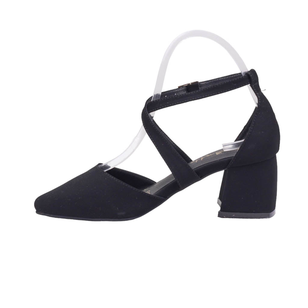 Zapatilla para dama de tacón ancho y tiras en cruce