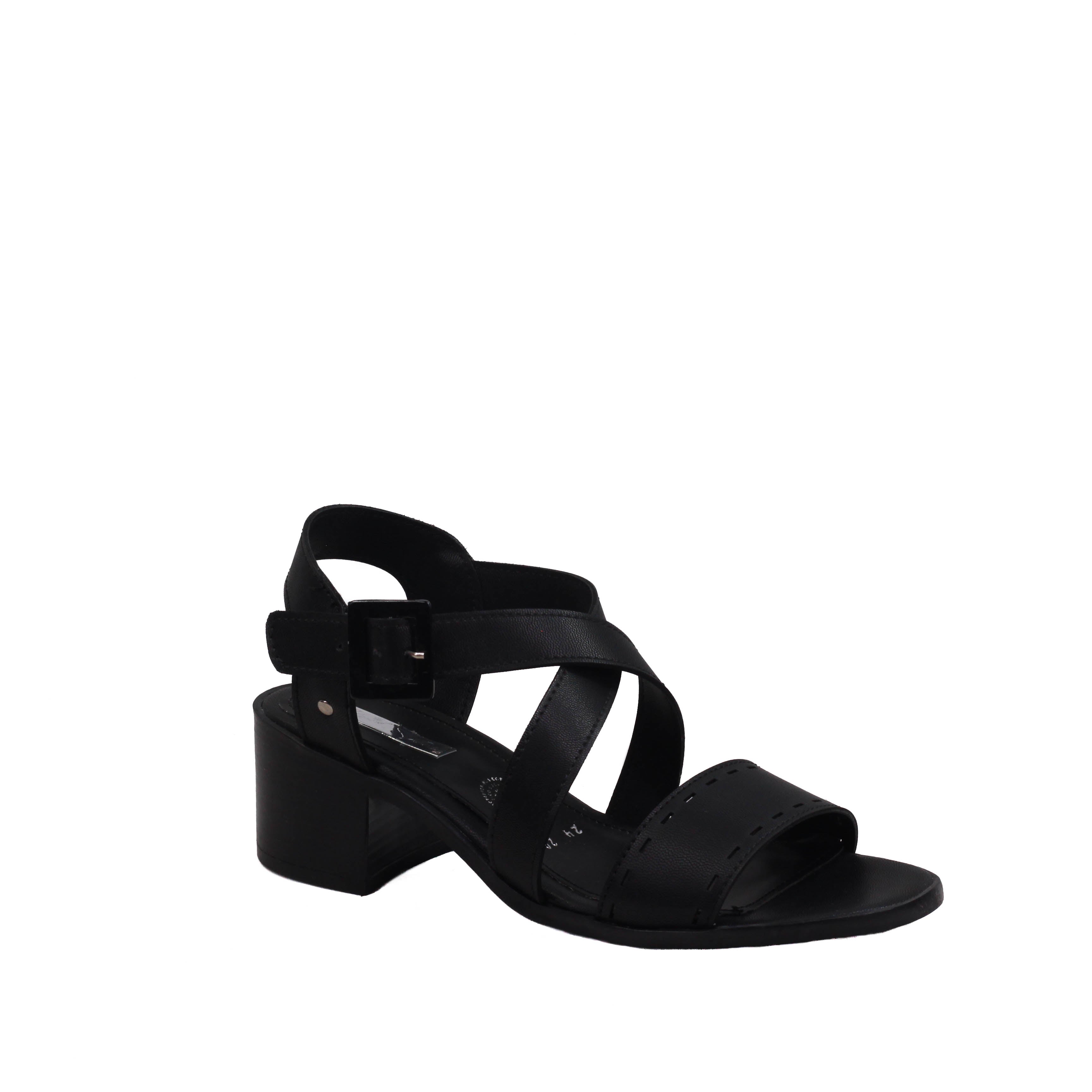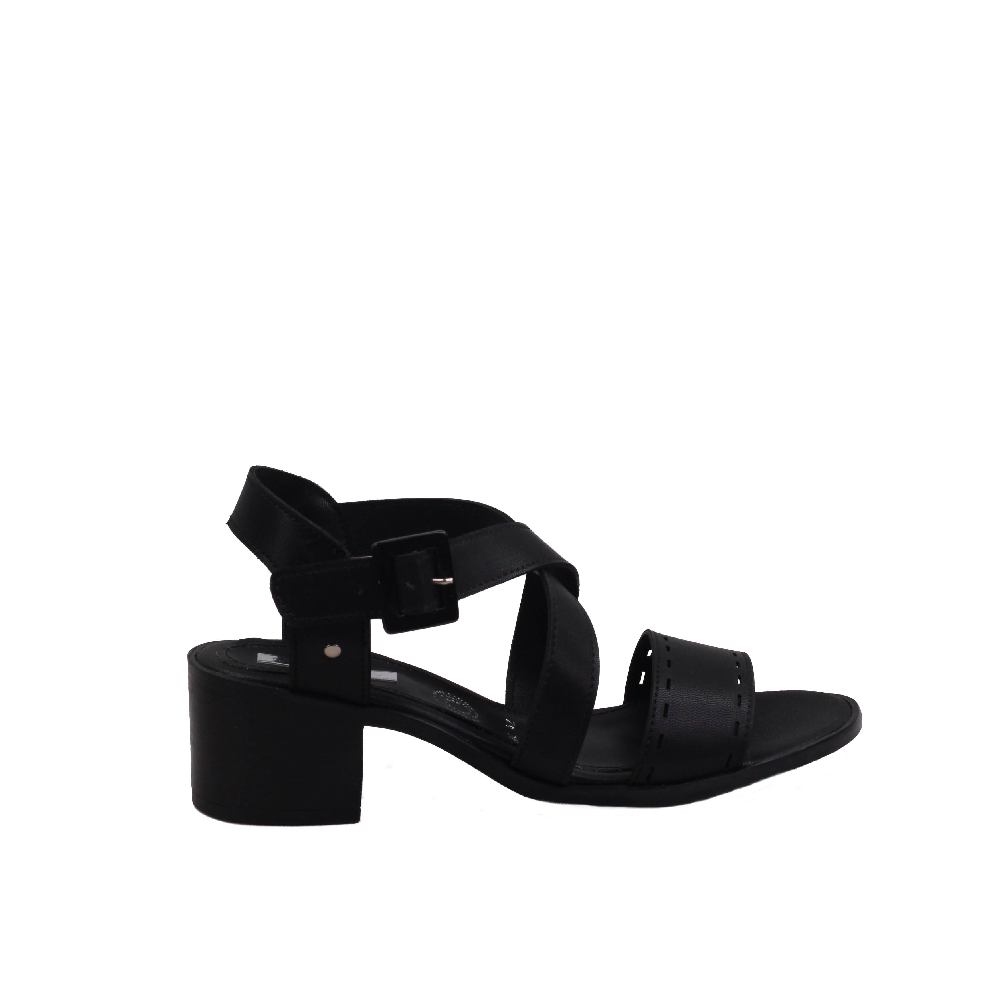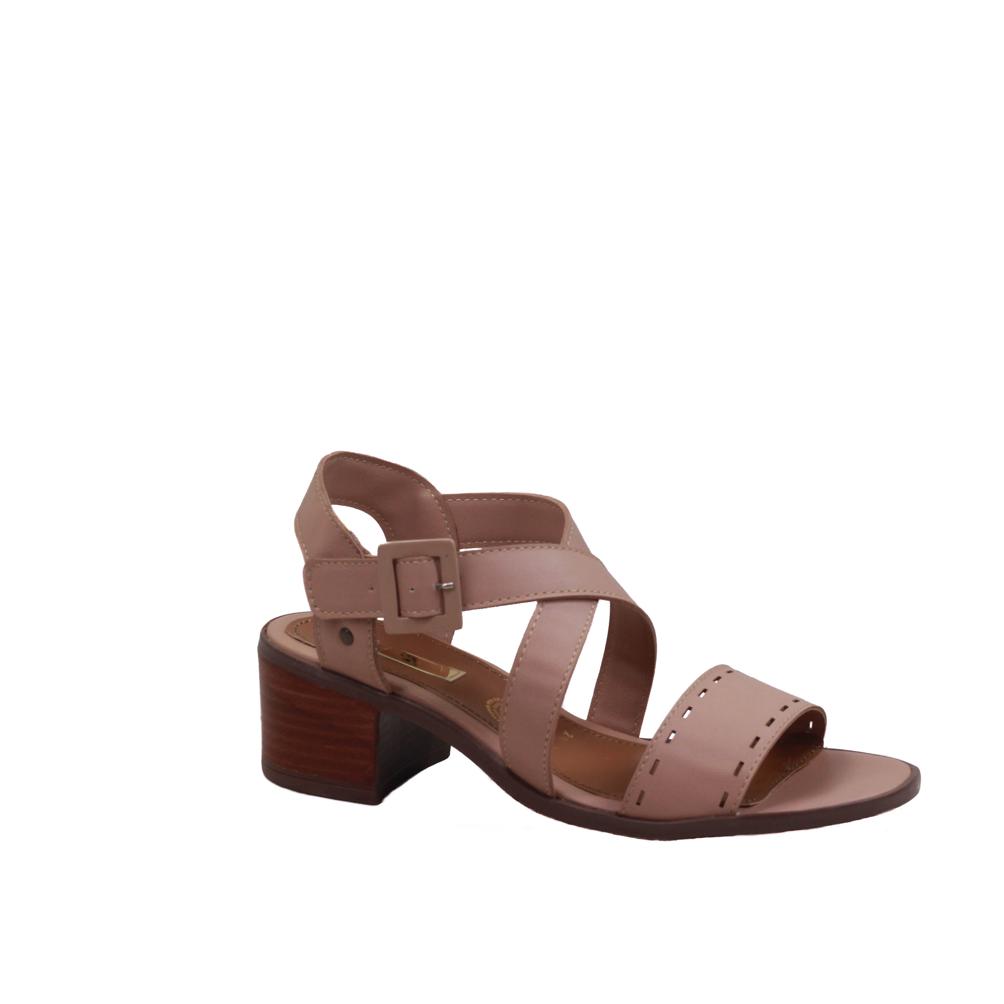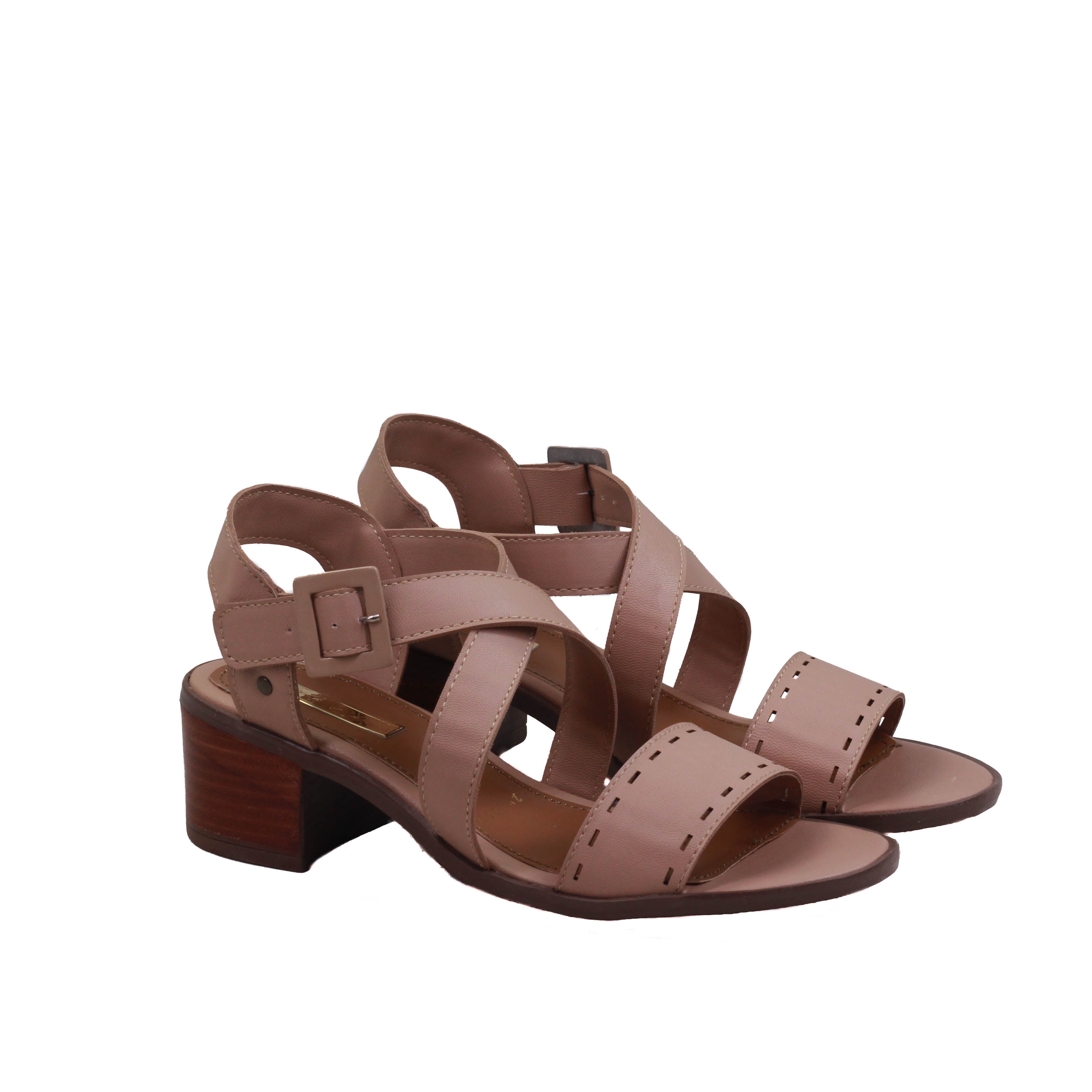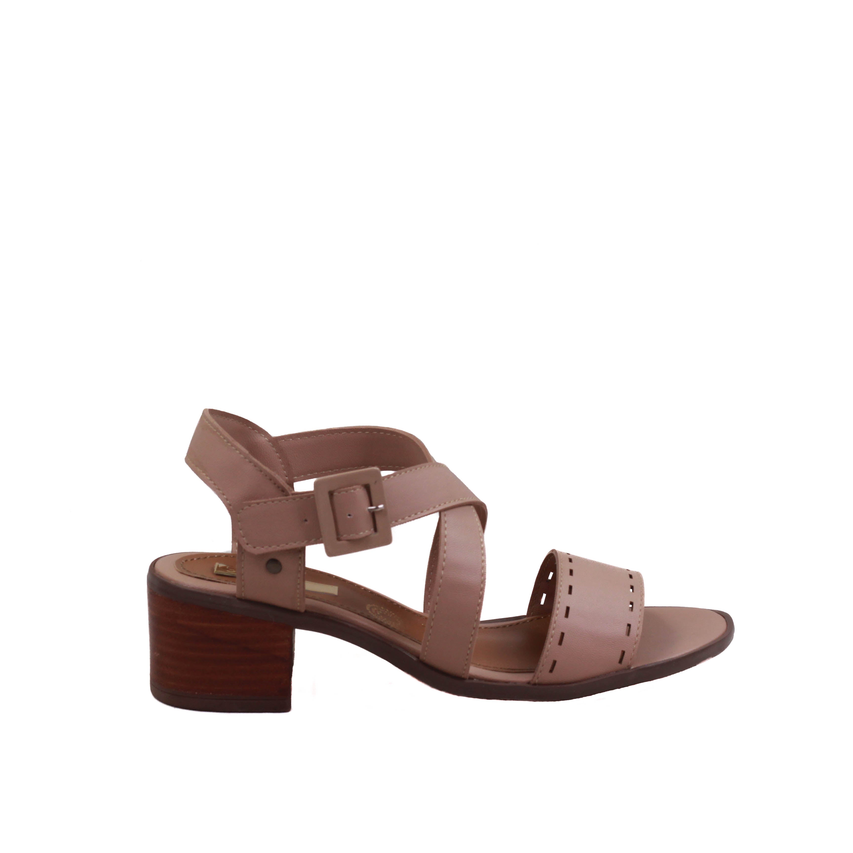 Zapatilla para dama de tacón cuadrado y tiras en cruce y tira ancha perforada frontal.