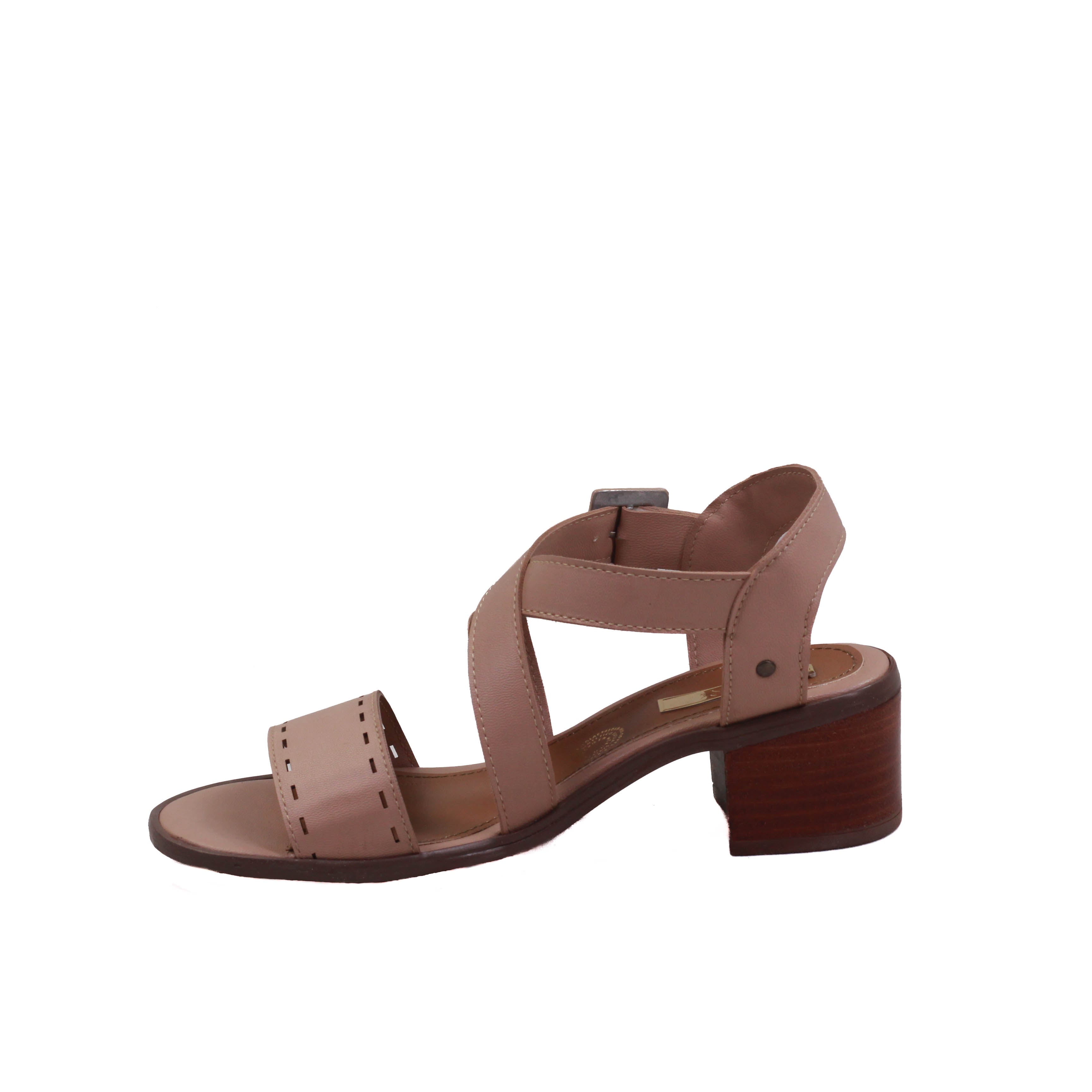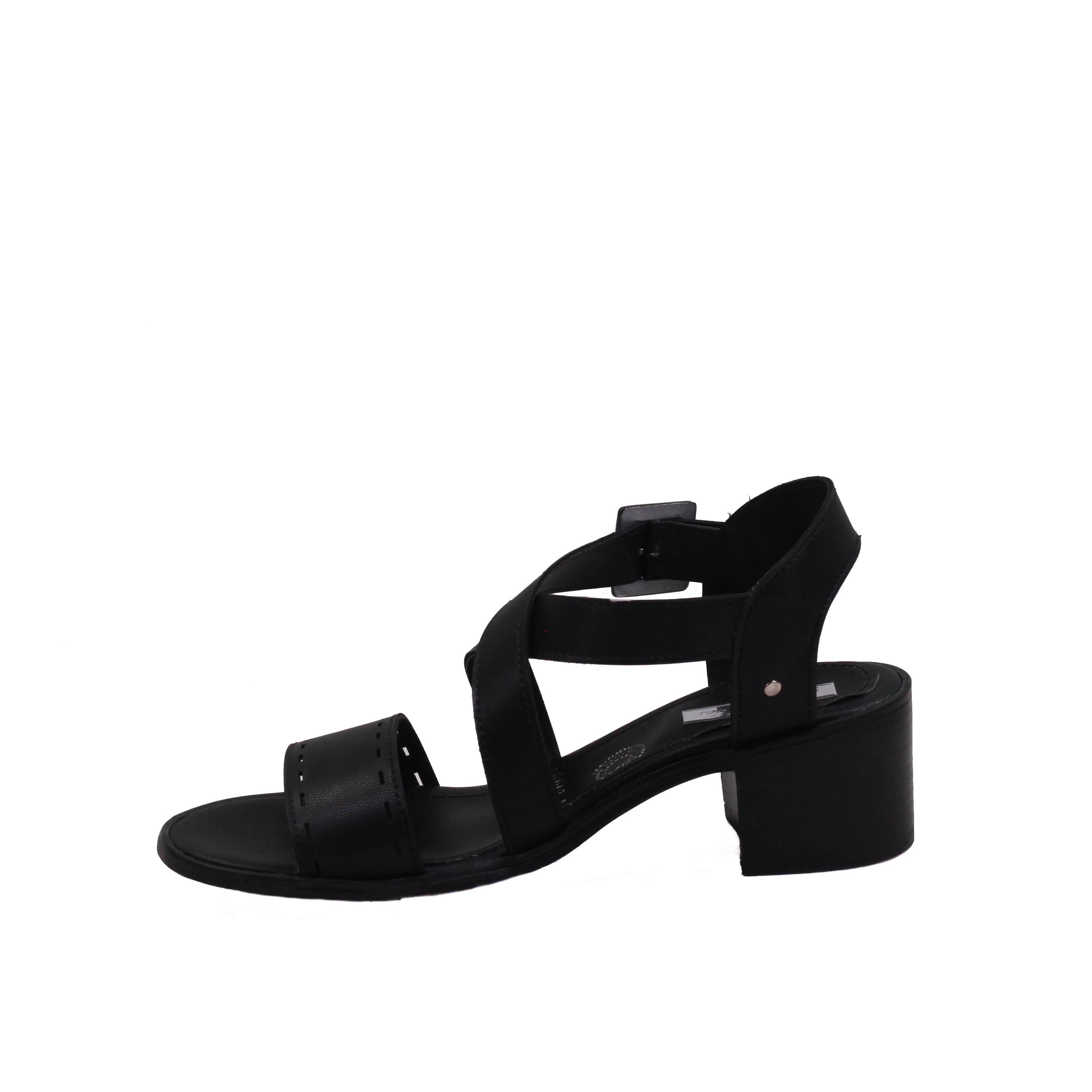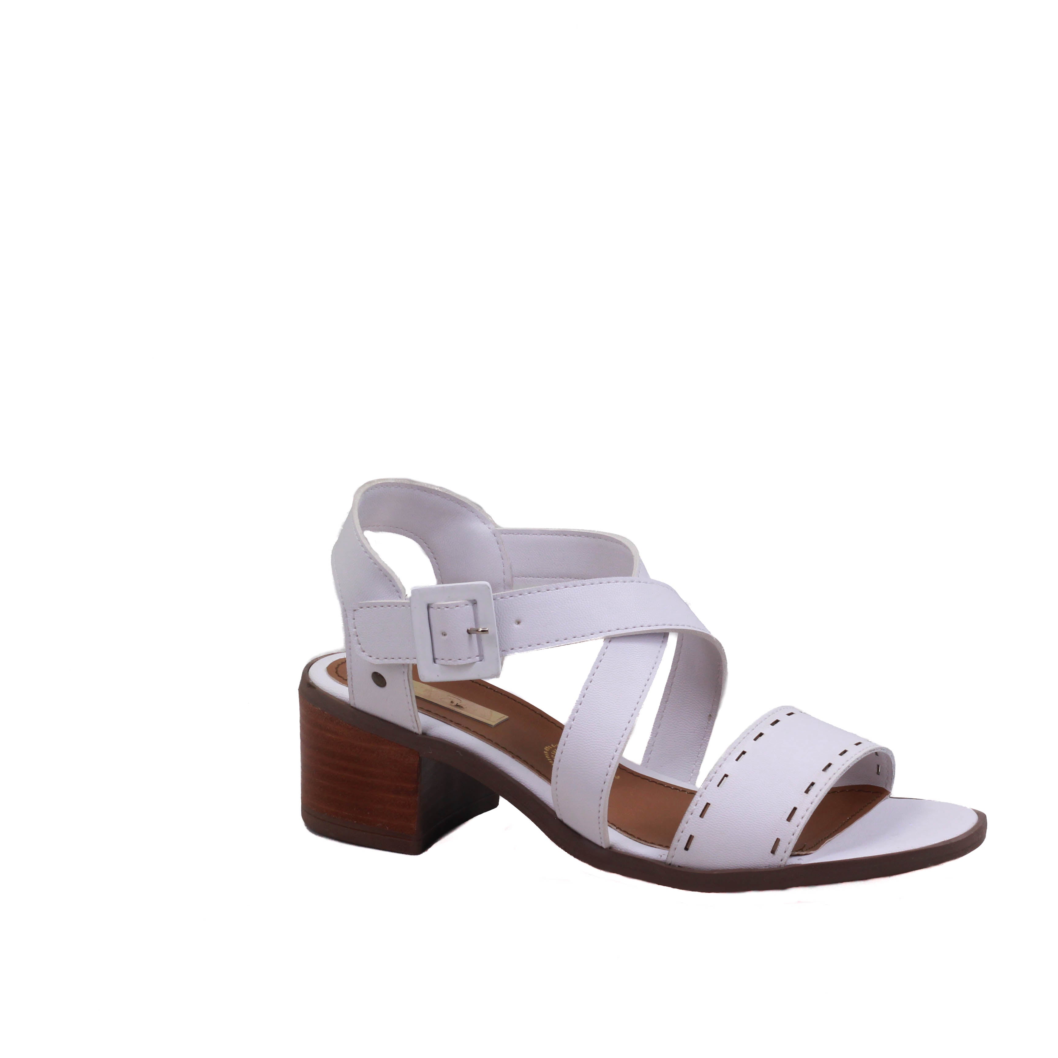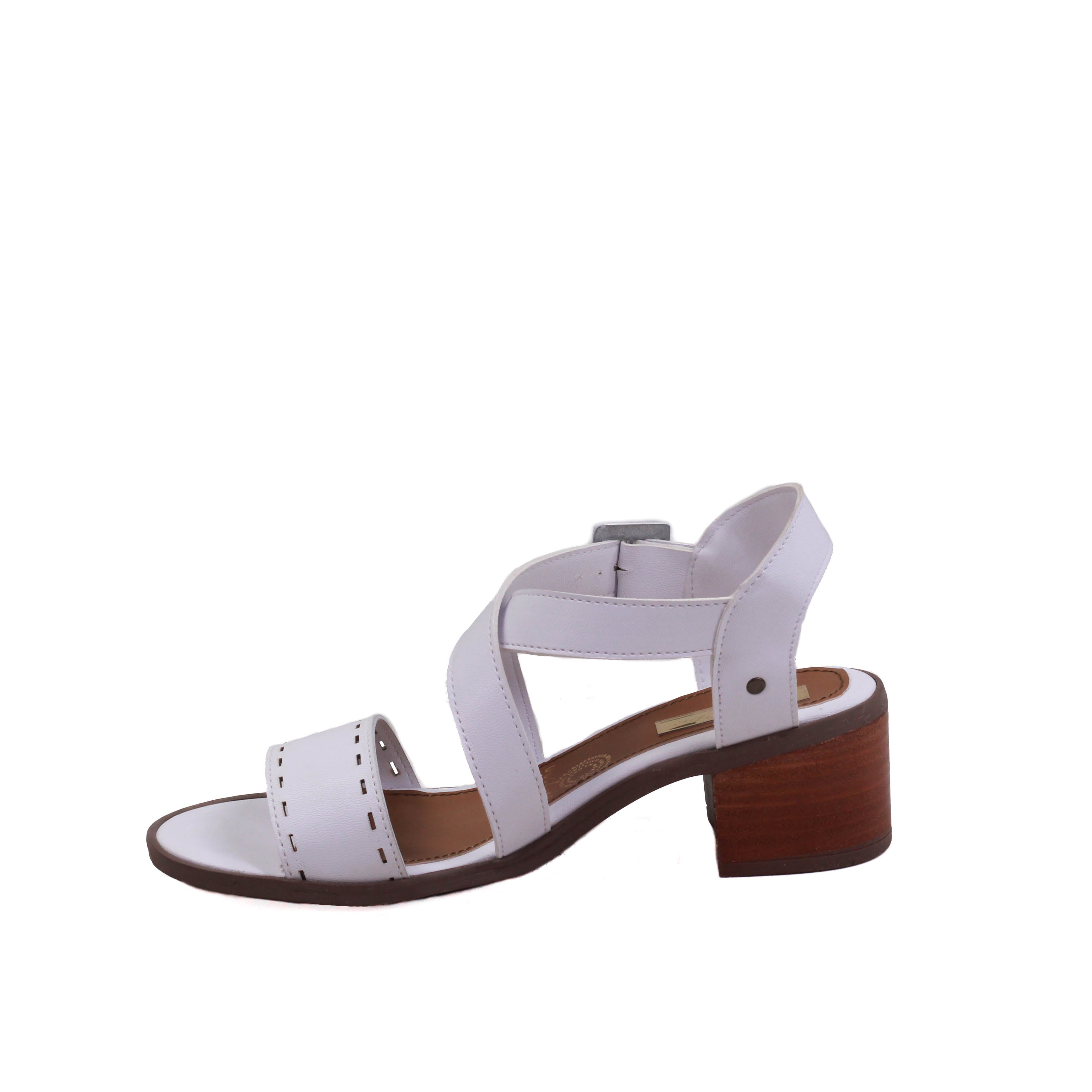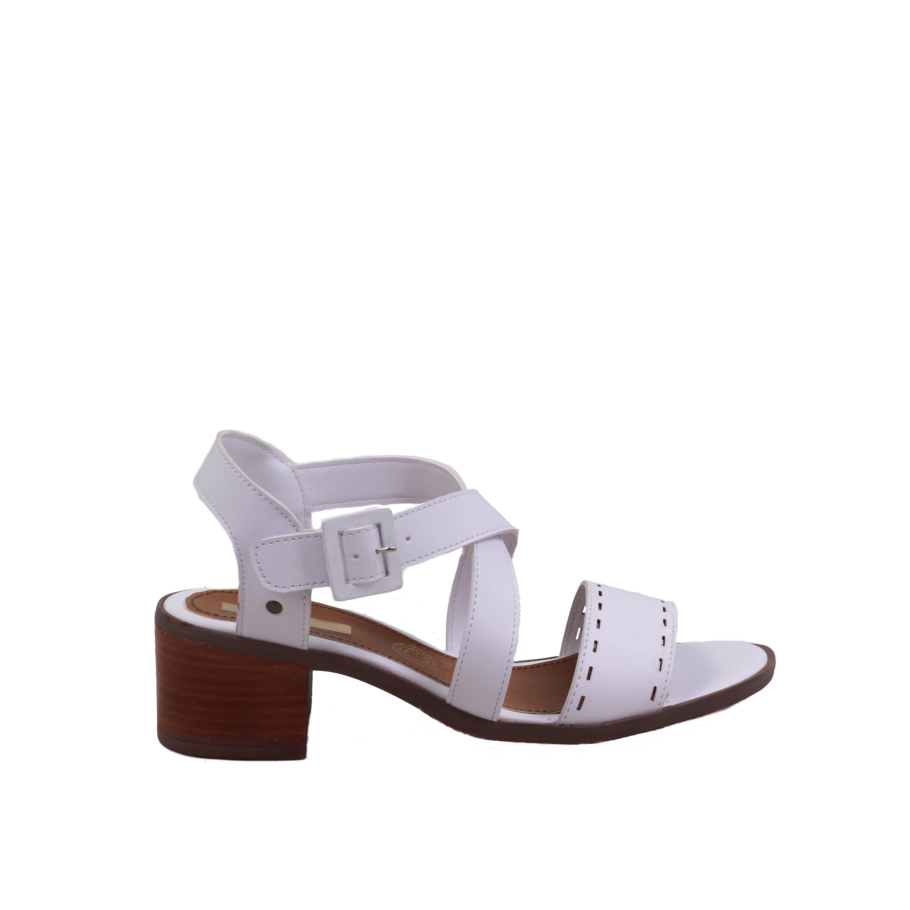 Zapatilla para dama de tacón cuadrado y tiras en cruce y tira ancha perforada frontal.
