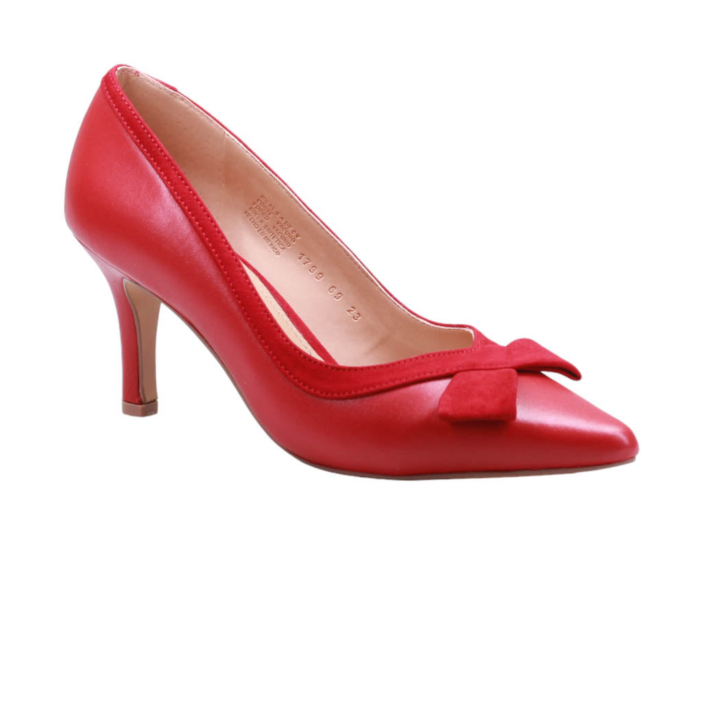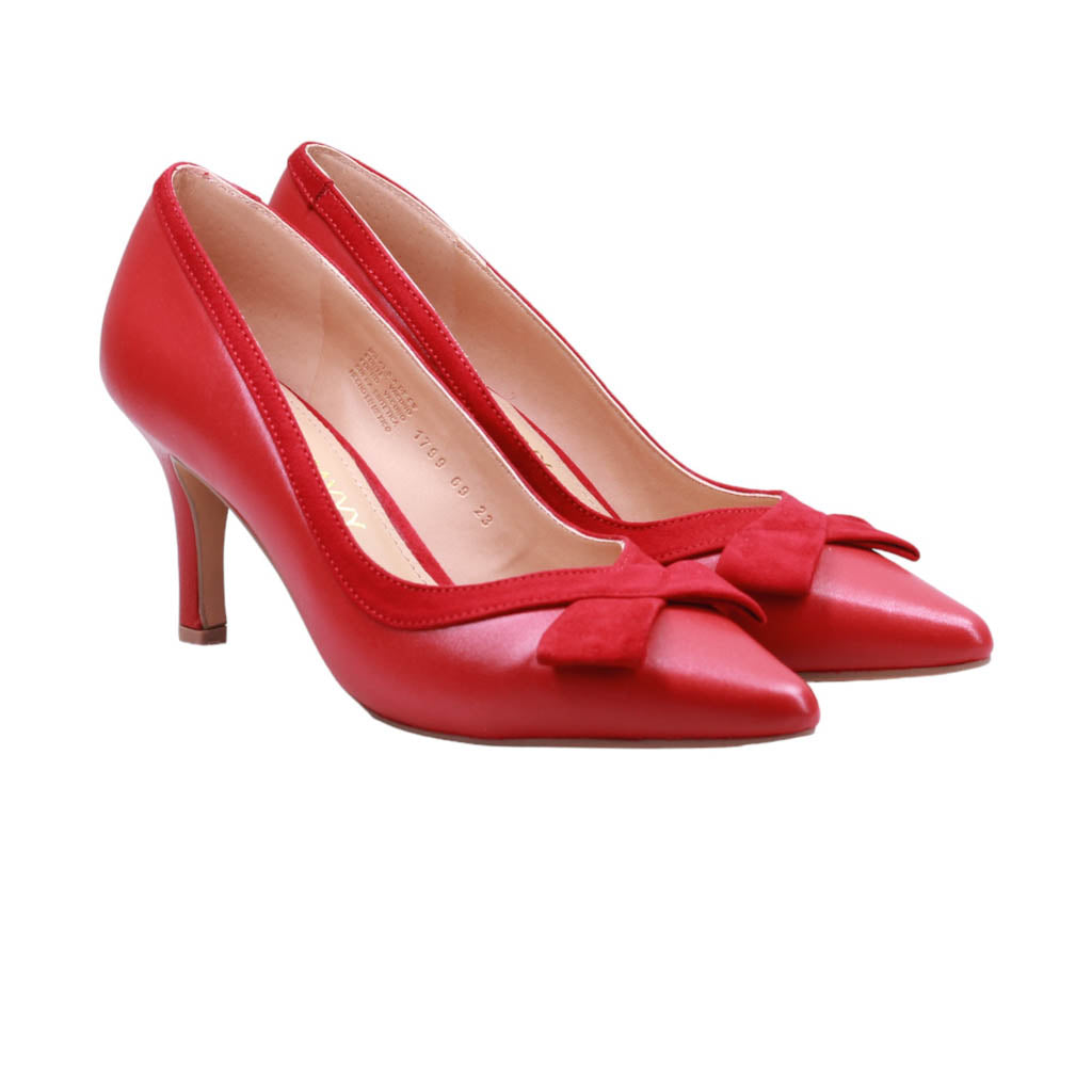 Zapatilla para dama marca Savy en colores hueso y rojo. Este elegante modelo cuenta con un tacón delgado que te ofrece una estabilidad óptima para caminar, además de una plantilla de confort para una comodidad duradera. Añade un toque de estilo con su moño de adorno en el corte.