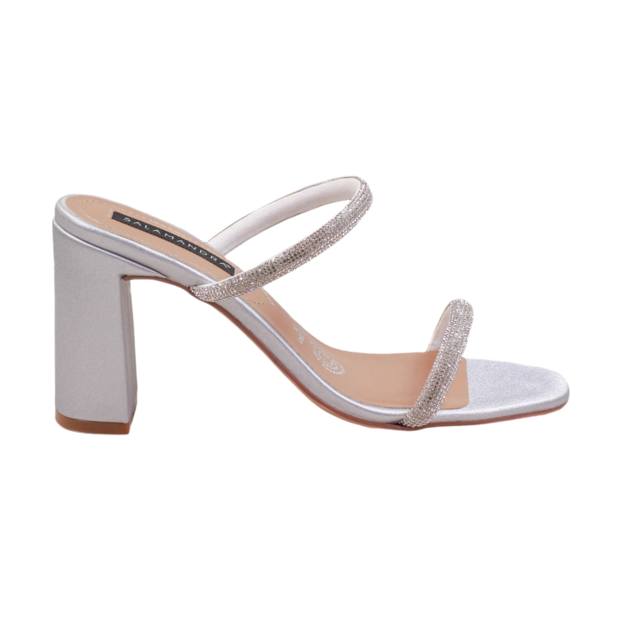 Zapatilla para dama de tacon rectangular, doble tira con pedreria