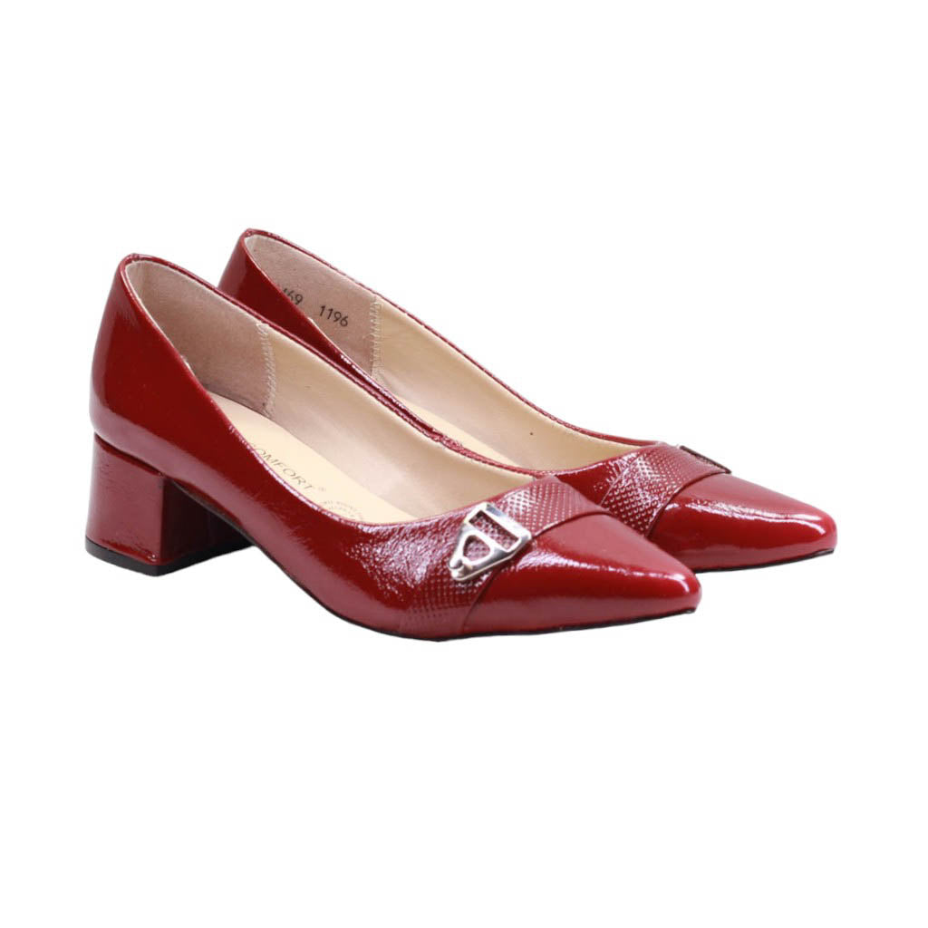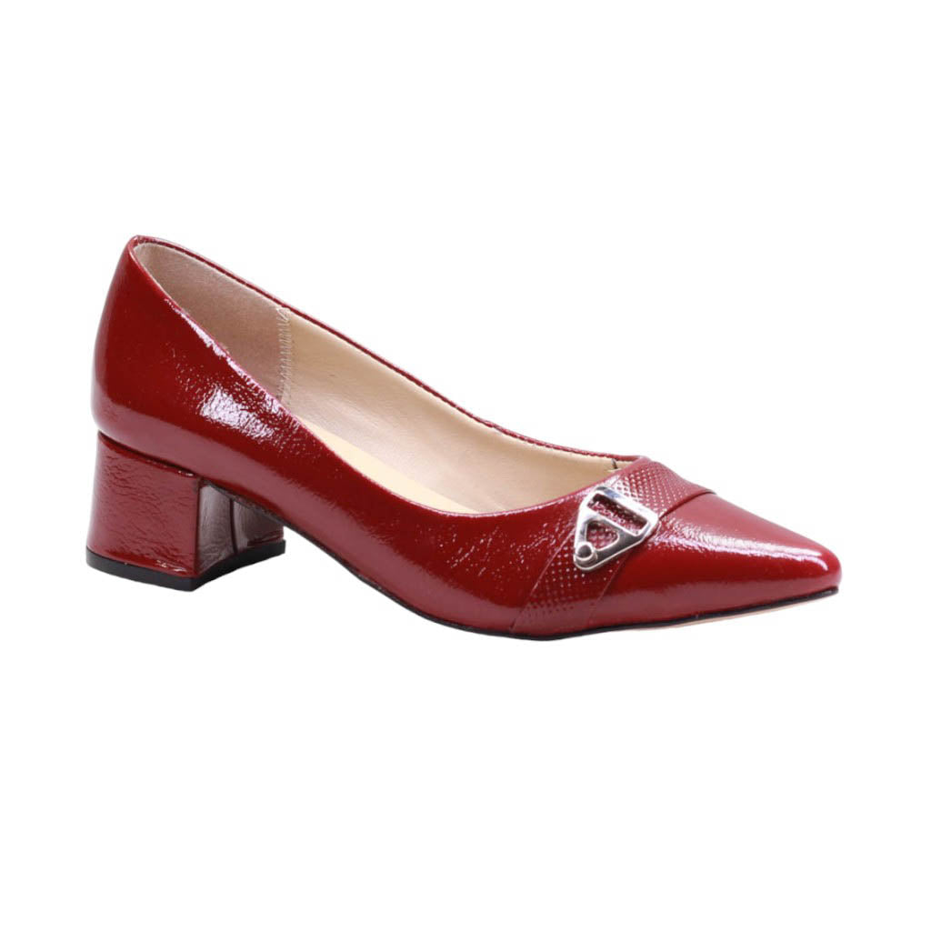 Calzado para dama marca Clinton en colores vino, Este modelo de tacón ancho medio de 4.00 cm, cuenta con una plantilla de confort para mayor comodidad al caminar. Su tira con adorno metálico le da un toque elegante y moderno. Ideal para lucir sofisticada y cómoda en cualquier ocasión.