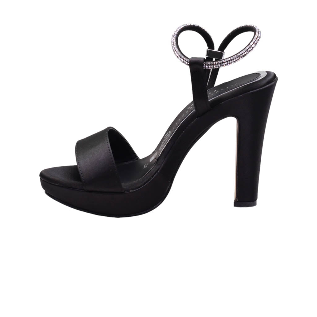 Zapatilla para dama marca Alfonso Coronana en color negro. Este modelo elegante cuenta con tiras al tobillo cubiertas en pedrería que le dan un toque de glamour. Además, su tacón alto de 10.5 cm y plataforma de 2.00 cm brindan comodidad y altura. La plantilla de confort asegura una sensación placentera al caminar. ¡Ideal para cualquier ocasión!
