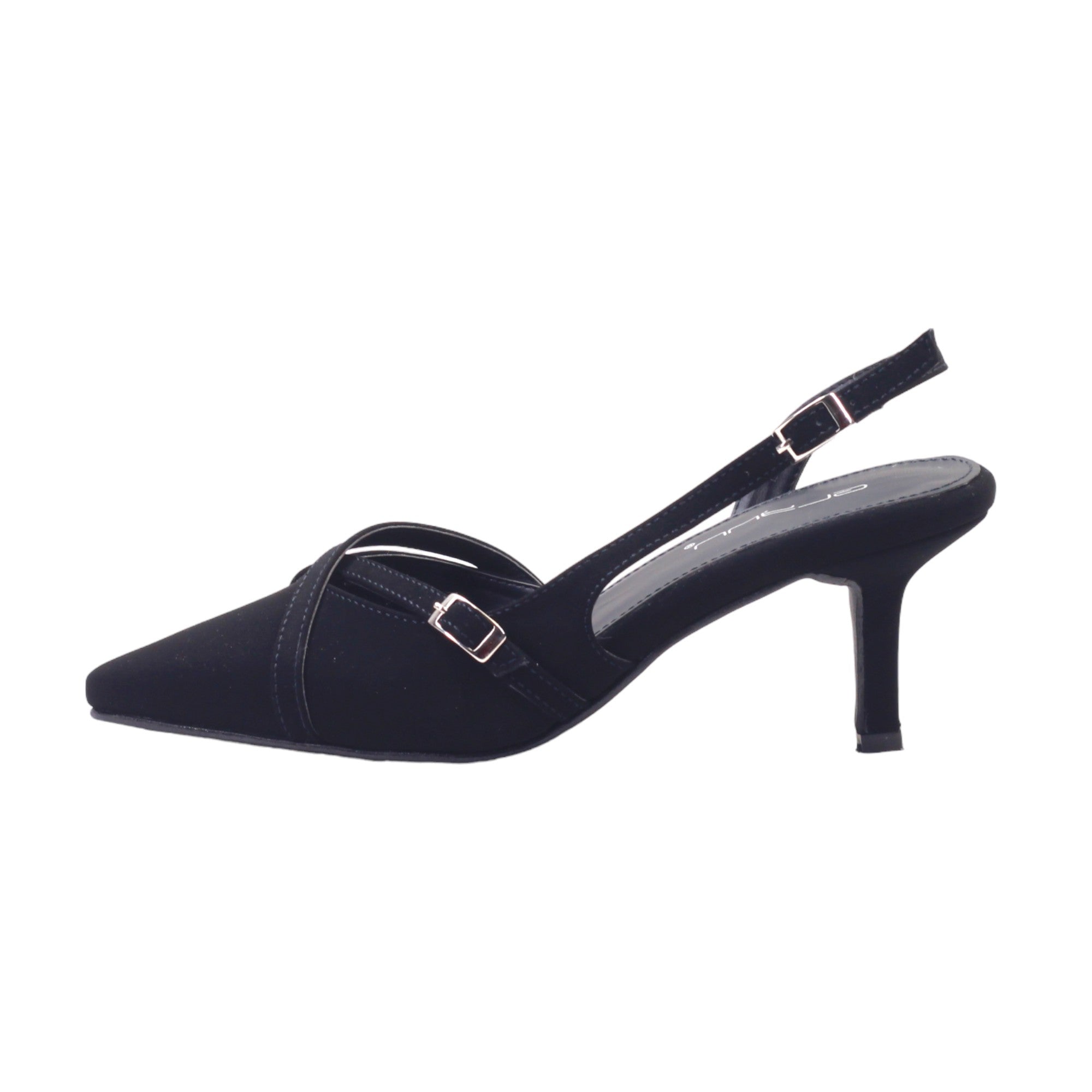 Zapatilla para dama marca Glynn en color negro. Modelo elegante y versátil con tira trasera ajustable y hebilla. Estilo destalonado con tacón delgado de 6.00 cm para una comodidad duradera. Agrega altura a tus looks y luce sofisticada con este modelo.