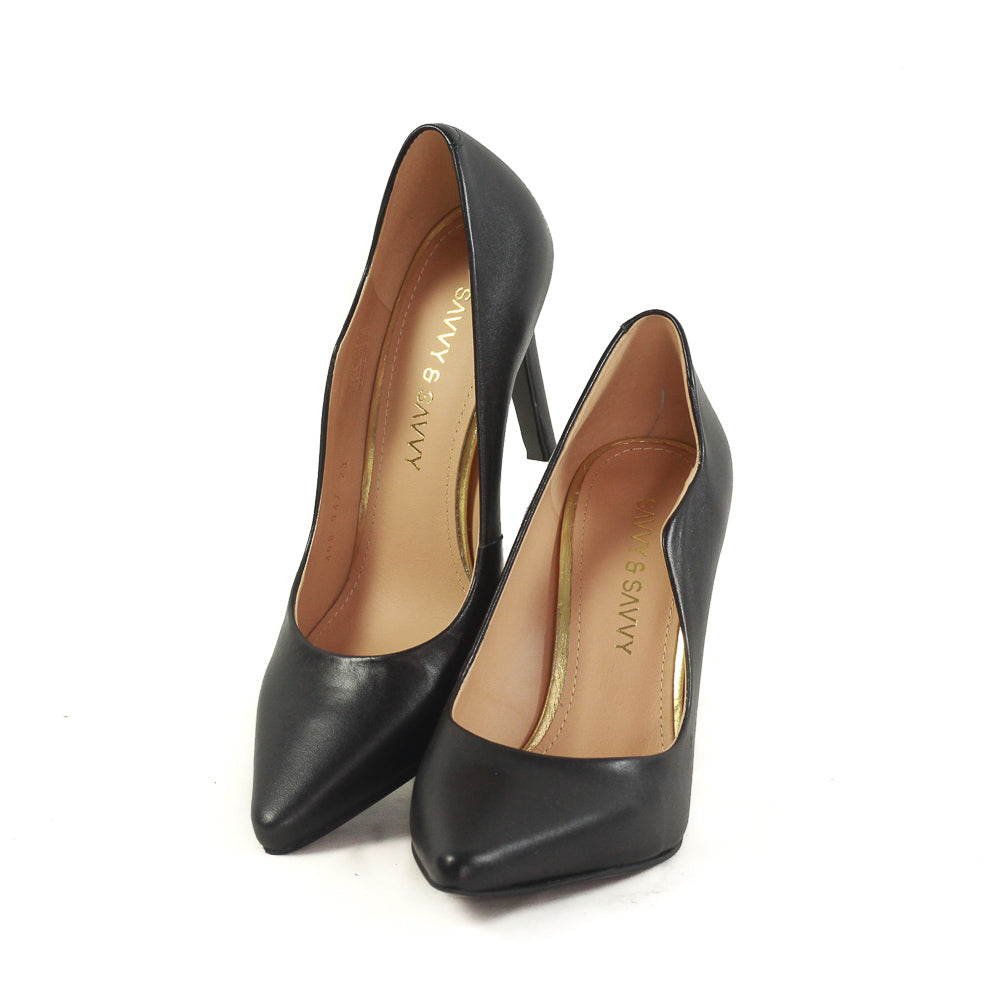 Zapatilla para dama marca Savy en color negro. Es una zapatilla formal y vestir con un tacón delgado y lucidor. Este tipo de calzado es especial y refleja mucha originalidad, su diseño tiende a ser el más sofisticado de todos los zapatos de tacón. Usar un par de D'orsay heels es estar siempre a la moda, ya que sigue en tendencia año tras año sin llamar mucho la atención.