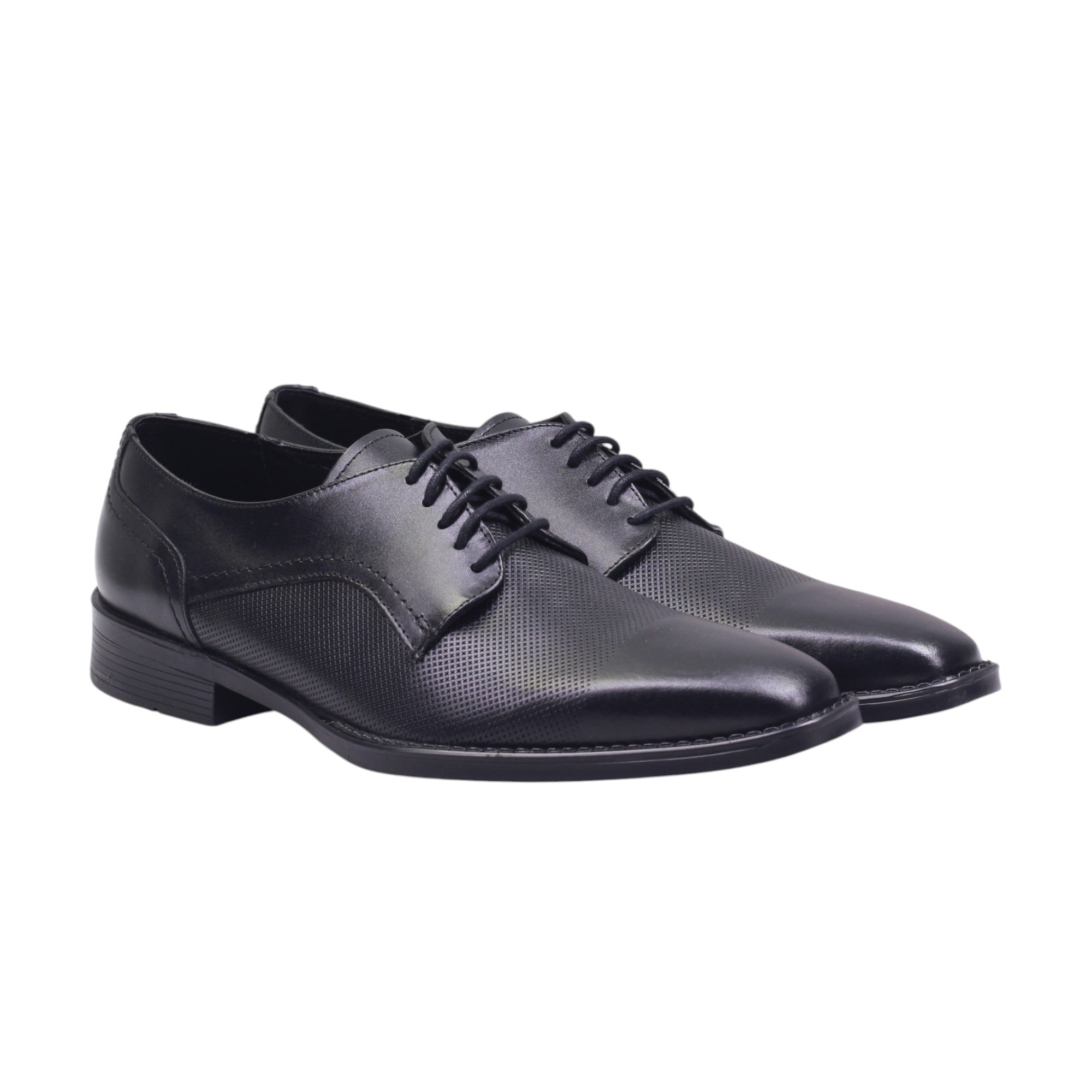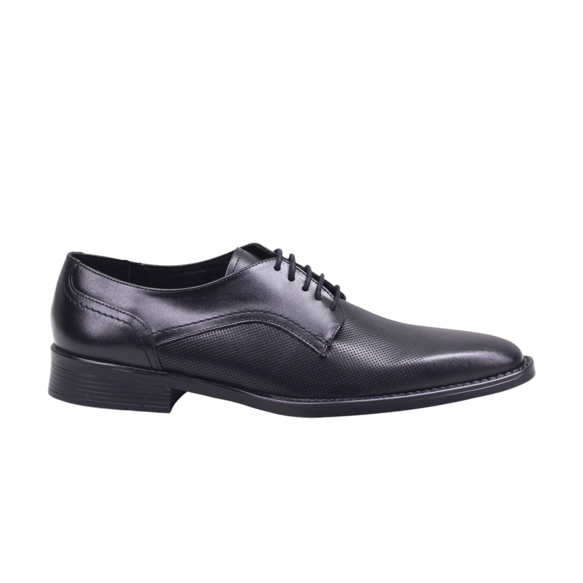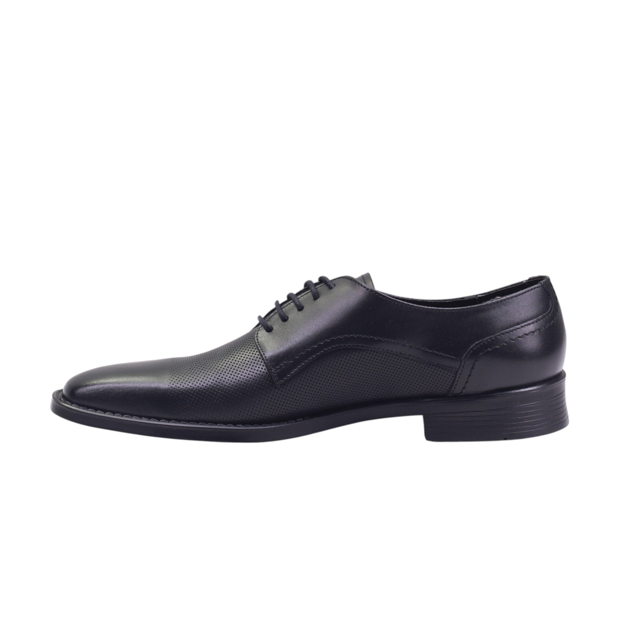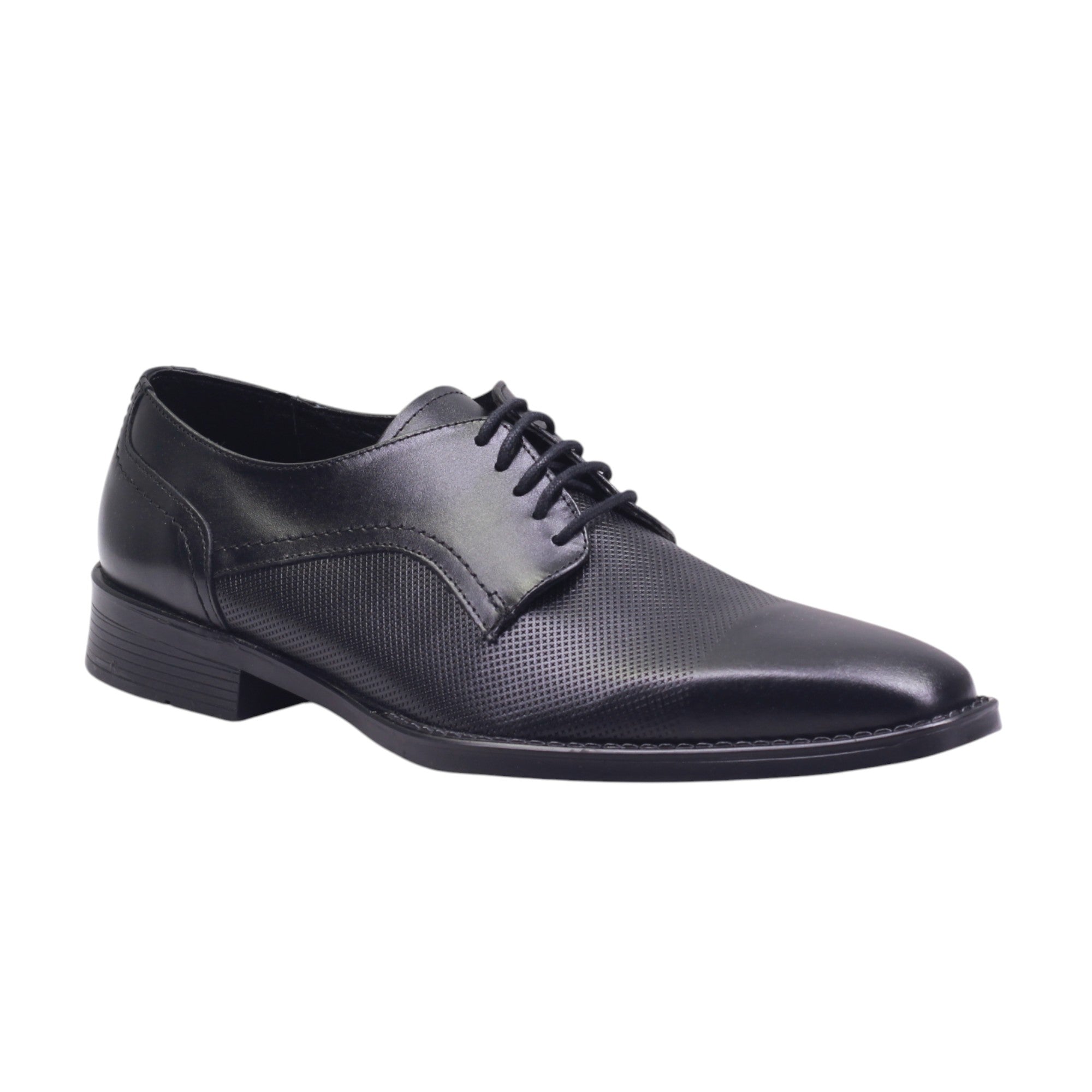 Calzado para caballero marca Jacks Andre en colores negro y sierra. Diseño elegante y funcional para el día a día o eventos formales. Este modelo en piel vacuna negra destaca por su textura grabada que recorre el corte superior, aportando carácter sin perder sobriedad. El ajuste en agujetas permite un calce firme y estilizado, mientras el forro porcino brinda confort y transpiración. Su tacón de 3.00 cm ofrece soporte ideal para largas jornadas, manteniendo una silueta clásica con presencia. Perfecto para quienes buscan estilo refinado con acabados de calidad.