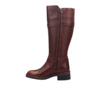 Bota para dama marca  Lobo solo  en colores besani y negro. Esta bota alta está confeccionada en piel vacuna de textura suave y apariencia natural, complementada por un forro textil que brinda comodidad y transpiración. Su tubo de 35 cm de largo ofrece cobertura estilizada hasta la parte alta de la pantorrilla, ideal para climas frescos y atuendos de temporada.