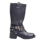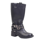 Bota casual para dama de doble tira con hebilla y tubo alto